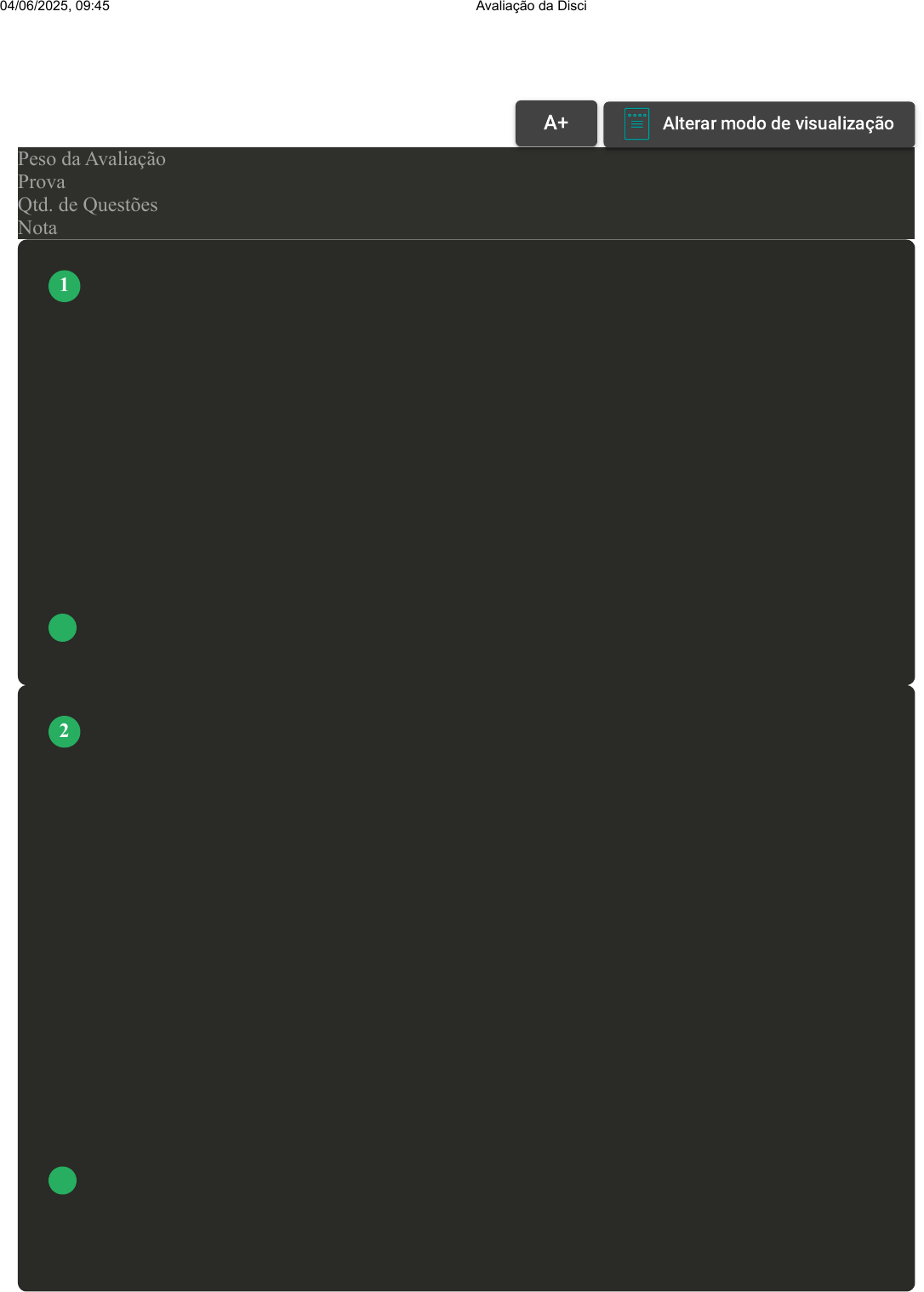 Prova Impressa GABARITO | Avaliação da Disciplina (Cod.:677396) Peso da Avaliação 10,00 Prova 94366630 Qtd. de Questões 20 Nota 9,00 O Balanço Patrimonial é um reflexo dos dados da empresa, que demonstra para qualquer pessoa interessada qual é o desempenho da empresa. Ele apresenta se a empresa está apresentando lucros ou prejuízos, qual o valor que tem em caixa, quais são os valores devidos a fornecedores e outras informações sobre a situação financeira da empresa. Para esta análise, o balanço patrimonial é dividido em três partes: o Ativo, o Passivo e o Patrimônio Líquido. Sobre uma característica do ATIVO, assinale a alternativa CORRETA: A Registra o valor que os sócios investiram na empresa. B Demonstra as obrigações da empresa. C Descreve os valores da situação líquida da empresa. D É dividido em circulante e não circulante. No ambiente organizacional, o gerenciamento financeiro apresenta-se como uma prática administrativa relevante para o sucesso e continuidade de qualquer negócio, seja ele formalizado ou não. Desse modo, torna-se importante para as empresas a adoção de mecanismos e procedimentos de gestão financeira que envolva o planejamento, a análise e o controle das atividades financeiras, necessários para a boa gestão da empresa. FONTE: LOPES, L C; SIQUEIRA, K P S; VIEIRA, É M M; FREITAS, M A L. Adoção de práticas de controles financeiros e não financeiros por microempreendedores individuais. Gestão e Sociedade, v. 8, n. 21, p. 749, 2015. Disponível em: https://www.gestaoesociedade.org/gestaoesociedade/article/view/1930. Acesso em: 2 jan. 2021. Sobre o objetivo principal de uma entidade, no que diz respeito a finanças, assinale a alternativa CORRETA: A Reduzir a inadimplência da carteira de clientes da entidade. B Acompanhar as entradas e saídas de dinheiro da entidade. C Criar valor para os sócios/proprietários da entidade. D Criar valor para a sociedade na qual a entidade está inserida. VOLTAR A+ Alterar modo de visualização 1 2 04/06/2025, 09:45 Avaliação da Disciplina about:blank 1/9 Orçamento nada mais é do que prever as receitas e despesas para que uma organização consiga desempenhar as suas atividades a atingir as suas metas. Essa previsão deve estar atrelada ao planejamento estratégico da organização e é elaborada para um período futuro específico. Também, pode ser dividido em três fases principais: previsão, orçamento e controle. Sobre o exposto, associe os itens, utilizando o código a seguir: I- Previsão. II- Orçamento. III- Controle. ( ) Comparar o desempenho real com o fixado anteriormente. ( ) Levantar as alternativas de ação diante dos objetivos desejados. ( ) Definir e formalizar o plano de ação, especificando os objetivos e meios. Assinale a alternativa que apresenta a sequência CORRETA: A III – I – II B I – II – III C III – II – I D II – III – I De acordo com Martins (2020), a demonstração do fluxo de caixa permite a avaliação da capacidade da empresa de gerar fluxos futuros de caixa da entidade, a capacidade de saldar obrigações e pagar dividendos, a flexibilidade financeira da empresa e a taxa de conversão do lucro em caixa, entre outros aspectos. FONTE: OMARTINS, Eliseu. Análise didática das demonstrações contábeis. 2. Rio de Janeiro: Atlas, 2020. De acordo com a Demonstração do Fluxo em Caixa, classifique V para as sentenças verdadeiras e F para as falsas: ( ) A Demonstração de Fluxo de Caixa é obrigatória, por lei, para as empresas desde 2007. ( ) A Demonstração de Fluxo de Caixa é a mesma coisa que o Fluxo de Caixa Gerencial que a empresa utiliza internamente. ( ) A Demonstração de Fluxo de Caixa pode ser realizada por três métodos: reservas, lucros e incentivos. ( ) A Demonstração de Fluxo de Caixa deve apresentar entradas e saídas de caixa e equivalentes de caixa do período classificados por: atividades operacionais, de investimento e de financiamento. Assinale a alternativa que apresenta a sequência CORRETA: A F – V – V – F B V – F – F – V C V – V – V – F D F – F – V – V 3 4 04/06/2025, 09:45 Avaliação da Disciplina about:blank 2/9 Principalmente nos primeiros anos, é comum que a empresa não possua todos os recursos financeiros necessários para a sua operacionalização, fazendo-se necessário buscar fontes de recursos para financiar sua atividade. Estas fontes de recursos podem ser de capital próprio (sócios) ou de terceiros (instituições financeiras e outros). Com base nas variáveis que devem observadas ao se analisar um financiamento, analise ass afirmativas a seguir: I- O risco do investimento. II- A disponibilidade de fundos de capital. III- O custo de capital das fontes de financiamento. IV- Os novos concorrentes. Assinale a alternativa CORRETA: A Somente a afirmativa III está correta. B As afirmativas I, II e III estão corretas. C As afirmativas I e IV estão corretas. D As afirmativas II e IV estão corretas. O fluxo de caixa é uma projeção das entradas e saídas de recursos financeiros da empresa para um determinado período. Ao realizar essa projeção, o gestor financeiro deve levar em consideração para os fatores (internos e externos) que podem interferir no fluxo de caixa da empresa. De acordo com os fatores internos e externos que podem interferir no fluxo de caixa de uma empresa, classifique V para as sentenças verdadeiras e F para as falsas: ( ) Expansão descontrolada das vendas, implicando um volume maior de compras e custos operacionais, é um fator externo. ( ) Distribuição de lucros incompatíveis com a capacidade de geração de caixa é um fator interno. ( ) Mudança na política cambial, fiscal e de crédito é um fator interno. ( ) Diminuição das vendas em decorrência de retração do mercado é um fator externo. ( ) Falta de um sistema de cobrança eficiente é um fator interno. Assinale a alternativa que apresenta a sequência CORRETA: A F – V – F 