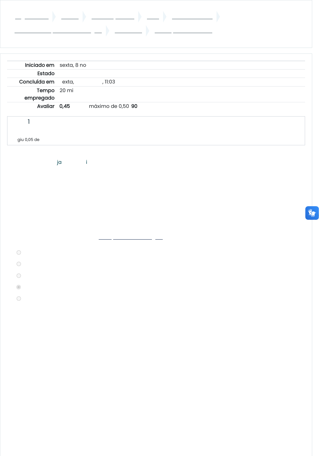 Página inicial Cursos GRADUAÇÃO EAD 2024 Módulo 4 - 2024 2024/4 - Planejamento Estratégico UNIDADE IV Avaliação - Unidade IV Iniciado em sexta, 8 nov 2024, 10:43 Estado Finalizada Concluída em sexta, 8 nov 2024, 11:03 Tempo empregado 20 minutos 11 segundos Avaliar 0,45 de um máximo de 0,50(90%) Questão 1 Correto Atingiu 0,05 de 0,05 A fim de se planejar estrategicamente, é preciso levar em consideração alguns elementos fundamentais: (1) Informações sobre os elementos internos e externos. (2) Análise de implicações futuras e globais de decisões atuais e de ações locais. (3) Exploração de alternativas de ação. (4) Aplicações de pensamento inovador e criativo. (5) Construção de referencial avançado. (6) Visão estratégica. (7) Objetividade, simplicidade e clareza. A definição a seguir pertence a qual elemento? “Corresponde a visão do todo e aprofundada da realidade e do trabalho, com uma forte perspectiva de futuro. Sem (elemento) não pode haver planejamento estratégico.” a. Informações sobre os elementos internos e externos. b. Exploração de alternativas de ação. c. Objetividade, simplicidade e clareza. d. Visão estratégica. e. Construção de referencial avançado. A resposta correta é: Visão estratégica. https://ambienteonline.uninga.br/ https://ambienteonline.uninga.br/course/index.php https://ambienteonline.uninga.br/course/index.php?categoryid=1 https://ambienteonline.uninga.br/course/index.php?categoryid=1535 https://ambienteonline.uninga.br/course/index.php?categoryid=1786 https://ambienteonline.uninga.br/course/view.php?id=29705 https://ambienteonline.uninga.br/course/view.php?id=29705§ion=5 https://ambienteonline.uninga.br/mod/quiz/view.php?id=840701 https://ambienteonline.uninga.br/mod/resource/view.php?id=840681 Questão 2 Correto Atingiu 0,05 de 0,05 Questão 3 Incorreto Atingiu 0,00 de 0,05 Destacamos que existem várias ferramentas que podem ser utilizadas para a realização do diagnóstico estratégico, e que buscam identificar o que há de positivo, regular ou negativo nos processos internos e externos da organização. Dentre elas citamos a chamada Análise PEST, que tem como resultado, a busca de estratégias para maximizar as oportunidades que o mercado apresenta e minimizar as ameaças detectadas. Sobre essa ferramenta, é correto afirmar que: I. O termo PEST significa a análise de variáveis Políticas, Econômicas, Sociais e Tecnológicas, buscando um aprofundamento aos pontos relacionados a cada um destes fatores. II. Ela é baseada em dados ainda não computados ou inexistentes, também chamados dados primários, gerados automaticamente por fontes governamentais ou de empresas. III. A análise PEST procura detectar todas as possíveis “doenças”, ou seja, enfermidades e dificuldades internas da organização para que possam ter um diagnóstico mais preciso e tomar as medidas necessárias. Estão corretas a(s) alternativa(s): a. II apenas b. III apenas c. I e II d. I apenas e. I e III A resposta correta é: I apenas Falando sobre algumas fases do Planejamento Estratégico, destacamos esta que é vista muitas vezes como a primeira das fases do processo de Planejamento Estratégico, sendo o início de tudo. Esta deve responder à uma pergunta muito simples e básica: “Qual a real situação da empresa em seus aspectos internos e externos?”. Destacamos que existem várias ferramentas que podem ser utilizadas para a realização desta fase, e que buscam identificar o que há de positivo, regular ou negativo nos processos internos e externos da organização. Estamos falando de: a. Diagnóstico estratégico. b. Missão e Visão da Empresa. c. Controle e Avaliação. d. Instrumentos prescritivos e quantitativos. e. Objetivos e Valores organizacionais. A resposta correta é: Diagnóstico estratégico. https://ambienteonline.uninga.br/mod/resource/view.php?id=840681 https://ambienteonline.uninga.br/mod/resource/view.php?id=840681 Questão 4 Correto Atingiu 0,05 de 0,05 Questão 5 Correto Atingiu 0,05 de 0,05 Kotler (1992, p. 62), afirma que: “O planejamento estratégico é um processo gerencial de desenvolver e manter uma direção estratégica, alinhando as metas e os recursos da organização. Preparando-a, para as mutantes oportunidades de mercado”. Já para Lorange e Vancil (1976, pág.75), “não existe uma metodologia universal de planejamento estratégico, porque as empresas diferem em tamanho, em tipos de operações, em forma de organização, em filosofia e estilo administrativo”. Sendo assim, a metodologia deve ser sempre adaptada a realidade e condições internas e ambientais de cada empresa ou organização que a quiser utilizar. Nesse contexto, as fases básicas para elaboração e implementação do planejamento estratégico podem ser as seguintes: a. Diagnóstico estratégico; Missão da Empresa; Instrumentos prescritivos e quantitativos; Controle e Avaliação. b. Programa tático-operacional; Situação da Empresa; Procedimentos previsíveis e Associativos; Contratos e Documentação . c. Diagnóstico gerencial; Visão da Empresa; Processos descritivos e qualificáveis; Consenso e Análises. d. Projeto estratégico; Missão da Empresa; Documentos prescritivos e qualitativos; Contratos de Avaliação. e. Projeto estratégico; Divisão da Empresa; Instrumentos táticos e gerenciais; Controle e Reação. A resposta correta é: Diagnóstico estratégico; Missão da Empresa; Instrumentos prescritivos e quantitativos; Controle e Avaliação. Objetivos são os alvos ou situações concretas que se pretende atingir, com prazos e responsabilidades perfeitamente definidas. Metas são passos ou etapas perfeitamente quantificados, com responsáveis, recursos e prazos definidos, e coerentes com uma determinada ESTRATÉGIA para que os Objetivos Estratégicos ou Setoriais sejam alcançados. O que é uma estratégia? I. Como executar os passos para atingir um objetivo. II. Orientações gerais que expres