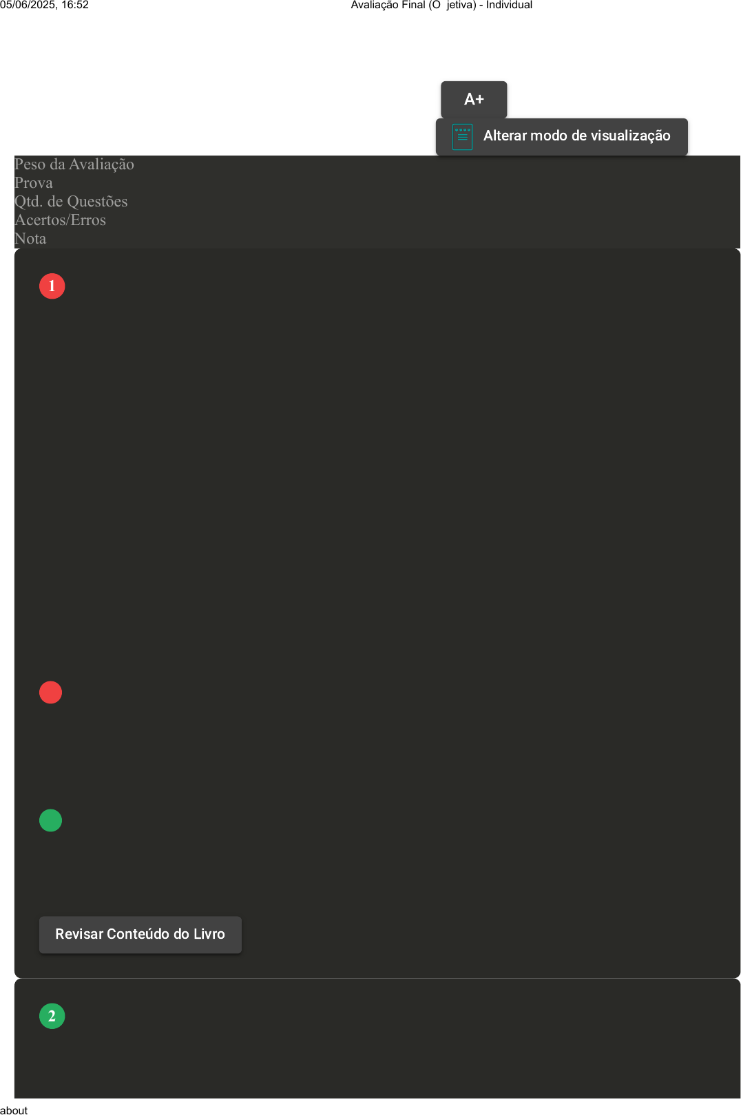Prova Impressa GABARITO | Avaliação Final (Objetiva) - Individual (Cod.:983077) Peso da Avaliação 4,00 Prova 86666900 Qtd. de Questões 10 Acertos/Erros 5/5 Nota 5,00 A elaboração da metodologia é um componente crucial na pesquisa científica, na qual se detalham os métodos e técnicas utilizados para dar vida ao que foi apresentado no estudo. É nesse momento que se deve identificar o tipo de pesquisa a ser realizada. Considerando o dado fragmento de texto sobre métodos de pesquisa, analise as afirmativas a seguir: I. Pesquisa qualitativa se concentra em problemáticas específicas e trabalha com análise de dados descritivos, de conteúdos e de significância. II. Pesquisa quantitativa trata de problemáticas amplas e é relacionada a análises estatísticas, focando no exato e no lógico. III. Não existe um tipo de pesquisa superior ao outro; a escolha entre pesquisa qualitativa ou quantitativa depende do tipo de problema de pesquisa. IV. A metodologia na pesquisa científica se limita à definição do método e à coleta de dados, não se preocupando com a apresentação dos procedimentos de análise. É correto o que se afirma em: A I e II, apenas. B I, III e IV, apenas. C I, II e III, apenas. D II, III e IV, apenas. A partir do surgimento do capitalismo, a ciência se tornou “parte integrante e indispensável da atividade econômica” (CHAUÍ, 1994, p. 286) e se desenvolve a passos largos. A cada ano são VOLTAR A+ Alterar modo de visualização 1 Revisar Conteúdo do Livro 2 05/06/2025, 16:52 Avaliação Final (Objetiva) - Individual about:blank 1/7 descobertos novos conhecimentos, seja confirmando e aprofundando os já existentes ou questionando o que já se sabia sobre um aspecto da realidade e propondo novas formas de explicação (teorias). Fonte: adaptado de: CHAUÍ, M. H. Convite à filosofia. São Paulo: Ática, 1994. Com base nas informações apresentadas, avalie as asserções a seguir e a relação proposta entre elas: I. A ciência não é definitiva, avança à medida em que surgem novas demandas ou as teorias já existentes não dão mais conta de explicar o real. PORQUE II. As novas gerações se apoiam nos conhecimentos anteriores para avançar e contam com equipamentos mais aperfeiçoados, permitindo o avanço do saber. A respeito dessas asserções, assinale a opção correta: A A asserção I é uma proposição falsa, e a II é uma proposição verdadeira. B A asserção I é uma proposição verdadeira, e a II é uma proposição falsa. C As asserções I e II são verdadeiras, mas a II não é uma justificativa correta da I. D As asserções I e II são verdadeiras, e a II é uma justificativa correta da I. Toda inovação surge de extensa pesquisa, dedicação e esforço, envolvendo um processo estruturado que abrange a identificação de uma necessidade, a busca e seleção de ideias de mudança, até a viabilização e concretização dessas ideias. Sobre a inovação e suas diferentes formas, analise as afirmativas a seguir: I. A inovação incremental busca melhorar ou agregar valor aos processos e produtos já existentes, tendo baixo impacto no mercado e geralmente se baseando em feedback dos clientes ou detecção de necessidades ainda não atendidas. II. A inovação radical envolve uma nova tecnologia e um modelo de negócios inovador, tem o potencial de alterar significativamente a posição competitiva de uma empresa no mercado e geralmente demanda um alto investimento. III. A inovação semirradical sempre exige algum grau de mudança tanto no modelo de negócios quanto na tecnologia, mas as alterações em um desses elementos sempre são bem mais significativas que no outro. IV. As inovações radicais ou disruptivas são comumente introduzidas por empresas estabelecidas no mercado, devido ao alto nível de risco e ao investimento significativo necessário para sua implementação. 3 05/06/2025, 16:52 Avaliação Final (Objetiva) - Individual about:blank 2/7 É correto o que se afirma em: A I, II e III, apenas. B I, II e IV, apenas. C I e III, apenas. D II, III e IV, apenas. Desde os anos 1950, o Brasil vem organizando tanto a formação de pesquisadores quanto a criação/expansão de centros para a produção de conhecimento e tecnologia. Esse esforço deu origem ao Sistema Nacional de Ciência, Tecnologia e Inovação (SNCTI). Fonte: adaptado de: CENTRO DE GESTÃO E ESTUDOS ESTRATÉGICOS (CGEE). Estratégia Nacional de Ciência, Tecnologia e Inovação 2016-2022. [S. l.]: Ministério da Ciência, Tecnologia, Inovações e as universidades, Centros de Pesquisa Comunicações, 2016. Disponível em: https://bit.ly/43AnIGJ. Acesso em: 23 maio 2023. Com relação à estrutura e aos objetivos do Sistema Nacional de Ciência, Tecnologia e Inovação (SNCTI), analise as afirmativas a seguir: I. O SNCTI estrutura a área de Ciência, Tecnologia e Inovação no Brasil, desde a definição das políticas para a área, até o financiamento de projetos. II. O único objetivo do SNCTI é o financiamento da pesquisa, o que ocorre anualmente por meio do lançamento de editais pelas agências de fomento dos diversos estados da federação. III. O SNCTI é estruturado em três níveis de acordo com os agentes que o compõem. Estes níveis são: atores políticos, agências de fomento e operadores de Ciência, Tecnologia e Inovação. É correto o que se afirma em: A III, apenas. Revisar Conteúdo do Livro 4 05/06/2025, 16:52 Avaliação Final (Objetiva) - Individual about:blank 3/7 B I e III, apenas. C II, apenas. D I, apenas. A análise de dados emerge das estratégias implementadas e justificadas durante a fase metodológica, ocasião em que foram estabelecidas ações práticas para a coleta de dados e informações. Sobre a análise e a discussão de resultados em uma pesquisa científica, assinale a alternativa correta: A As formas de apresentação dos dados ao leitor podem variar e podem ser numéricas ou literais, dependendo do tipo de pes