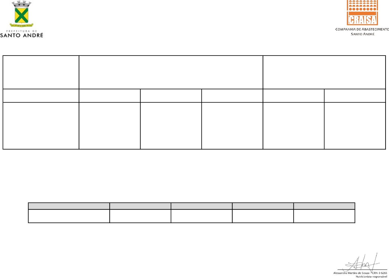 SECRETARIA DE EDUCAÇÃO DO MUNICÍPIO DE SANTO ANDRÉ SUPERVISÃO DE ALIMENTAÇÃO ESCOLAR- SAE PROGRAMA NACIONAL DE ALIMENTAÇÃO ESCOLAR - PNAE PERÍODO: 02/06/25 a 06/06/25 Salada de alface e carambola Arroz/Feijão Carne moída com mandioquinha TIPO DE CARDÁPIO: EJA - CPFP Júlio de Grammont (Pq. Andreense) CARDÁPIO SEMANAL TIPO DE ENSINO: EJA FAIXA ETÁRIA: 18 a 60 anos (20% das necessidades nutricionais diárias) 6ª FEIRA REFEIÇÃO 2ª FEIRA 3ª FEIRA 4ª FEIRA 5ª FEIRA 02/06/2025 03/06/2025 04/06/2025 05/06/2025 06/06/2025 LANCHE Horário*: 19h às 20h Carboidrato (g) Proteína (g) Lipídio (g) Considerações: 96,00 19,73 5,23 - Referências Nutricionais: Energia - Organização das Nações Unidas para Agricultura e Alimentação (FAO), 2004. Carboidrato, Proteína e Lipídio - Organização Mundial de Saúde (OMS), 2004 e 2007. Média Semanal EJA Leite integral batido com banana e beterraba Banana Pão integral com manteiga - *Horário sugerido das refeições. Composição Nutricional Energia (kcal) Pera - Cardápio sujeito a alterações pela SAE - Este Cardápio deve permanecer fixado na cozinha da escola e disponibilizado para a comunidade escolar, conforme Resolução FNDE nº 06/2020. - Valores Nutricionais de acordo com cardápio planejado. 499,58 Maçã Arroz/Feijão Cubos de carne com batata Arroz/Feijão Cubos de frango com abobrinha e cenoura Abacaxi Sopa de carne com grão de bico, fubá, abóbora, batata, mandioca e escarola Bisnaguinha Tangerina SECRETARIA DE EDUCAÇÃO DO MUNICÍPIO DE SANTO ANDRÉ SUPERVISÃO DE ALIMENTAÇÃO ESCOLAR- SAE PROGRAMA NACIONAL DE ALIMENTAÇÃO ESCOLAR - PNAE PERÍODO: 09/06/25 a 13/06/25 Arroz/Feijão Tiras de frango com abóbora e mandioquinha Maçã Arroz/Feijão Cubos de frango com cenoura e chuchu Pera Média Semanal EJA 470,27 92,91 18,27 3,83 6ª FEIRA 13/06/2025 TIPO DE CARDÁPIO: EJA - CPFP Júlio de Grammont (Pq. Andreense) CARDÁPIO SEMANAL REFEIÇÃO 2ª FEIRA Abacaxi Banana Suco de laranja integral TIPO DE ENSINO: EJA FAIXA ETÁRIA: 18 a 60 anos (20% das necessidades nutricionais diárias) 3ª FEIRA 4ª FEIRA 5ª FEIRA Pão integral com molho de carne e alface Considerações: - Cardápio sujeito a alterações pela SAE - Este Cardápio deve permanecer fixado na cozinha da escola e disponibilizado para a comunidade escolar, conforme Resolução FNDE nº 06/2020. - Valores Nutricionais de acordo com cardápio planejado. 09/06/2025 10/06/2025 Sopa de carne com ervilha, arroz, abóbora, batata, cará e couve 11/06/2025 12/06/2025 - Referências Nutricionais: Energia - Organização das Nações Unidas para Agricultura e Alimentação (FAO), 2004. Carboidrato, Proteína e Lipídio - Organização Mundial de Saúde (OMS), 2004 e 2007. - *Horário sugerido das refeições. Composição Nutricional Biscoito de polvilho Energia (kcal) Carboidrato (g) Proteína (g) Lipídio (g) Horário*: 19h às 20h LANCHE Tangerina Arroz/Feijão Carne moída com batata doce SECRETARIA DE EDUCAÇÃO DO MUNICÍPIO DE SANTO ANDRÉ SUPERVISÃO DE ALIMENTAÇÃO ESCOLAR- SAE PROGRAMA NACIONAL DE ALIMENTAÇÃO ESCOLAR - PNAE PERÍODO: 16/06/25 a 20/06/25 20/06/2025 2ª FEIRA Considerações: - Cardápio sujeito a alterações pela SAE - Este Cardápio deve permanecer fixado na cozinha da escola e disponibilizado para a comunidade escolar, conforme Resolução FNDE nº 06/2020. - Valores Nutricionais de acordo com cardápio planejado. Média Semanal EJA 482,56 93,50 Melão Banana 6ª FEIRA3ª FEIRA 4ª FEIRA 5ª FEIRA REFEIÇÃO Horário*: 19h às 20h LANCHE Arroz/Feijão EMENDA DE FERIADO TIPO DE ENSINO: EJA FAIXA ETÁRIA: 18 a 60 anos (20% das necessidades nutricionais diárias) TIPO DE CARDÁPIO: EJA - CPFP Júlio de Grammont (Pq. Andreense) CARDÁPIO SEMANAL 18,63 4,72 - Referências Nutricionais: Energia - Organização das Nações Unidas para Agricultura e Alimentação (FAO), 2004. Carboidrato, Proteína e Lipídio - Organização Mundial de Saúde (OMS), 2004 e 2007. - *Horário sugerido das refeições. Composição Nutricional Energia (kcal) Carboidrato (g) Lipídio (g)Proteína (g) Salada de tomate Arroz/Feijão Tiras de frango com batata doce e cenoura Sopa de carne com feijão, arroz, abóbora, batata, chuchu e escarola Biscoito de aveia FERIADO Maçã Carne moída com abóbora e batata 16/06/2025 17/06/2025 18/06/2025 19/06/2025 SECRETARIA DE EDUCAÇÃO DO MUNICÍPIO DE SANTO ANDRÉ SUPERVISÃO DE ALIMENTAÇÃO ESCOLAR- SAE PROGRAMA NACIONAL DE ALIMENTAÇÃO ESCOLAR - PNAE PERÍODO: 23/06/25 a 27/06/25 TIPO DE CARDÁPIO: EJA - CPFP Júlio de Grammont (Pq. Andreense) CARDÁPIO SEMANAL TIPO DE ENSINO: EJA REFEIÇÃO 2ª FEIRA 3ª FEIRA 4ª FEIRA 5ª FEIRA 6ª FEIRA 23/06/2025 24/06/2025 25/06/2025 26/06/2025 27/06/2025 FAIXA ETÁRIA: 18 a 60 anos (20% das necessidades nutricionais diárias) Média Semanal EJA 507,35 93,50 Cubos de carne com cenoura e inhame Maçã LANCHE Leite integral batido com banana e maracujá Pão de milho com manteiga Horário*: 19h às 20h Banana Salada de acelga e rabanete Manga Tangerina Arroz Feijão preto com cubos de carne e pernil Bisnaguinha Pera Arroz/Feijão Cubos de frango com abóbora e chuchu 21,80 6,28 Considerações: - Cardápio sujeito a alterações pela SAE - Este Cardápio deve permanecer fixado na cozinha da escola e disponibilizado para a comunidade escolar, conforme Resolução FNDE nº 06/2020. - Valores Nutricionais de acordo com cardápio planejado. - Referências Nutricionais: Energia - Organização das Nações Unidas para Agricultura e Alimentação (FAO), 2004. Carboidrato, Proteína e Lipídio - Organização Mundial de Saúde (OMS), 2004 e 2007. - *Horário sugerido das refeições. Composição Nutricional Energia (kcal) Carboidrato (g) Proteína (g) Lipídio (g) Arroz/Feijão Sopa de carne com feijão, fubá, batata, cará, cenoura e escarola
