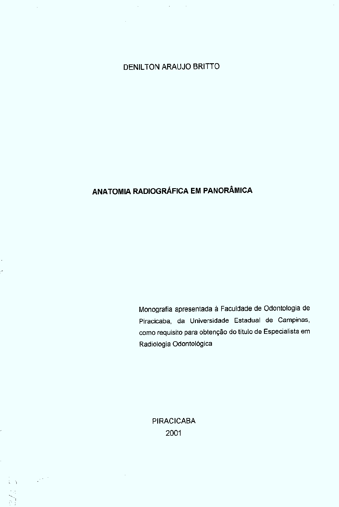 Faculdade de Odontologia de Piracicaba. 111. 1ítulo.
