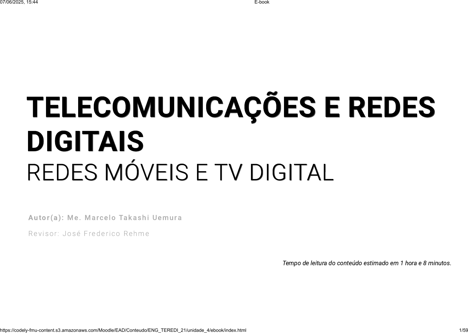 TELECOMUNICAÇÕES E REDESTELECOMUNICAÇÕES E REDES DIGITAISDIGITAIS REDES MÓVEIS E TV DIGITALREDES MÓVEIS E TV DIGITAL Au to r ( a ) : M e . M a rc e l o Ta k a s h i U e m u ra R ev i s o r : J o s é Fre d e r i c o R e h m e Tempo de leitura do conteúdo estimado em 1 hora e 8 minutos. 07/06/2025, 15:44 E-book https://codely-fmu-content.s3.amazonaws.com/Moodle/EAD/Conteudo/ENG_TEREDI_21/unidade_4/ebook/index.html 1/59 Introdução Olá, estudante! Seja muito bem-vindo(a)! Neste material, falaremos sobre a rede de telefonia móvel celular, explorando os seus principais conceitos, como a arquitetura baseada em estação rádio base e central de controle de comutação, trazendo um enfoque maior para o sistema GSM e as principais evoluções através das gerações 1G , 2G , 3G e 4G . Também abordaremos a televisão digital , suas principais características e os diferentes padrões utilizados mundialmente, como DVB, ATSC e ISDB, especificando em maiores detalhes a escolha feita no Brasil. Por fim, falaremos sobre a característica de interatividade na televisão digital, que proporciona uma nova experiência para seus usuários. Bons estudos! 07/06/2025, 15:44 E-book https://codely-fmu-content.s3.amazonaws.com/Moodle/EAD/Conteudo/ENG_TEREDI_21/unidade_4/ebook/index.html 2/59 Você com certeza já notou que a telefonia celular é a realidade de muitos no que tange à comunicação . Permite a flexibilidade de realizar ligações de voz e acessar a internet em diferentes locais, parado ou em movimento. Isso é possível graças ao sistema de telefonia celular, que cria uma cobertura de atendimento de serviços para usuários móveis. Neste tópico, vamos conhecer os principais conceitos e elementos de um sistema de telefonia celular, em especial, a arquitetura GSM . Conceitos de Telefonia Celular 07/06/2025, 15:44 E-book https://codely-fmu-content.s3.amazonaws.com/Moodle/EAD/Conteudo/ENG_TEREDI_21/unidade_4/ebook/index.html 3/59 Sistema de Telefonia Celular O sistema de telefonia celular é um sistema de comunicação sem fio , com a transmissão da informação feita através das ondas de rádio , em que cada usuário utiliza um canal de transmissão e outro de recepção, tendo uma frequência alocada para cada canal dentro de uma largura de faixa estabelecida. Segundo Alencar (2011, p. 224), “este sistema consiste na divisão da área a ser coberta por um sistema de telefonia móvel em áreas menores, permitindo a utilização de transmissores de baixa potência”. As áreas definidas pelo sistema celular são divididas em sub-regiões denominadas células . Célula é a área geográfica atendida por uma estação rádio base (ERB), conforme você poderá ver na figura a seguir, dentro da qual a recepção deve atender às especificações do sistema. As células podem ser omnidirecionais , em que a estação rádio base utiliza uma antena omnidirecional que transmite a mesma potência para todas as direções, ou setorizadas, em que se faz uso de um conjunto de antenas diretivas (ALENCAR, 2011). 07/06/2025, 15:44 E-book https://codely-fmu-content.s3.amazonaws.com/Moodle/EAD/Conteudo/ENG_TEREDI_21/unidade_4/ebook/index.html 4/59 Figura 4.1 - Células e estações rádio base Fonte: Sverzut (2015, p. 26). 07/06/2025, 15:44 E-book https://codely-fmu-content.s3.amazonaws.com/Moodle/EAD/Conteudo/ENG_TEREDI_21/unidade_4/ebook/index.html 5/59 Pode-se agrupar um conjunto de células em clusters e reutilizar frequências entre clusters distintos, sendo a limitação por conta da interferência , em contraposição aos sistemas móveis convencionais que apresentam limitação pelo ruído devido às altas potências utilizadas. Deve-se evitar o reuso da frequência em células muito próximas. Entenda melhor isso na figura a seguir: #PraCegoVer : esta imagem apresenta três células sendo representadas por elipses tracejadas, sendo que duas estão à esquerda e uma à direita, havendo intersecções entre as três. Em cada elipse, há a representação de uma casa com uma torre de antenas, representando uma estação rádio base. 07/06/2025, 15:44 E-book https://codely-fmu-content.s3.amazonaws.com/Moodle/EAD/Conteudo/ENG_TEREDI_21/unidade_4/ebook/index.html 6/59 Para controlar as estações rádio base, que fazem a cobertura da comunicação com usuários móveis, temos a central de comutação celular (CCC), que auxilia na construção de chamadas telefônicas móveis dentro do sistema de telefonia celular e com outros sistemas, como o de Figura 4.2 - Reutilização de frequências (F1, F2, F3, F4, F5) Fonte: Soares Neto (2015, p. 143). #PraCegoVer : nesta imagem, temos uma fileira de 7 circunferências alinhadas horizontalmente, representando as frequências F1, F2, F3, F4, F5, F1 e F2. Abaixo, temos uma segunda sequência horizontal de circunferências, começando entre as circunferências com frequência F1 e F2 da sequência acima, representando as frequências F5, F1, F2, F3 e F4 e havendo uma lacuna entre F5 e F1. 07/06/2025, 15:44 E-book https://codely-fmu-content.s3.amazonaws.com/Moodle/EAD/Conteudo/ENG_TEREDI_21/unidade_4/ebook/index.html 7/59 telefonia fixa. Na figura, a seguir, você vai poder ver uma representação de um sistema de telefonia celular. 07/06/2025, 15:44 E-book https://codely-fmu-content.s3.amazonaws.com/Moodle/EAD/Conteudo/ENG_TEREDI_21/unidade_4/ebook/index.html 8/59 Figura 4.3 - Sistema de telefonia celular Fonte: Soares Neto (2015, p. 142). 07/06/2025, 15:44 E-book https://codely-fmu-content.s3.amazonaws.com/Moodle/EAD/Conteudo/ENG_TEREDI_21/unidade_4/ebook/index.html 9/59 Na arquitetura GSM (Global System Mobile), a função da ERB é realizada no sistema de estação base, ou BSS – Base Station System, enquanto a CCC está no sistema de comutação de rede, ou NSS – Network Switching System. Conheça agora algumas funcionalidades presentes na rede do sistema de telefonia celular: Handoff: durante uma ligação, o usuário móvel pode realizar um des