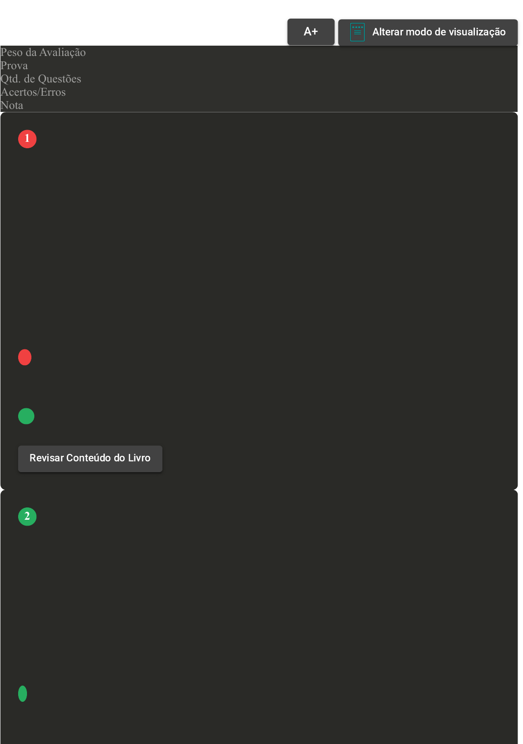 Prova Impressa GABARITO | Avaliação II - Individual (Cod.:828140) Peso da Avaliação 1,50 Prova 60697152 Qtd. de Questões 10 Acertos/Erros 9/1 Nota 9,00 Os medicamentos isentos de prescrição (MIPs) tornam-se diretamente atrelados à automedicação. Sobre os MIPs, assinale a alternativa CORRETA: A São medicamentos fitoterápicos que somente podem ser vendidos com a apresentação da receita, porém sem a retenção desta. B São medicamentos tarjados que podem ser vendidos sem retenção da receita, porém esta deve ser apresentada. C São medicamentos sem tarja que somente podem ser vendidos com a apresentação da receita, porém sem a retenção desta. D São medicamentos sem tarja que podem ser vendidos sem a apresentação ou a retenção de receita. A Portaria nº 344/1998 e suas atualizações aprovam o regulamento técnico para substâncias que são sujeitas a controle especial e devem ser conhecidas por todos os farmacêuticos. Com base no que a Portaria n° 344/1998 determina, assinale a alternativa CORRETA: FONTE: https://bvsms.saude.gov.br/bvs/saudelegis/svs/1998/prt0344_12_05_1998_rep.html. Acesso em: 9 mar. 2021. A O formulário da receita de controle especial deverá ser preenchido em 2 vias, apresentando obrigatoriamente em cada uma das vias os dizeres "1ª via orientação ao paciente" e "2ª via retenção da farmácia ou drogaria". B A notificação de receita "A" para a prescrição dos medicamentos e substâncias das listas A1, A2, A3 é de cor azul. C A notificação de receita "B" poderá conter no máximo cinco ampolas e para as demais formas farmacêuticas, a quantidade para o tratamento correspondente a no máximo 60 dias. D A notificação de receita especial, de cor branca, para prescrição de medicamentos à base de substâncias constantes da lista "C2" será impressa pelo médico prescritor. Terá validade por um VOLTAR A+ Alterar modo de visualização 1 Revisar Conteúdo do Livro 2 período de 180 dias contados a partir de sua emissão em qualquer unidade federativa do país. As formas farmacêuticas são as categorias da forma física em que os medicamentos se apresentam e podem ser divididas, visando a melhor administração para cada idade ou situação clínica, e facilitando a terapêutica do paciente. Sobre as formas farmacêuticas e as vias de administração, classifique V para as sentenças verdadeiras e F para as falsas: ( ) Em geral, fármacos administrados em solução aquosa são absorvidos mais rapidamente do que aqueles administrados em forma sólida. ( ) As vias tópica, inalatória, bucal, sublingual e retal utilizam a pele e a mucosa para a administração de fármacos. ( ) A via enteral é composta por todas as administrações que utilizam o trato gastrointestinal para introduzir o fármaco no organismo. ( ) A via parenteral é composta por todas as administrações que utilizam o trato gastrointestinal para introduzir o fármaco no organismo. Assinale a alternativa que apresenta a sequência CORRETA: A V - V - F - V. B F - V - V - F. C V - V - V - F. D F - F - V - F. Os medicamentos genéricos estão presentes desde a década de 1960, e sua criação possibilitou o acesso de medicamentos a uma maior parte da população. Com base no medicamento genérico, assinale a alternativa CORRETA: 3 4 A Medicamento que possui composição completa e idêntica ao medicamento referência (Inovador), na mesma forma farmacêutica, dose, posologia e indicação, apresentando eficácia e segurança equivalentes à do medicamento de referência, porém não pode ser intercambiável. B Medicamento que possui o mesmo nome de marca do medicamento referência (Inovador), na mesma forma farmacêutica, dose, posologia e indicação, apresentando eficácia e segurança equivalentes à do medicamento de referência, podendo, com este, ser intercambiável. C Medicamento que possui o mesmo princípio ativo do medicamento referência (Inovador), na mesma forma farmacêutica, dose, posologia e indicação, apresentando eficácia e segurança equivalentes à do medicamento de referência, podendo, com este, ser intercambiável. D Medicamento que possui o mesmo princípio ativo do medicamento similar (Marca), na mesma forma farmacêutica, dose, posologia e indicação, apresentando eficácia e segurança equivalentes à do medicamento similar, podendo, com este, ser intercambiável. Existem diversas formas farmacêuticas de incorporar um fármaco para o tratamento conveniente e eficaz de uma doença. Sobre as formas farmacêuticas e as vias de administração, classifique V para as sentenças verdadeiras e F para as falsas: ( ) Soluções, pomadas e cremes são formas farmacêuticas que podem ser utilizadas nas vias: ocular, auricular e retal. ( ) Comprimidos e cápsulas são as formas farmacêuticas sólidas mais comumente prescritas, pois são relativamente baratas de produzir. ( ) Para crianças, fórmulas líquidas são simples de administrar e oferecem uma dosagem flexível, porém precisam, quando utilizadas com o auxílio de um dispositivo, de dosagem apropriada. ( ) Em preparações sólidas, a absorção independe da dissolução do comprimido ou da cápsula para a liberação do fármaco. Assinale a alternativa que apresenta a sequência CORRETA: A F - F - V - F. 5 B F - F - V - V. C V - V - V - F. D F - V - F - V. A legislação para a fabricação de remédios sofreu alterações nas últimas décadas e ainda causa confusão. A classificação dos medicamentos é dividida em três categorias diferentes, sendo elas: referência, similares e genéricos. Sobre o exposto, classifique V para as sentenças verdadeiras e F para as falsas: ( ) Os medicamentos genéricos podem ser identificados pela tarja amarela na caixa (embalagem externa) na qual se lê "Medicamento Genérico", acompanhado da frase "Medicamento Genérico Lei nº 9.787/99". ( ) O medicamento inovador (referência) é aquele cuja eficácia e segurança foram cientificamente comprovadas, r