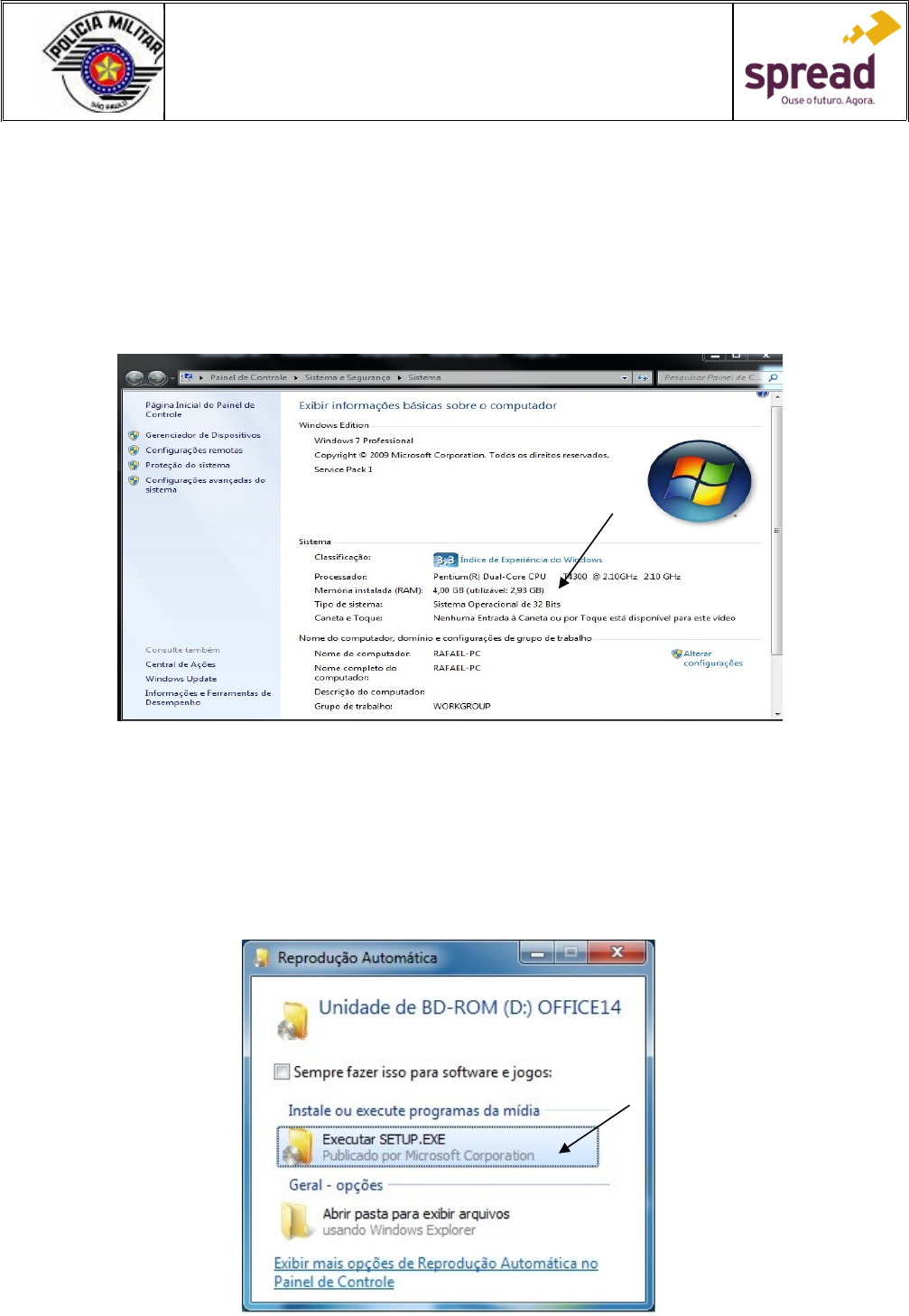 PROCEDIMENTO TÉCNICO 1.1 – INSTALANDO O OFFICE 2010 ANTES DA INSTALAÇÃO DO OFFICE VERIFIQUE A VERSÃO DO SISTEMA OPERACIONAL SE A MESMA É 32 BITS OU 64 BITS PRESSIONE A TECLA DO WINDOWS + PAUSE BREAK E VERIFIQUE A VERSÃO DO WINDOWS PARA FAZER A INSTALAÇÃO DO OFFICE 2010, INSIRA O CD DE INSTALAÇÃO NO DRIVE DE CD/DVD DO COMPUTADOR. AGUARDE A INICIALIZAÇÃO DO CD, A JANELA DE REPRODUÇÃO AUTOMÁTICA IRÁ APARECER. CLIQUE EM “EXECUTAR SETUP.EXE”. OBS: CASO A JANELA DE REPRODUÇÃO NÃO APAREÇA, VÁ ATÉ O DRIVE DE CD/DVD E EXECUTE O ARQUIVO “SETUP.EXE” PROCEDIMENTO TÉCNICO AO EXECUTAR O “SETUP.EXE”, A JANELA DE INSTALAÇÃO DO OFFICE SERÁ INICIADA. SURGIRÁ A TELA DE ACEITE DE CONTRATO, MARQUE A OPÇÃO “ACEITO OS TERMOS DESTE CONTRATO” E CLIQUE EM CONTINUAR. EM SEGUIDA CLIQUE EM INSTALAR AGORA. A INSTALAÇÃO DO OFFICE SERÁ INICIALIZADA. AGUARDE! PROCEDIMENTO TÉCNICO PROCEDIMENTO TÉCNICO APÓS O TÉRMINO DA INSTALAÇÃO, CLIQUE EM FECHAR. PROCEDIMENTO TÉCNICO PARA ATIVAR O PACOTE OFFICE É NECESSÁRIO QUE A MÁQUINA ESTEJA NA REDE DA INTRANET CASO CONTRÁRIO NÃO SERÁ POSSIVEL VALIDAR – LO. PARA VALIDAÇÃO SIGA AS SEGUINTES INDICAÇÕES: PROCEDIMENTO TÉCNICO DIGITE A CHAVE DE PRODUTO AGUARDE VALIDAÇÃO E CLIQUE EM CONTINUAR, O PRODUTO SERÁ VALIDADO.