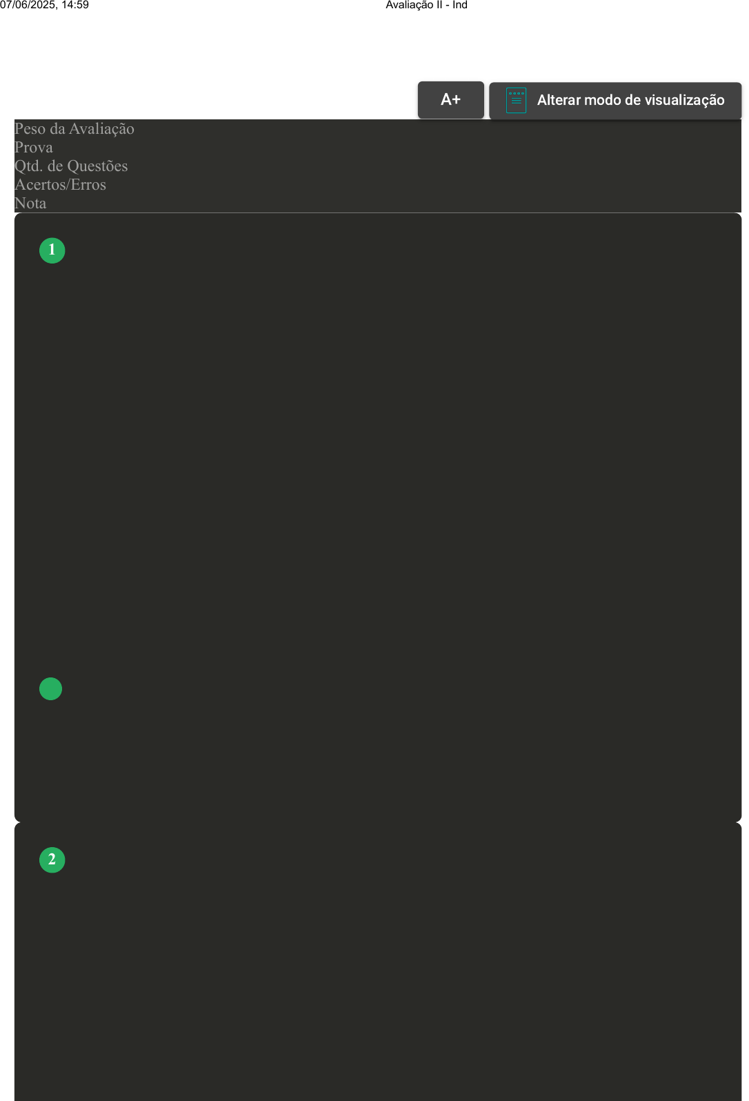 Prova Impressa GABARITO | Avaliação II - Individual (Cod.:1025565) Peso da Avaliação 2,00 Prova 100963687 Qtd. de Questões 10 Acertos/Erros 10/0 Nota 10,00 Danos inflamatórios das membranas celulares fornecem fosfolipídeos que são substratos à síntese dos eicosanoides e do fator ativador plaquetário (PAF). A fosfolipase A2 (PLA2), enzima inibida pelos anti-inflamatórios esteroidais (AIEs), degrada os fosfolipídeos produzidos pelas membranas celulares, devido a danos inflamatórios, produzindo os metabólitos do ácido araquidônico, conhecidos como eicosanoides (prostaglandinas, tromboxanos, prostaciclinas e leucotrienos). Esses produtos não são armazenados, mas são sintetizados pela maioria das células, quando vários estímulos físicos, químicos e hormonais ativam as acil-hidrolases que tornam o araquidonato disponível. Com base no texto e sobre os danos inflamatórios, analise as afirmativas a seguir: I. A prostaglandina E2 (PGE2) e a prostaciclina (PGI2) são os principais prostanoides que medeiam a inflamação. II. A COX-2 diminui durante os estados inflamatórios, controlando o quadro inflamatório, produção de dor e febre. III. Os mediadores inflamatórios liberados por células não neuronais durante a lesão tecidual aumentam a sensibilidade dos nociceptores e potencializam a percepção da dor. IV. A biossíntese de prostanoides não se altera nos tecidos inflamados. Dessa forma, a inibição dessas vias não está envolvida nos processos inflamatórios, dolorosos e quadros febris. É correto o que se afirma em: A III e IV, apenas. B II e III, apenas. C I e III, apenas. D I e IV, apenas. E I, II, III e IV. O processo alérgico é uma reação fisiológica decorrente de fatores externos ou internos que são estranhos ao organismo. Desde a antiguidade se fazia uso de plantas medicinais para tratar diversas enfermidades, incluindo alergias. Nos últimos anos, houve avanços tecnológicos e, através de estudos, foram desenvolvidos anti-histamínicos (antialérgicos) sintéticos, usando a molécula de histamina como protótipo (modelo). Fonte: adaptado de: SILVA, E. S.; SILVA, J. F.; LINS, S. R. O. Plantas com atividade anti- histamínica. Brazilian Journal of Development, Curitiba, v. 6, n. 12, p. 95873-95884, 2020. Disponível em: https://ojs.brazilianjournals.com.br/ojs/index.php/BRJD/article/view/21242/16938. Acesso em: 28 fev. 2025. Com base no excerto apresentado, analise as afirmativas a seguir: I. A histamina é uma substância sintetizada por diferentes células humanas, sendo um potente mediador de reações fisiológicas. VOLTAR A+ Alterar modo de visualização 1 2 07/06/2025, 14:59 Avaliação II - Individual about:blank 1/6 II. Os anti-histamínicos foram desenvolvidos com base na histamina, sendo capazes de se ligarem aos receptores de histamina no organismo. III. Os anti-histamínicos atuam inibindo os efeitos da histamina no organismo, sendo fundamentais para o controle das doenças alérgicas. IV. Os efeitos da histamina são mediados pela sua ligação com receptores, sendo responsável por muitos sintomas das doenças alérgicas. É correto o que se afirma em: A I, II, III e IV. B III e IV, apenas. C I, II e III, apenas. D I, apenas. E II e IV, apenas. Os anti-inflamatórios não esteroidais (AINES) são os mais antigos e convencionais utilizados na medicina. O seu mecanismo de ação envolve a inibição das enzimas COX-1 e COX-2, por isso, são denominados como não seletivos. Esses medicamentos são rotineiramente utilizados, no entanto, apresentam sérios efeitos adversos a médio e longo prazo, podendo gerar danos renais e até um quadro de insuficiência. Fonte: adaptado de: SANTOS, E. J. S.; SILVA FILHO, S. M.; GUEDES, J. P. Anti-inflamatórios não esteroidais e problemas renais. Research, Society and Development, [s. l.], v. 10, n. 15, 2021. Disponível em: https://rsdjournal.org/index.php/rsd/article/view/22923/20044. Acesso em: 27 fev. 2025. Com base no texto e nos AINEs formulados para reduzir os danos associados a essa classe de anti- inflamatórios, assinale a alternativa correta: A Estimuladores de prostaglandina. B Seletivos para COX-2. C Supressores do ácido araquidônico. D Competitivos de LOX. E Específico para COX-1. Os fármacos que interferem nas ações autonômicas simpáticas são denominados de agonistas simpáticos ou simpatomiméticos, quando estimulam o sistema nervoso autônomo (SNA) simpático, e antagonistas simpáticos ou simpatolíticos, quando inibem ou antagonizam a ação do SNA simpático. Com base no texto e sobre essas classes de fármaco, assinale a alternativa correta: A Os fármacos que liberam noradrenalina indiretamente e, também, ativam diretamente os receptores são denominados de simpatomiméticos de ação indireta. 3 4 07/06/2025, 14:59 Avaliação II - Individual about:blank 2/6 B Os fármacos de ação indireta aumentam a disponibilidade da noradrenalina ou da adrenalina para estimular os receptores adrenérgicos apenas por um mecanismo: bloqueando o transporte de noradrenalina nos neurônios simpáticos. C Catecolaminas e os fármacos simpatomiméticos de ação direta atuam diretamente sobre um ou mais dos receptores colinérgicos. D Os fármacos antagonistas do sistema simpático têm por característica reduzir a interação da noradrenalina, da adrenalina e de outros agentes simpaticomiméticos com os receptores alfa e beta-adrenérgicos. E A epinefrina ou adrenalina é sintetizada no timo e liberada junto a pequenas quantidades de noradrenalina na corrente sanguínea. Os benzodiazepínicos (BZD) são uma classe de medicamentos que apresentam diversas indicações. São ansiolíticos, hipnóticos, anticonvulsivantes e sedativos. Os BZDs são fármacos prescritos frequentemente na UTI, devido à capacidade sedativa deles e pelo efeito relacionado à amnésia anterógrada, minimizando os traumas psicológicos inerentes ao estresse ao qual o paciente é submetido em uma UTI. Com base