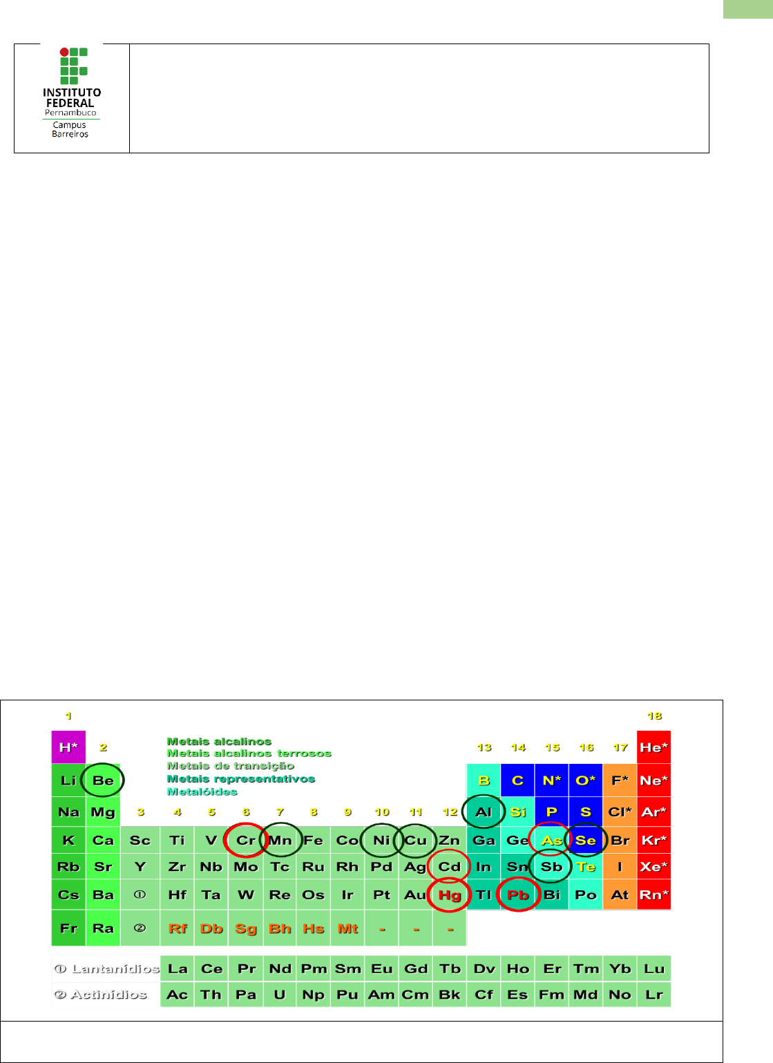 AGROECOLOGIA Solos e Qualidade Ambiental Prof. Rômulo Souza 1 Metais Pesados Instituto Federal de Pernambuco - Campus Barreiros Departamento de Desenvolvimento Educacional Coordenação do Curso Superior de Tecnologia em Agroecologia Solos e Qualidade Ambiental – Prof. Rômulo Souza Solos e Qualidade Ambiental – Metais Pesados e Meio Ambiente Os metais compõem um grupo de elementos químicos sólidos no seu estado puro, com exceção do mercúrio, que é líquido, caracterizados pelo seu brilho, dureza, cor amarelada a prateada, boa condutividade de eletricidade e calor, maleabilidade, ductilidade, além de elevados pontos de fusão e ebulição. Dentre estes elementos, existem alguns que apresentam uma densidade mais elevada do que a dos demais, e, por isso, são denominados metais pesados. Além da densidade elevada, o que, em números, equivale a mais de 4,0 g/cm³, os metais pesados também se caracterizam por apresentarem altos valores de número atômico (acima de 20), massa específica e massa atômica. Dos 105 elementos da tabela periódica 80 são metais, destes mais de 30 deles são tóxicos para os humanos: metais pesados propriamente dito são cerca de 20 elementos, metais leves (Alumínio e Berílio), metalóides que formam ânions e cátions (Arsênio e Selênio). A toxicidade desses elementos é conhecida desde a Antiguidade, raramente interferem nos sistemas biológicos quando estão em sua forma elementar (exceto o mercúrio elementar – Hg0). Figura 1. Metais de interesse toxicológico em destaque na tabela periódica dos elementos. AGROECOLOGIA Solos e Qualidade Ambiental Prof. Rômulo Souza 2 Metais Pesados No entanto, nem todo o metal é prejudicial ao organismo. Existem determinadas porções que são essenciais para os sistemas biológicos. Estas doses são tão pequenas que se designam por micronutrientes, como é o caso do zinco, do magnésio, do cobalto e do ferro. Assim podemos classificar os metais em: (A) elementos essenciais: sódio, potássio, cálcio, ferro, zinco, cobre, níquel e magnésio; (B) micro-contaminantes ambientais: arsênio, chumbo, cádmio, mercúrio, alumínio, titânio, estanho e tungsténio; (C) elementos essenciais e simultaneamente micro-contaminantes: cromo, zinco, ferro, cobalto, manganês e níquel. Resumidamente, os principais elementos que mais apresentam perigos e problemas ambientais são: chumbo, mercúrio, cádmio, arsênio, cromo, manganês e níquel. A depender da região, explorações econômicas ou dos costumes da população os outros podem se destacar. As principais propriedades dos metais pesados, também denominados elementos traço, são os elevados níveis de reatividade e bioacumulação. Isto quer dizer que tais elementos, além de serem capazes de desencadear diversas reações químicas, não metabolizáveis (organismos vivos não podem degradá-los), o que faz com que permaneçam em caráter cumulativo ao longo da cadeia alimentar. A toxicidade é a capacidade inerente a um agente químico de produzir danos aos organismos vivos em condições padronizadas de uso. Tóxico ou veneno, é toda a substância que tem, potencialmente, a capacidade de provocar lesão no organismo, quer seja prejudicando-o no seu normal funcionamento, quer destruindo-o, reversível ou irreversivelmente, nas suas funções vitais. Entende-se por intoxicação o efeito que resulta da ação de um tóxico ou veneno em vários aparelhos orgânicos. Isso implica na perturbação ou extinção da vida, por modificação direta ou indireta do meio líquido que os contém, como sangue e plasma do corpo. Uma substância muito tóxica causará danos a um organismo se for administrada em quantidades muito pequenas, enquanto uma substância de baixa toxicidade somente produzirá efeito quando a quantidade administrada for muito grande. De uma maneira geral, os tóxicos atuam pela sua natureza química. A principal porta de entrada da substância no organismo é fundamentalmente a digestiva, mas também a respiratória e a cutânea. AGROECOLOGIA Solos e Qualidade Ambiental Prof. Rômulo Souza 3 Metais Pesados Qualquer via possui os seus próprios mecanismos de defesa que se destinam, fundamentalmente, à eliminação do tóxico. Na via digestiva temos os vômitos e a diarreia como principais mecanismos de defesa. Na via respiratória é o aumento das secreções das mucosas nasal e faríngea, bem como a tosse. Outras barreiras de defesa orgânica são o fígado e os pulmões, por onde os tóxicos passam após a sua absorção. Quando o tóxico atinge os vários órgãos, provoca os seus efeitos nefastos, mas outros mecanismos de defesa se encarregarão da sua eliminação, tão rápida quanto possível, através de secreções como a urina, o suor ou a saliva Esses metais têm grande afinidade pelo oxigênio formando óxidos metálicos e pelo enxofre originando sulfatos. No corpo humano existem abundantemente este tipo de compostos para os quais os metais pesados apresentam afinidade. No nosso organismo, o enxofre desempenha um papel importante ao nível da estrutura das moléculas garantindo, entre outras funções, a estrutura tridimensional das proteínas. Em contacto com um metal pesado ocorre um outro tipo de conjugação, levando a uma alteração da sua estrutura que no caso específico de uma enzima poderá conduzir à redução da sua atividade parcial ou totalmente. nas suas formas catiônicas e quando AGROECOLOGIA Solos e Qualidade Ambiental Prof. Rômulo Souza 4 Metais Pesados ligados a cadeias curtas de carbonos possuem alta toxicidade, apresentado forte afinidade por cátions de enxofre. Os efeitos tóxicos dos metais sempre foram considerados como eventos de curto prazo, agudos e evidentes, como anúria e diarréia sanguinolenta, decorrentes da ingestão de mercúrio. Atualmente, ocorrências a médio e longo prazo são observadas, e as relações causa-efeito são pouco evidentes e quase sempre subclínicas. Geralmente esses efe
