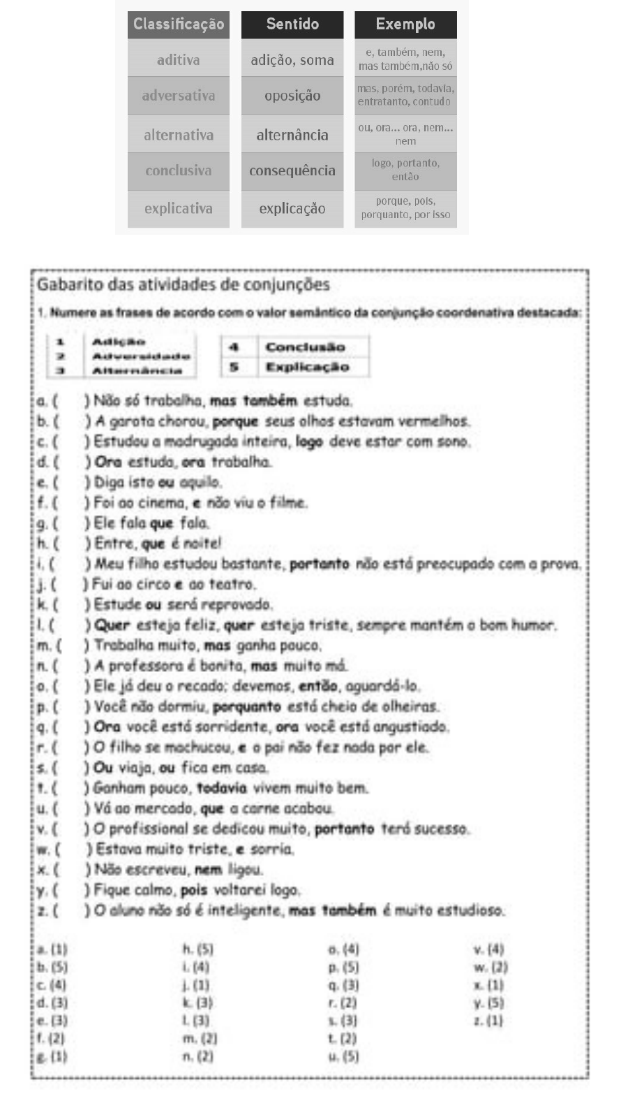 1.(PUC-SP) No período: “Da própria garganta saiu um grito de admiração, que Cirino acompanhou, embora com menos entusiasmo”, a palavra destacada expressa uma ideia de: a) explicação b) concessão c) comparação d) modo e) consequência 2. A análise de uma conjunção está intrinsecamente ligada ao contexto no qual é empregada, visto que um mesmo conectivo pode apresentar distintas classificações, em se tratando de um dado enunciado linguístico. Com base nas informações prestadas e, sobretudo, em seus conhecimentos, analise os casos em evidência, com vistas a apontar o tipo de relação estabelecida. a) Como não tinha se preparado para o exame avaliativo, seu desempenho não foi satisfatório. b) Realizamos o trabalho como nos foi determinado. c) Era linda como uma flor, e meiga como um anjo. d) Não procurava interagir com ninguém, como resultado, foi excluída do grupo. 3.Diante das orações que seguem, atente-se para a ocorrência de algumas conjunções subordinadas, analisando, posteriormente, a relação de sentido que a elas se refere. a- “Meu amor me ensinou a ser simples como um largo de igreja”. (Oswald de Andrade) b – “Naquele momento, como já disse, conservavam-se todos em silêncio”. (Graciliano Ramos). c – Para que sejas bem sucedido, procure se aperfeiçoar sempre. d – Quando me faz elogios, sinto-me honrada. e – A saudade aumenta, à medida que os dias vão passando. f – Desde que respeite minhas opiniões, poderemos conversar. 4. (UFPB-2010) No fragmento “A vida ganhou em qualidade, prorrogando a juventude, sem com isso perder os benefícios da longevidade bem-vinda [...]", a oração destacada expressa ideia de: a) Condição b) Consequência c) Concessão d) Comparação e) Causa 5. (PUC-SP) Em: “… ouviam-se amplos bocejos, fortes como o marulhar das ondas…” a partícula como expressa uma ideia de: a) comparação b) causa c) explicação d) conclusão e) proporção 6. (Fuvest-SP) "Podem acusar-me: estou com a consciência tranqüila." Os dois pontos (:) do período acima poderiam ser substituídos por vírgula, explicitando-se o nexo entre as duas orações pela conjunção: a) portanto b) e c) como d) pois e) embora 7. (Mackenzie-SP) Assinale “como” assume a mesma função que exerce em "como fosse trazido à sua presença um pirata". a) Como você conseguiu chegar até aqui? b) Como todos podem ver, a situação não é das melhores. c) Não só leu os livros indicados, como também outros de interesse pessoal. d) Como não telefonou, resolvi procurá-lo pessoalmente. e) O arquiteto projetou o jardim exatamente como lhe pediram. Resposta alternativa “b”. Resposta a) relação de causa b) conformidade c) comparação d) consequência Resposta a) comparação b) conformidade c) finalidade d) tempo e) proporção f) condição Alternativa correta c) Concessão Alternativa correta a) comparação Alternativa correta d) pois. Alternativa correta d) Como não telefonou, resolvi procurá-lo pessoalmente image1.png image2.jpeg