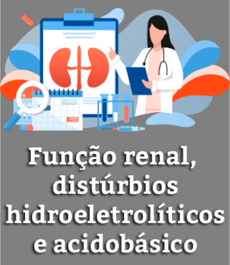DESCRIÇÃO Abordagem dos principais conceitos envolvidos na análise dos exames laboratoriais relativos à função renal, dos distúrbios hidroeletrolíticos e do equilíbrio acidobásico. PROPÓSITO Compreender os conceitos teóricos para realização e interpretação dos exames bioquímicos que avaliam a função renal, os distúrbios hidroeletrolíticos e distúrbios que afetam o equilíbrio acidobásico é importante para auxiliar o diagnóstico das principais patologias que envolvem o sistema renal e os distúrbios no metabolismo. PREPARAÇÃO Tenha em mãos uma calculadora, papel e caneta para realizar alguns cálculos necessários durante a análise da função renal. Sugerimos ainda o Dicionário Médico gratuito offline Edição: para estudantes de medicina e profissionais e o Glossário Médico elaborado pelo Laboratório de Habilidades e Simulação da USP, ambos disponíveis gratuitamente na web. OBJETIVOS MÓDULO 1 Descrever os principais exames para avaliação laboratorial da função renal MÓDULO 2 Reconhecer os principais distúrbios hidroeletrolíticos MÓDULO 3 Descrever os principais distúrbios do equilíbrio acidobásico INTRODUÇÃO Os rins são órgãos essenciais ao organismo, pois estão envolvidos na manutenção do equilíbrio acidobásico, hidroeletrolítico e da homeostasia interna. A maior parte das patologias que atingem esses órgãos comprometem não só a função renal, mas também atingem diretamente ou indiretamente todos os órgãos do organismo. A avaliação da função renal possibilita o diagnóstico precoce das doenças renais, como a insuficiência renal aguda ou crônica. Nesse contexto, a participação do laboratório é de grande importância, visto que essas doenças só se manifestam clinicamente quando mais de 50% a 75% da função renal está comprometida, ou seja, quando o paciente já evolui para um quadro grave que pode resultar na hemodiálise ou então transplante renal. Ao longo deste conteúdo, conheceremos os principais biomarcadores utilizados na avaliação da função renal. Veremos ainda os principais distúrbios hidroeletrolíticos e do equilíbrio acidobásico que são frequentes no cotidiano de médicos, farmacêuticos, biomédicos, biólogos e demais profissionais da saúde responsáveis pelo manejo de pacientes internados com distúrbios no metabolismo da água, ureia, glicose, sódio entre outros. AVISO: Orientações sobre unidades de medida. AVISO Em nosso material, unidades de medida e números são escritos juntos (ex.: 25km) por questões de tecnologia e didáticas. No entanto, o Inmetro estabelece que deve existir um espaço entre o número e a unidade (ex.: 25 km). Logo, os relatórios técnicos e demais materiais escritos por você devem seguir o padrão internacional de separação dos números e das unidades. MÓDULO 1 Descrever os principais exames para avaliação laboratorial da função renal INTRODUÇÃO À FUNÇÃO RENAL Anatomicamente, os rins são órgãos pares que possuem formato de grãos de feijão, medindo aproximadamente 6cm de largura, 11cm de comprimento e 3cm de espessura e pesando cerca de 130g no ser humano adulto sadio. Eles estão localizados junto à parede posterior do abdome, logo abaixo do diafragma, no espaço retroperitoneal, sendo o rim direito um pouco inferior ao rim esquerdo. javascript:void(0) Imagem: Shutterstock.com Posição anatômica dos rins. Tais órgãos possuem dois lados (um convexo e outro medial côncavo). No lado côncavo, chamado de hilo renal, se reúnem os vasos sanguíneos e linfáticos. Macroscopicamente, o rim se divide em duas seções: CÓRTEX RENAL Parte externa do rim, onde estão localizados os glomérulos e túbulos contorcidos (distais e proximais). MEDULA Parte mais interna do rim, constituída pelas alças de Henle e pirâmides de Malpighi. Imagem: Shutterstock.com Esquema mostrando as divisões macroscópicas do rim. Os rins possuem múltiplas funções homeostáticas essenciais ao organismo, são elas: Imagem: Shutterstock.com Remoção de resíduos (como os produtos do metabolismo de proteínas e ácidos nucleicos). javascript:void(0) javascript:void(0) Imagem: Shutterstock.com Manutenção do equilíbrio de eletrólitos (Na + (Sódio) , K + (Potássio) , Cl - (Cloreto) , Ca 2+ (Cálcio) , Mg 2+ (Magnésio) , SO4 2- (Sulfato) , PO4 2- (Fosfato) ). Imagem: Shutterstock.com Manutenção do equilíbrio acidobásico (manutenção do pH sanguíneo). Imagem: Shutterstock.com Regulação da pressão arterial. Imagem: Shutterstock.com Função endócrina importante com a produção de hormônios ou substâncias vasoativas que atuam regulando diferentes funções no organismo, como a eritropoietina, que estimula a medula óssea a produzir hemoglobina. Imagem: Shutterstock.com Convertem a vitamina D na sua forma ativa, aumentando a absorção intestinal de cálcio. Além dessas funções, os rins ainda convertem a vitamina D na sua forma ativa, aumentando a absorção intestinal de cálcio. SAIBA MAIS A função renal endócrina fica intacta até os estágios mais avançados da doença renal. Assim, um paciente que faz hemodiálise não necessariamente precisa de reposição farmacológica de eritropoietina. NÉFRON O néfron é a unidade funcional do rim composto por um glomérulo (vários capilares sanguíneos recobertos por células epiteliais) e um complexo sistema tubular que desempenham a maioria das funções renais. Você sabia que cada rim apresenta mais de 2 milhões de néfrons? Na imagem a seguir, note o néfron e os vasos sanguíneos renais. Imagem: Shutterstock.com Corte transversal do rim. Agora veja a seguir como é a estrutura e a função dos néfrons. 1 O glomérulo é envolvido por uma cápsula impermeável denominada cápsula de Bowman e apresenta um polo vascular, que é o local por onde chegam os vasos sanguíneos provenientes da artéria renal; e um polo urinário, onde iniciará a excreção renal. O glomérulo filtra grande qu