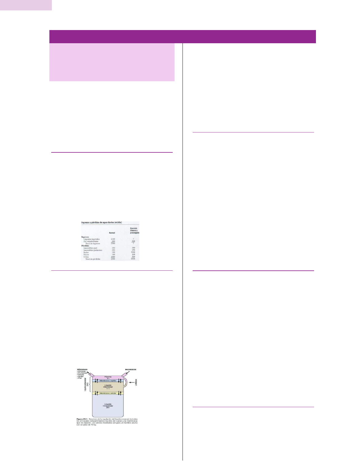 ‘ 1 Fisiologia SISTEMA URINARIO OS COMPARTIMENTOS LIQUIDOS DO CORPO: LÍQUIDOS EXTRA E INTRACELULAR, LIQUIDO INTERSTICIAL E EDEMA -Manter um volume constante e de uma composição estável dos líquidos corporais é essencial para a homeostases -Um dos problemas mais relevantes na pratica medica se deve a alterações do sistema de regulação, que mantem as constâncias dos líquidos corporais EQUILIBRIOS ENTRE INGRESSO E PERCA DE LIQUIDOS -Continuamente a intercambio de líquidos e solutos com o liquido interno e entre os distintos compartimentos do corpo -Entrada de líquidos no organismo é variável e deve igualar-se com as percas COMPARTIMENTOS LÍQUIDOS CORPORAIS -Distribuídos em: 1- liquido extracelular (intersticial e plasma) 2-liquido intracelular 3-liquido trans celular: (1 a 2 litros) pequenos compartimentos que contem líquidos dos espaços sinovial, peritoneal, pericárdico, intraocular e cefalorraquideo -Adulto normal de 70 kg: 60% do seu peso é água, sendo assim 42 litros (pode modificar com a idade, sexo e grau de obesidade) -Com o avanço da idade, a porcentagem de água no peso corporal diminui, pois ocorre um aumento da porcentagem de gordura -Mulheres tem maior porcentagem de gordura corporal comparado com os homens, por isso 50% do seu peso corporal é água no organismo - bebes prematuros e neonatos, a água total do organismo é de cerca 70 a 75% do peso corporal COMPARTIMENTO DO LÍQUIDO INTRACELULAR -Cerca de 28 dos 42 litros de líquidos do corpo se encontram dentro das células, constituindo 40% do peso corporal de uma pessoa media -O liquido de cada células contem uma mescla de constituintes, porem as concentrações dessas substâncias são similares de uma célula a outra • É por essa razão, liquido intracelular de todas as células em conjuntos se considera um só grande compartimento de liquido COMPARTIMENTO DO LÍQUIDO EXTRACELULAR - 20% do peso, cerca de 14 litros -O liquido extracelular é composto: • 3/4 liquido intersticial (11 litros) • 1/4 plasma (3 litros) -Plasma é uma parte do sangue que não possui células e está em constante intercambio com o liquido intersticial através dos poros capilares e esses possuem basicamente a mesma composição (A diferença é que a proteína esta mais concentrada no plasma) VOLUME SANGUÍNEO -Sangue contem liquido extracelular (plasma) e liquido intracelular (liquido dos eritrócitos) ‘ 2 Fisiologia -Porém, se considera como um compartimento liquido separado dos demais por que se encontra na própria câmara (aparato circulatório) -Constitui 7% do peso corporal, cerca de 5 litros (60% plasma e 40% eritrócitos) • Esses números podem sofrer alterações dependendo do sexo, peso e outros fatores HEMATÓCRITO: VOLUME DE CONJUNTO DOS ERITROCITOS -Fração do sangue formada por eritrócitos - Nos homens 40% e nas mulheres 36% - No caso de anemia intensa pode descender a 10%, que é um valor suficiente para sobreviver • Já na Policitemia sobe a 65% CONSTITUINTES DOS LIQUIDOS EXTRA E INTRACELULAR -Composições iônicas do plasma e liquido intersticial são similares, e isso porque estão separados somente por membranas capilares que são muito permeáveis -Outra diferença seria que devido ao efeito Donnan, a concentração dos íons com carga positiva (cátiones) é ligeiramente maior (2%) no plasma que no liquido intersticial -Efeito donnan: proteínas de carga negativa tende a se unir com os cátiones-cargas positivas (Na e K), então a mais desses no plasma. • Mais já no liquido intersticial, encontramos maior quantidade de aniones (carga negativa) porque esse é repelido por outras proteínas de carga negativa -liquido extracelular contem grande quantidade de Na, Cloruro e bicarbonato e pouca quantidade de K, Ca, Mg, P e ácidos orgânicos • Essa composição é regula por diversos mecanismo, principalmente pelos rins SUBSTANCIAS NÃO ELETROLÍTICAS DO PLASMA CONSTITUINTES IMPORTANTES DO LÍQUIDO INTRACELULAR -Esse é separado do extracelular por uma membrana celular seletiva, muito permeável a água, mas não a maioria dos eletrólitos do corpo -Contém quantidades pequenas de Na, Cl e quase nada de Ca -E grandes quantidades de K e P, quantidades moderadas de Mg e Sulfato -As células contem 4X mais proteínas que o plasma DETERMINAÇÃO DO VOLUME DOS LÍQUIDOS NOS COMPARTIMENTOS DO CORPO - Pode ser medido pela introdução de uma substancias indicadora, deixando que se reparta uniformemente e logo analisa a diluição que experimentou essa substancias -Método de diluição do indicador: baseado no principio de conservação de massa (massa total de uma substancia traz sua dispersão em um ‘ 3 Fisiologia compartimento liquido será a mesma que a massa total que a injetado no compartimento) -Esse método se pode utilizar praticamente para medir o volume de qualquer compartimento do corpo, enquanto: 1. O indicador se distribua homogeneamente por todo o compartimento 2. Indicador se disperse só no compartimento que vai medir 3. Indicador não se elimina e nem se metaboliza DETERMINAÇÃO DOS VOLUMES DOS DISTINTOS COMPARTIMENTOS DO CORPO -Determinação de água corporal total: se usa água radioativa, ou água pesada. Se mescla com a água corporal total em poucas horas, outra substancia é a antipirina que é muito lipossolúvel e atravessa rapidamente na membrana celular distribuindo-se no liquido extra e intracelular -Determinação do volume do liquido extracelular: se pode usar qualquer substancia que se distribua no plasma e liquido intersticial, mas que não atravessa a membrana celular (sódio radioativo, cloruro radioativo, yotalamato radioativo, íon tiossulfato e a inulina) -calculo de volume do liquido intracelular: não se pode medir diretamente • Volume intracelular: água corporal total-volume extracelular -Medida do volume do plasma: deve usar-se uma substancia que não atravesse facilmente as membranas capilares se não que permaneça no sistema vascular depois