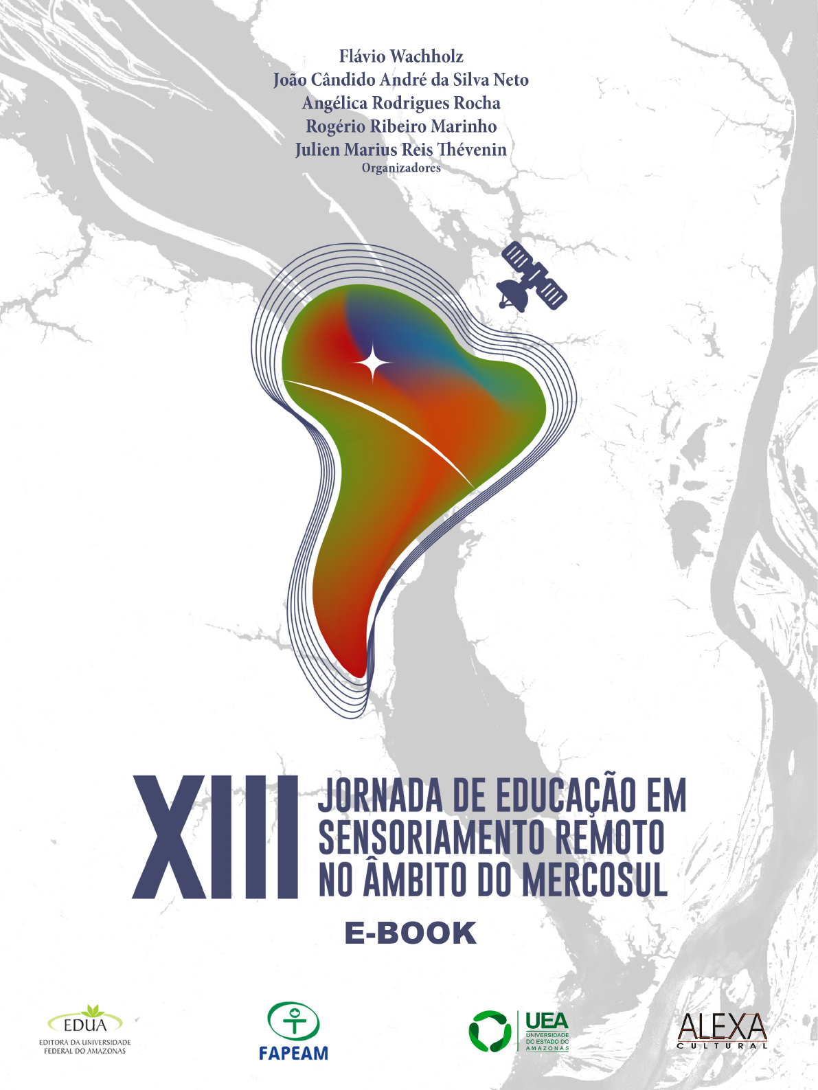 - 1 -XIII JORNADA DE EDUCAÇÃO EM SENSORIAMENTO REMOTO NO ÂMBITO DO MERCOSUL Por um planeta mais conhecido: consolidando as geotecnologias na educação. Manaus, Amazonas/Brasil – 21 a 25 de novembro de 2023. ISBN - 978-85-5467-374-1 - 2 - ISBN - 978-85-5467-374-1 XIII JORNADA DE EDUCAÇÃO EM SENSORIAMENTO REMOTO NO ÂMBITO DO MERCOSUL Por um planeta mais conhecido: consolidando as geotecnologias na educação. Manaus, Amazonas/Brasil – 21 a 25 de novembro de 2023. E-book A presente obra e evento foram financiados por: - 3 -XIII JORNADA DE EDUCAÇÃO EM SENSORIAMENTO REMOTO NO ÂMBITO DO MERCOSUL Por um planeta mais conhecido: consolidando as geotecnologias na educação. Manaus, Amazonas/Brasil – 21 a 25 de novembro de 2023. ISBN - 978-85-5467-374-1 E-book Flávio Wachholz, João Cândido André da Silva Neto, Angélica Rodrigues Rocha, Rogério Ribeiro Marinho, Julien Marius Reis Thévenin Organizadores Embu das Artes - SP 2024 21 A 25 DE NOVEMBRO DE 2023 - 4 - ISBN - 978-85-5467-374-1 XIII JORNADA DE EDUCAÇÃO EM SENSORIAMENTO REMOTO NO ÂMBITO DO MERCOSUL Por um planeta mais conhecido: consolidando as geotecnologias na educação. Manaus, Amazonas/Brasil – 21 a 25 de novembro de 2023. Comitê Científico Alexa Cultural Presidente Yvone Dias Avelino (PUC/SP) Vice-presidente Pedro Paulo Abreu Funari (UNICAMP) Membros Adailton da Silva (UFAM – Benjamin Constant/AM) Alfredo González-Ruibal (Universidade Complutense de Madrid - Espanha) Aldair Oliveira de Andrade (UFAM - Manaus/AM) Ana Paula Nunes Chaves (UDESC – Florianópolis/SC) Arlete Assumpção Monteiro (PUC/SP - São Paulo/SP) Barbara M. Arisi (UNILA – Foz do Iguaçu/PR) Benedicto Anselmo Domingos Vitoriano (Anhanguera – Osasco/SP) Carmen Sylvia de Alvarenga Junqueira (PUC/SP – São Paulo/SP) Claudio Carlan (UNIFAL – Alfenas/MG) Denia Roman Solano (Universidade da Costa Rica - Costa Rica) Débora Cristina Goulart (UNIFESP – Guarulhos/SP) Diana Sandra Tamburini (UNR – Rosário/Santa Fé – Argentina) Edgard de Assis Carvalho (PUC/SP – São Paulo/SP) Estevão Rafael Fernandes (UNIR – Porto Velho/RO) Evandro Luiz Guedin (UFAM – Itaquatiara/AM) Fábia Barbosa Ribeiro (UNILAB – São Francisco do Conde/BA) Fabiano de Souza Gontijo (UFPA – Belém/PA) Gilson Rambelli (UFS – São Cristóvão/SE) Graziele Acçolini (UFGD – Dourados/MS) Iraíldes Caldas Torres (UFAM – Manaus/AM) José Geraldo Costa Grillo (UNIFESP – Guarulhos/SP) Juan Álvaro Echeverri Restrepo (UNAL – Letícia/Amazonas – Colômbia) Júlio Cesar Machado de Paula (UFF – Niterói/RJ) Karel Henricus Langermans (USP/EcA - São paulo/SP) Kelly Ludkiewicz Alves (UFBA – Salvador/BA) Leandro Colling (UFBA – Salvador/BA) Lilian Marta Grisólio (UFG – Catalão/GO) Lucia Helena Vitalli Rangel (PUC/SP – São Paulo/SP) Luciane Soares da Silva (UENF – Campos de Goitacazes/RJ) Mabel M. Fernández (UNLPam – Santa Rosa/La Pampa – Argentina) Marilene Corrêa da Silva Freitas (UFAM – Manaus/AM) María Teresa Boschín (UNLu – Luján/Buenos Aires – Argentina) Marlon Borges Pestana (FURG – Universidade Federal do Rio Grande/RS) Michel Justamand (UNIFESP - Guarulhos/SP) Miguel Angelo Silva de Melo - (UPE - Recife/PE) Odenei de Souza Ribeiro (UFAM – Manaus/AM) Patricia Sposito Mechi (UNILA – Foz do Iguaçu/PR) Paulo Alves Junior (FMU – São Paulo/SP) Raquel dos Santos Funari (UNICAMP – Campinas/SP) Renata Senna Garrafoni (UFPR – Curitiba/PR) Renilda Aparecida Costa (UFAM – Manaus/AM) Roberta Ferreira Coelho de Andrade (UFAM - Manaus/AM) Sebastião Rocha de Sousa (UEA – Tabatinga/AM) Thereza Cristina Cardoso Menezes (UFRRJ – Rio de Janeiro/RJ) Vanderlei Elias Neri (UNICSUL – São Paulo/SP) Vera Lúcia Vieira (PUC – São Paulo/SP) Wanderson Fabio Melo (UFF – Rio das Ostras/RJ) - 5 -XIII JORNADA DE EDUCAÇÃO EM SENSORIAMENTO REMOTO NO ÂMBITO DO MERCOSUL Por um planeta mais conhecido: consolidando as geotecnologias na educação. Manaus, Amazonas/Brasil – 21 a 25 de novembro de 2023. ISBN - 978-85-5467-374-1 UNIVERSIDADE FEDERAL DO AMAZONAS CONSELHO EDITORIAL Presidente Henrique dos Santos Pereira Membros Antônio Carlos Witkoski Domingos Sávio Nunes de Lima Edleno Silva de Moura Elizabeth Ferreira Cartaxo Spartaco Astolfi Filho Valeria Augusta Cerqueira Medeiros Weigel COMITÊ EDITORIAL DA EDUA Louis Marmoz - Université de Versailles Antônio Cattani - UFRGS Alfredo Bosi - USP Arminda Mourão Botelho - Ufam Spartacus Astolfi - Ufam Boaventura Sousa Santos - Universidade de Coimbra Bernard Emery - Université Stendhal-Grenoble 3 Cesar Barreira - UFC Conceição Almeira - UFRN Edgard de Assis Carvalho - PUC/SP Gabriel Conh - USP Gerusa Ferreira - PUC/SP José Vicente Tavares - UFRGS José Paulo Netto - UFRJ Paulo Emílio - FGV/RJ Élide Rugai Bastos - Unicamp Renan Freitas Pinto - Ufam Renato Ortiz - Unicamp Rosa Ester Rossini - USP Renato Tribuzy - Ufam Reitor Sylvio Mário Puga Ferreira Vice-Reitora Therezinha de Jesus Pinto Fraxe Editor Sérgio Augusto Freire de Souza - 6 - ISBN - 978-85-5467-374-1 XIII JORNADA DE EDUCAÇÃO EM SENSORIAMENTO REMOTO NO ÂMBITO DO MERCOSUL Por um planeta mais conhecido: consolidando as geotecnologias na educação. Manaus, Amazonas/Brasil – 21 a 25 de novembro de 2023. Comissão Organizadora Flávio Wachholz (UEA – Manaus/AM) – Coordenação Geral Hilcéa Santos Ferreira (Selper – São José dos Campos/SP) – Vice Coordenadora Rogerio Ribeiro Marinho (UFAM – Manaus/AM) – Coordenação Científica Julien Marius Reis Thevenin (UEA – Manaus/AM) – Coordenação Científica Angélica Rodrigues Rocha (UEA – Manaus/AM) – Site e Divulgação Joselisa Maria Chaves (UEFS – Feira de Santana/BA) – Organização e Premiação Neliane de Sousa Alves (UEA – Manaus/AM) – Trabalho de Campo Francisco Davy Braz Rabelo (UEA – Tefé/AM) – Organização Geral João Candido André da Silva Neto (UFAM – Manaus/AM) – Organização Geral João D’Anuzio Me
