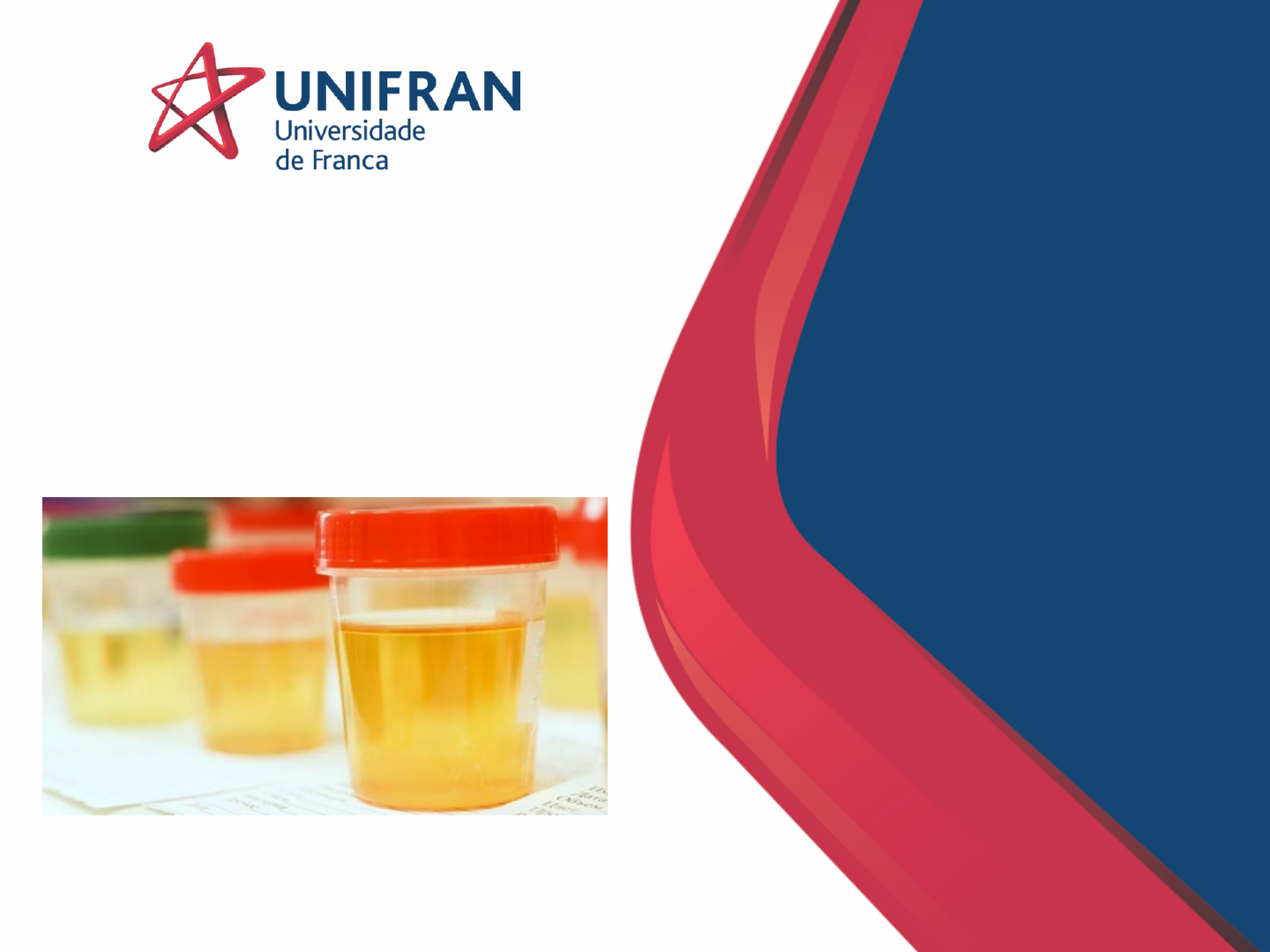 Urinálise Profa. Dra. Cristiane Tavares Importância Urina rotina – exame de urgência. Urinálise Avalia por meios físicos, químicos e microscópicos a urina, com fins de diagnósticos ou prognósticos de estados fisiológicos e patológicos • Diagnóstico e acompanhamento das ITUs; • Detecção de outras patologias (Diabetes), etc; • Controle ou monitoramento de patologias; • Monitoramento da efetividade dos tratamentos. Finalidades do exame de urina rotina Trato Urinário O aparelho urinário tem a função de separar do sangue algumas substâncias e eliminá-las sob a forma de urina, regular o pH sanguíneo, produzir eritropoetina e regular a PA. http://www.google.com.br/url?sa=i&rct=j&q=&esrc=s&frm=1&source=images&cd=&cad=rja&docid=zyc_RddBx1_hfM&tbnid=tCmXpgfGJycCbM:&ved=0CAUQjRw&url=http://amulhereoperineo.wordpress.com/2011/12/11/funcionamento-normal-da-bexiga/&ei=2IHqUsGUBJG2kAeKuYD4Dw&bvm=bv.60444564,d.eW0&psig=AFQjCNGZ9nq_ngkK5eUtgtZCWX7Zr9b-6A&ust=1391183894307437 Trato Urinário 170.000 mL de plasma filtrado são convertido em 1.200 mL de urina final Filtrado 60X por dia. Variações: tamanho corporal hidratação • 2 unidades simétricas; • aspecto de um grão de feijão; • 150 g de peso e mede de 12 X 6 cm; • rim direito mais baixo do que esquerdo; • parte dorsal do abdômem; • tecido conjuntivo; • milhares de néfrons (± 1 milhão). Rins Função: Filtração, Reabsorção, Secreção, Excreção. http://www.google.com/url?sa=i&rct=j&q=&esrc=s&frm=1&source=images&cd=&cad=rja&docid=AvsEpg8Ivdq1jM&tbnid=h0lxSB302ycx0M:&ved=0CAUQjRw&url=http%3A%2F%2Fportaldoprofessor.mec.gov.br%2FfichaTecnicaAula.html%3Fpagina%3Despaco%252Fvisualizar_aula%26aula%3D8770%26secao%3Despaco%26request_locale%3Des&ei=iWDtUo2oD8vrkAe-r4HICA&psig=AFQjCNGOrb-eouQ7sAI8VRo9mUYcqdYfjA&ust=1391374748690834 Rins Vascularização renal – ajuda nos processos de filtração, reabsorção e secreção Rins Néfrons O néfron é formado por dois componentes principais: 1. Corpúsculo Renal: • Cápsula de Bowman (capsula renal); • Glomérulo; 2. Túbulos Renais: • Túbulo contorcido proximal; • Alça do Néfron (de Henle); • Túbulo contorcido distal; • Túbulo coletor. Trato urinário - néfron Sangue percorre: Função: Filtração – parcialmente seletiva (íons) Reabsorção, Secreção, Excreção. Arteríola aferente Glomérulo Arteríola eferente Capilares peritubulares Vasa reta Ultra-filtrado glomerular - UFG (ausência de células) Rins – néfrons (Filtração) Principais fatores que influenciam na filtração glomerular (FG): • pressão hidrostática exercida pelo glomérulo – ajudam no fluxo contínuo do sangue; • Sistema renina-angiotensina-aldosterona (S-RAA); • quando ↑ [Na] ↓ FG – mácula densa sinaliza e ocorre liberação hormonal (aldosterona). Reabsorve sódio http://www.google.com.br/url?sa=i&rct=j&q=&esrc=s&frm=1&source=images&cd=&cad=rja&uact=8&ved=0ahUKEwj7k5zIzYPSAhXCGpAKHSlrAi4QjRwIBw&url=http%3A%2F%2Fmedsimples.com%2Fsistema-renina-angiotensina-aldosterona%2F&psig=AFQjCNGGtVNWjHRaJvygr95wNShGVAzkwA&ust=1486749932371063 Pressão glomerular Pressão hidrostática capilar Pressão oncótica Pressão de Bowmann 80 a 85 mmHg 25 a 30 mmHg 5 a 15 mmHg Força de Starling Responsável pelo movimento do fluído S-RAA (sistema renina-angiotensina-aldosterona) ECA – enzima conversora de angiotensina S-RAA (sistema renina-angiotensina-aldosterona) Renina (enzima produzida pelas células justaglomerulares) é secretada e reage com o produto angiotensinogênio (secretado pelo fígado) produzindo o hormônio angiotensina I, através da enzima conversora ECA (pulmões) fazendo com que ocorra a conversão em angiotensina II. A angiotensina II promove: • a constrição das arteríolas e veias (para manter PA), • estimula a produção de aldosterona pelas glândulas supra-renais. • estimula a reabsorção de sódio e H2O nos túbulos renais, • estimula o hipotálamo a produzir HAD/vasopressina (reabsorção de água e sódio) Rins – S-RAA ↓ PA: ↑ Renina ↑ aldosterona ↑ HAD (vasopressina) - ↑ permeabilidade ↑ reabsorção Na/H2O ↑ PA: ↓renina ↓aldosterona ↓HAD - ↓ permeabilidade ↓retenção Na/H2O Bloqueadores S-RAA ↓ reabsorção Na/H2O ↑ excreção diuréticos http://www.google.com/url?sa=i&rct=j&q=&esrc=s&frm=1&source=images&cd=&cad=rja&docid=Pbvd8ZJ-OthJ7M&tbnid=5mKHh7sLSaOSTM:&ved=0CAUQjRw&url=http%3A%2F%2Fwww.medicinanet.com.br%2Fconteudos%2Facp-medicine%2F5212%2Fabordagem_da_doenca_renal_cronica_%25E2%2580%2593_biff_f_palmer_michael_k_hise.htm&ei=f23tUu3tOobXkQfHtIDYCA&psig=AFQjCNFXHKpiTRuAcRYlrqfWRT9HD54Frg&ust=1391377997709904 Exames laboratoriais para avaliação da função renal TFG (taxa de filtração glomerular) – ritmo de filtração glomerular Clearence de Creatinina Reabsorção renal Reabsorção (túbulo contornado proximal e distal): retorno da água e solutos para o sangue - Transporte ativo – substâncias: glicose, aminoácidos, sódio, potássio, cloreto. - Transporte passivo (osmose) – H2O, uréia http://www.google.com/url?sa=i&rct=j&q=&esrc=s&frm=1&source=images&cd=&cad=rja&docid=SI4WRQhd2DePoM&tbnid=ES8kBT9CvNm3sM:&ved=0CAUQjRw&url=http%3A%2F%2Fwww.ebah.com.br%2Fcontent%2FABAAABDhEAH%2Ffisiologia-sistema-regulador&ei=WWftUri_CoLakQfB64HACg&psig=AFQjCNGtQ7kWC-YY89AjiniaNP8wniuL6w&ust=1391375329156023 No ramo ascendente da alça de Henle não ocorre reabsorção de H2O (paredes impermeáveis à H2O). Secreção renal Secreção tubular: - As substâncias voltam dos capilares para os túbulos para serem rapidamente excretadas (fármacos, toxinas, H e K); - Manter o equilíbrio ácido-básico através da secreção do excesso do íon H e NH4; - Eliminar produtos não filtrados Manter o pH sanguíneo (7,35 a 7,45) Na secreção o excesso de H pode se combinar: • bicarbonato (HCO3) e este ser reabsorvido. Ou se combinar com o íon fosfato (HPO4) ou íon amônio (NH4) e ser excreta