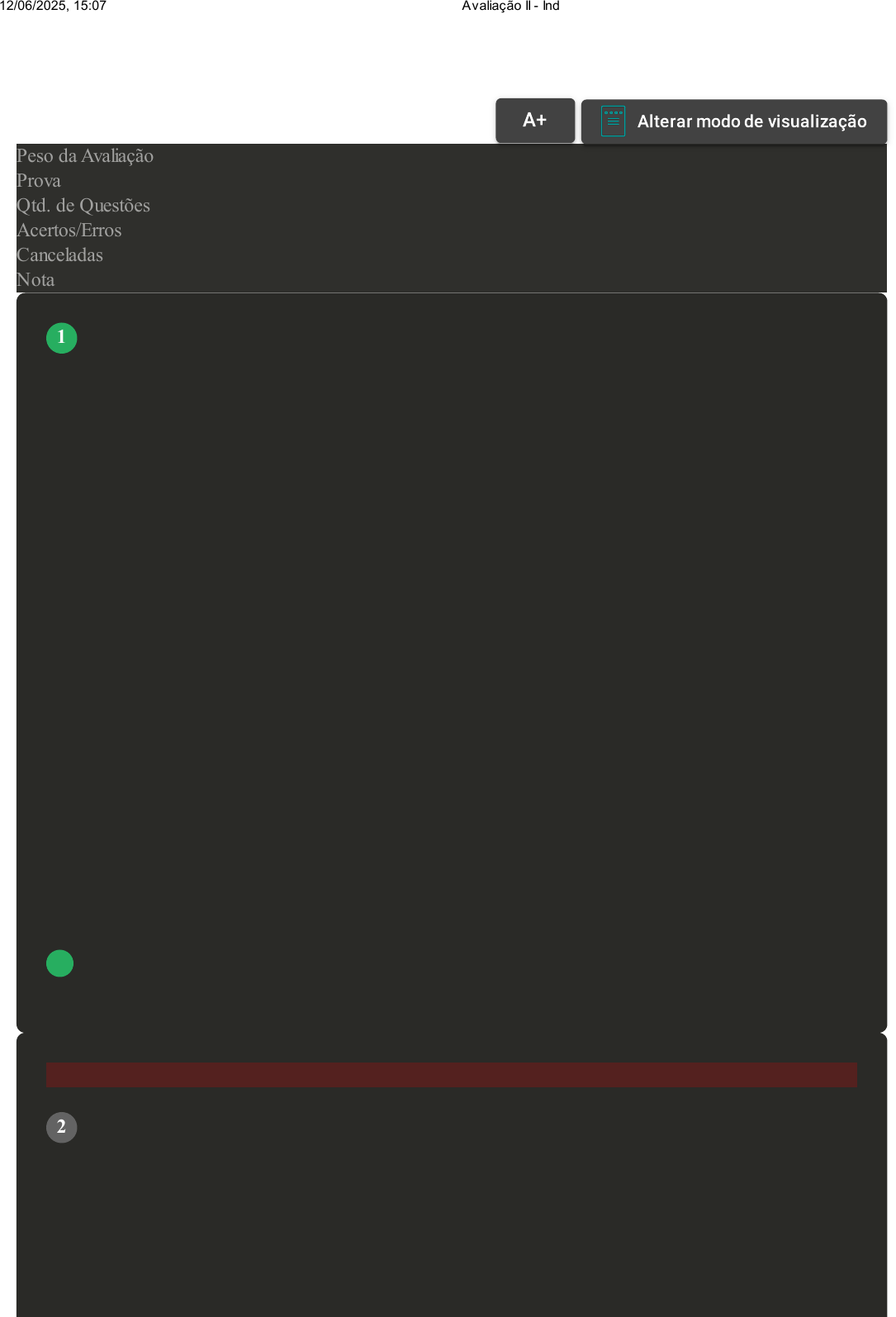 Prova Impressa GABARITO | Avaliação II - Individual (Cod.:1023040) Peso da Avaliação 2,00 Prova 100078346 Qtd. de Questões 10 Acertos/Erros 7/1 Canceladas 2 Nota 9,00 A sinalização tátil é um recurso fundamental para orientar pessoas com deficiência visual em ambientes públicos e privados. Esse tipo de sinalização inclui pisos táteis de alerta e direcional, placas em braille, mapas táteis e outros elementos que permitem que pessoas com deficiência visual se locomovam com segurança e autonomia. Fonte: adaptado de: ASSOCIAÇÃO BRASILEIRA DE NORMAS TÉCNICAS. NBR 9050: Acessibilidade a edificações, mobiliário, espaços e equipamentos urbanos. Rio de Janeiro: ABNT, 2020. Assinale a alternativa que indica a função principal da sinalização tátil em espaços acessíveis: A Indicar a temperatura do ambiente. B Sinalizar locais para descanso. C Orientar pessoas com deficiência auditiva. D Identificar objetos decorativos. E Informar caminhos e obstáculos. Atenção: Esta questão foi cancelada, porém a pontuação foi considerada. A escolha entre órteses e próteses é determinada pela necessidade clínica específica do paciente, considerando fatores como o tipo de lesão, condição de saúde geral e estilo de vida. Esta decisão é crucial para garantir o dispositivo mais adequado, que ofereça o suporte necessário para reabilitação, correção de deformidades ou substituição de membros perdidos, promovendo assim maior funcionalidade e qualidade de vida para o paciente. VOLTAR A+ Alterar modo de visualização 1 2 12/06/2025, 15:07 Avaliação II - Individual about:blank 1/8 Fonte: adaptado de: SMITH, R. T.; MICHAEL, J.; BOWKER, J. H. Órteses e Próteses: Fundamentos da Reabilitação. 3. ed. Rio de Janeiro: Editora Científica, 2004. Considerando o texto e as informações referentes à escolha entre órteses e próteses para pacientes com necessidades clínicas específicas, analise as afirmativas a seguir: I. Órteses são geralmente utilizadas para substituir membros perdidos. II. Próteses são preferíveis em todos os casos de lesão musculoesquelética. III. A escolha entre órteses e próteses não considera o estilo de vida do paciente. IV. A decisão entre órteses e próteses leva em conta a condição de saúde geral do paciente. É correto o que se afirma em: A I, II e III, apenas. B II e IV, apenas. C III e IV, apenas. D III, apenas. E I, II, III e IV. Atenção: Esta questão foi cancelada, porém a pontuação foi considerada. A escolha entre órteses e próteses depende da necessidade clínica específica do paciente, levando em consideração fatores como o tipo de lesão, condição de saúde geral e estilo de vida. Essa decisão é crucial para garantir que o dispositivo escolhido atenda às necessidades terapêuticas e funcionais do paciente de maneira eficaz e confortável. Fonte: adaptado de: SMITH, R. T.; MICHAEL, J.; BOWKER, J. H. Órteses e Próteses: Fundamentos da Reabilitação. 3. ed. Rio de Janeiro: Editora Científica, 2004. Com base nas informações apresentadas, avalie as asserções a seguir e a relação proposta entre elas: I. Órteses são dispositivos usados para corrigir ou apoiar deficiências, enquanto próteses substituem partes do corpo perdidas. 3 12/06/2025, 15:07 Avaliação II - Individual about:blank 2/8 PORQUE II. A escolha entre órteses e próteses considera apenas a preferência estética do paciente. A respeito dessas asserções, assinale a opção correta: A A asserção I é uma proposição falsa e a II é uma proposição verdadeira. B As asserções I e II são falsas. C A asserção I é uma proposição verdadeira e a II é uma proposição falsa. D As asserções I e II são verdadeiras, e a II é uma justificativa correta da I. E As asserções I e II são verdadeiras, mas a II não é uma justificativa correta da I. A tecnologia assistiva desempenha um papel fundamental na promoção da autonomia e na melhoria da qualidade de vida de pessoas com deficiência, proporcionando recursos e dispositivos adaptados às suas necessidades específicas. Fonte: adaptado de: ASSISTIVA TECNOLOGIA. Tecnologia Assistiva e Acessibilidade: conceitos e aplicações. Disponível em: http://www.assistivatecnologia.com.br/conceitos-e-aplicacoes. Acesso em: 14 jan. 2025. Considerando as informações apresentadas sobre tecnologia assistiva, analise as afirmativas a seguir: I. A tecnologia assistiva refere-se apenas a dispositivos eletrônicos de alta tecnologia. II. A tecnologia assistiva inclui apenas adaptações físicas no ambiente para facilitar o acesso. III. A tecnologia assistiva pode ser utilizada para promover a inclusão digital de pessoas com deficiência. Revisar Conteúdo do Livro 4 12/06/2025, 15:07 Avaliação II - Individual about:blank 3/8 IV. O principal objetivo da tecnologia assistiva é compensar as limitações funcionais das pessoas com deficiência. É correto o que se afirma em: A I, II e III, apenas. B I e IV, apenas. C II e III, apenas. D II, III e IV, apenas. E III e IV, apenas. Desde a vida cotidiana até o ambiente profissional, as tecnologias assistivas são recursos indispensáveis para promover a inclusão e a participação de pessoas com deficiência. Assinale a alternativa que aponta qual é o objetivo principal das tecnologias assistivas na terapia ocupacional: A Incentivar a prática esportiva. B Facilitar o transporte público. C Promover a acessibilidade digital. D Oferecer entretenimento. E Aumentar a produtividade industrial. 5 Revisar Conteúdo do Livro 12/06/2025, 15:07 Avaliação II - Individual about:blank 4/8 Rampas de acesso são estruturas importantes em projetos arquitetônicos inclusivos, permitindo que pessoas com mobilidade reduzida possam transitar com segurança. Essas rampas são projetadas para garantir que cadeirantes, pessoas com dificuldades de locomoção, idosos, e até mesmo pais com carrinhos de bebê possam acessar diferentes níveis de um edifício o