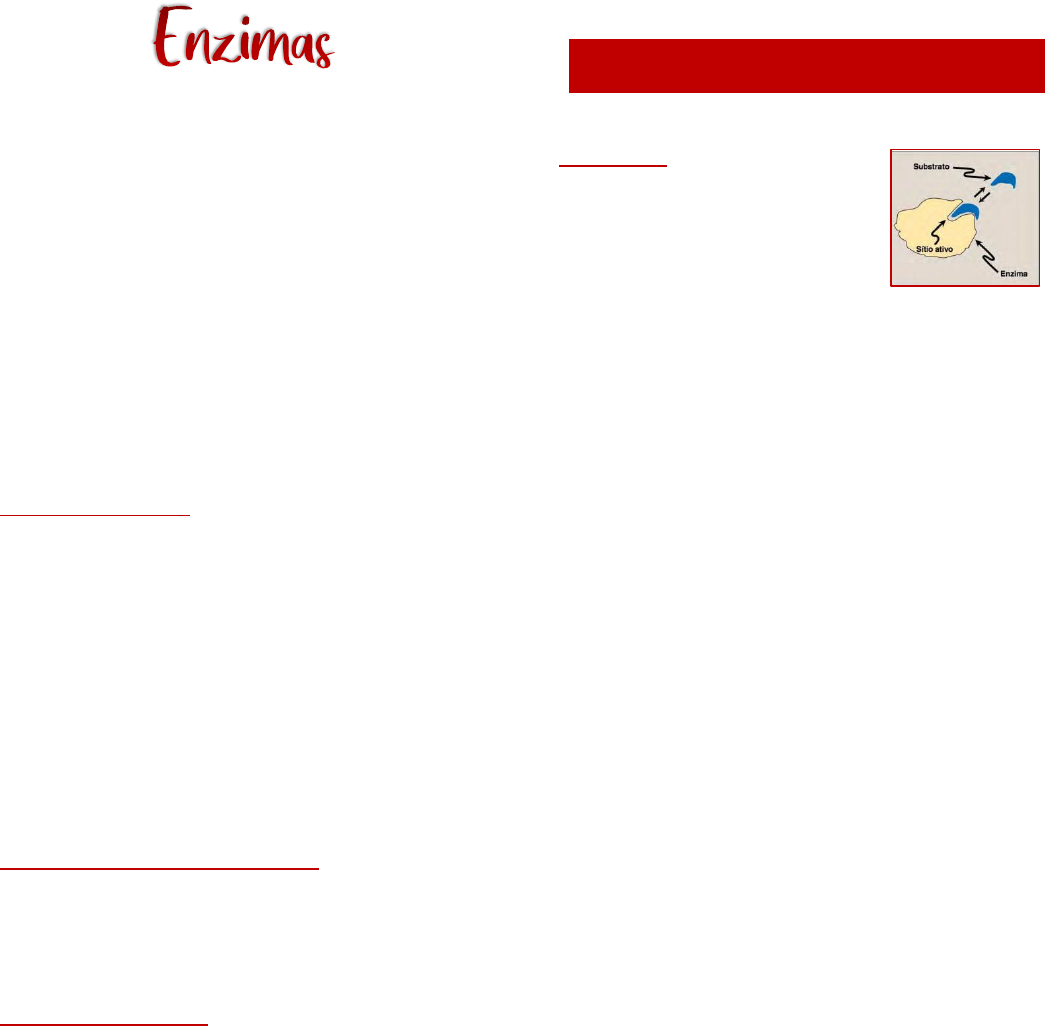 LORRANE BRAGA RANGEL LXIX - UFG ➢ Propriedades catalíticas: são fortemente capazes de simular as condições ambientais favoráveis à ocorrência de determinada reação química. ➢ Participam da reação sem alteração no final ➢ Não alteram o equilíbrio de reação ➢ Reduzam a energia de ativação ➢ Alteram a velocidade da reação ➢ A atividade depende da estrutura proteína ➢ Alguns RNA podem atuar como enzimas, geralmente catalisado a quebra e a síntese de ligações fosfodiéstier ➢ As enzimas conseguem fazer as reações em condições menos exigentes do que alguns catalisadores químicos As enzimas precisam ✓ Ser maior que seu substrato ✓ Ser capaz de se mover no meio ✓ Ter resistência no meio onde atua Nomenclatura Cada enzima recebe dois nomes. O primeiro é o nome curto e recomendado, conveniente para uso corriqueiro. O segundo é o nome mais completo e sistemático, utilizado quando a enzima precisa ser identificada sem ambiguidades. Sufixo -ase O que afeta a eficiência da enzima? ➢ A ligação química ➢ Ph ➢ Temperatura ➢ Presença de inibidores Categorias enzimáticas ➢ Oxidorredutases: tranferência de elétrons ➢ Transferases: reações de transferência de grupos ➢ Hidrolases: reações de hidrólise (transferência de grupos funcionais para a água). ➢ Liases: Clivagem de C¬C, C¬O, C¬N ou outras ligações por eliminação, rompimento de ligações duplas ou anéis, ou adição de grupos a ligações duplas. ➢ Isomerases: transferência de grupos dentro de uma mesma molécula produzindo formas isoméricas. ➢ Ligases: Formação de ligações C¬C, C¬S, C¬O e C¬N por reações de condensação acopladas à hidrólise de ATP ou cofatores similares. Sítios ativos Esses sítios contêm cadeias laterais de aminoácidos que participam da ligação com o substrato e da catálise. Os substratos se ligam à enzima formando um complexo enzima-substrato (ES), através de interações. Alteração conformacional → catálise ES → enzima – produto (EP) Contém grupos catalíticos que favorecem a formação do estado de transição Eficiência catalítica: as reações ocorrem muito mais rápido Especificidade: As enzimas são altamente específicas Holoenzimas: enzima com o seu componente não proteico • Algumas enzimas precisam de outras moléculas além da proteína para ter sua atividade enzimática Apoenzimas: sem o componente proteico e é inativa • Se o componente for um íon, ele é chamado de cofator • Se for uma molécula orgânica é chamada de coenzima Cossubstratos – transitoriamente associada Grupos prostético – permanente Regulação: enzimas podem ser ativadas ou inibidas, de acordo com a necessidade • Muitas enzimas estão localizadas em organelas específicas dentro da célula. Essa compartimentalização serve para isolar o substrato ou o produto da reação de outras reações competitivas. Isso garante um meio favorável para a reação e organiza as milhares de enzimas presentes na célula em vias definidas. Propriedades das enzimas LORRANE BRAGA RANGEL LXIX - UFG As enzimas proporcionam um ambiente específico adequado para que uma dada reação possa ocorrer adequadamente. As reações ocorrem em um bolsão de enzimas → sítio ativo. 1. As enzimas fornecem uma rota alternativa mais energeticamente favorável 2. Como o sítio ativo facilita quimicamente a catálise • Alterações de energia que ocorrem durante a reação Barreira de energia = energia livre de ativação • Na ausência de uma enzima, somente uma pequena proporção da população de moléculas possui energia suficiente para atingir o estado de transição entre reatante e produto. • O estado de transição é um momento molecular transitório em que eventos como a quebra de ligação, a formação de ligação ou o desenvolvimento de carga ocorrem com a mesma probabilidade de seguirem tanto para formar novamente o substrato como para formar o produto. Etapa limitante da reação → aquela que possui maior energia de ativação A enzima não altera o equilíbrio (CADU → a reatividade do substrato depende apenas da natureza dele. A enzima não interfere nisso) O equilíbrio entre S e P reflete a diferença entre as energias livres dos seus estados fundamentais. No exemplo mostrado na Figura , a energia livre do estado fundamental de P é menor do que a de S, e então G° para a reação é negativa (reação exergônica) e o equilíbrio favorece mais P que S. A posição e a direção do equilíbrio não são afetadas pelos catalisadores. • O equilíbrio é determinado pela energia livre. Um grande valor negativo de Delta G° reflete um equilíbrio de reação favorável, mas, como foi observado, isso não significa que a reação ocorrerá com velocidade alta. • A enzima não altera a energia livre dos reatantes ou dos produtos, assim, ela não altera o equilíbrio da reação. Ele só acelera a velocidade na qual o equilíbrio é atingido. • A velocidade da reação é influenciada pela concentração do reagente e por uma constate de velocidade. Quanto menor a energia de ativação mais rápida é a velocidade Como é que esse enorme e altamente seletivo aumento de velocidade pode ser explicado? Qual é a fonte de energia para essa grande diminuição nas energias de ativação de reações específicas? ➢ Rearranjo de ligações covalentes durante a reação catalisada pela enzima. (CADU → ocorre interferência na disposição da nuvem eletrônica e consegue realizar choques efetivos mais rapidamente, promovendo o contato físico do substrato com o sítio (fragilização e desestabilização do substrato, podendo se romper e gerar produto) Muitas reações ocorrem entre os substratos e grupos da enzima. Ligações transitórias podem ser formadas para ativar o substrato ou grupos podem ser transferidos para a enzima. Essas interações diminuem a energia de ativação ➢ Interações não covale