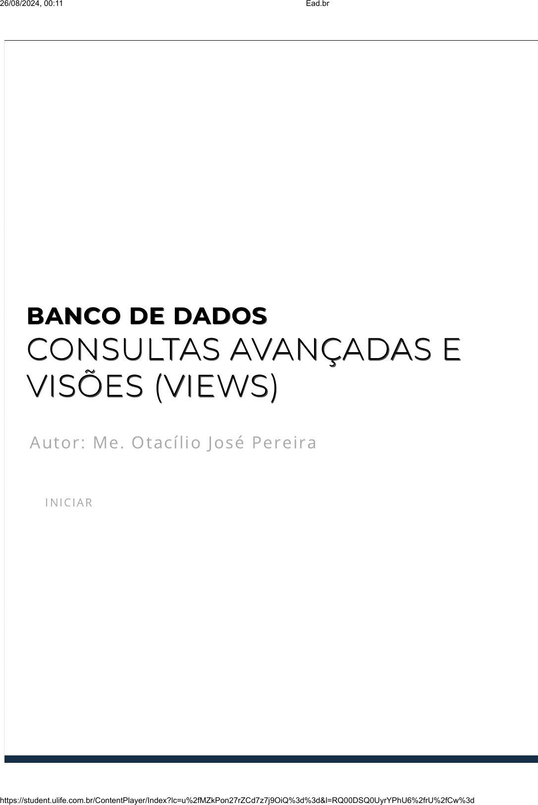 BANCO DE DADOSBANCO DE DADOS CONSULTAS AVANÇADAS ECONSULTAS AVANÇADAS E VISÕES (VIEWS)VISÕES (VIEWS) Autor: Me. Otacíl io José Pereira IN IC IAR 26/08/2024, 00:11 Ead.br https://student.ulife.com.br/ContentPlayer/Index?lc=u%2fMZkPon27rZCd7z7j9OiQ%3d%3d&l=RQ00DSQ0UyrYPhU6%2frU%2fCw%3d%3d&cd… 1/33 introdução Introdução Quando estamos estudando banco de dados, ao iniciar com consultas exploramos os recursos do comando SELECT para os primeiros resultados que em geral já são interessantes. Esta unidade visa evoluir a construção de consultas com recursos mais avançados associados a este comando de SELECT. Serão vistos tópicos como junções, comandos para ordenação e agrupamento dos dados, uso de funções de agregação como somatórios e contabilizações e por �m como criar visões (views) para tornar mais fácil e prático a manipulação de consultas. Todos estes recursos são bem úteis em tarefas cotidianas de produzir relatórios e atender demandas de usuários que precisam extrair informação e conhecimento mais apurado a partir do banco de dados. Vamos em frente! 26/08/2024, 00:11 Ead.br https://student.ulife.com.br/ContentPlayer/Index?lc=u%2fMZkPon27rZCd7z7j9OiQ%3d%3d&l=RQ00DSQ0UyrYPhU6%2frU%2fCw%3d%3d&cd… 2/33 Em um primeiro momento no aprendizado com comandos de DML como o SELECT o foco é selecionar os dados de uma tabela, por exemplo, quais os clientes do sexo feminino, entretanto é mais comum precisarmos de dados que estão presentes em diversas tabelas. Se a estruturação dos dados divide cada registro em sua respectiva tabela, Clientes, Compras, Cidades, Produtos, ao recuperar estes dados é preciso de alguma forma para juntá-los. Vamos analisar um exemplo que envolve uma loja virtual, com seus dados de clientes, cidades e de compras. Parte do modelo está exposto a seguir na Figura 4.1. Imagine que haja a necessidade de saber quais clientes (Nome e Contato) com suas respectivas Cidades (Dcr_Cidade) e que realizaram compras no mês de abril (campo Data_Compra em Compras), talvez para fazer um contato e saber se o cliente está satisfeito com a compra. Perceba que Nome e Contato estão na tabela Cliente, a descrição da cidade está em Cidade e Data e Valor estão na tabela de Compras. Fica então a questão, como colocar estes dados juntos? JunçõesJunções 26/08/2024, 00:11 Ead.br https://student.ulife.com.br/ContentPlayer/Index?lc=u%2fMZkPon27rZCd7z7j9OiQ%3d%3d&l=RQ00DSQ0UyrYPhU6%2frU%2fCw%3d%3d&cd… 3/33 Um primeiro raciocínio é partirmos da ideia da chave estrangeira, ao estudar sobre a modelagem dos dados elas surgem como forma de representar os relacionamentos entre entidades (no Modelo de Entidade e Relacionamento) e tabelas (no Modelo Relacional), servem como elo entre as duas tabelas em que há um relacionamento 1:N por exemplo. Portanto, as chaves estrangeiras desempenham um papel chave para fazer as junções dos dados. Primeiro exemplo de junção (Inner Join) Para compreender melhor este uso das chaves estrangeiras, vamos para um exemplo. Observe a Figura 4.2, do lado esquerdo temos um conjunto de resultados provenientes da tabela Cliente. À direita encontram-se as cidades cadastradas na tabela Cidade. Como transformar, na linha com nome ‘Adriana Araújo’, o valor de código da cidade 1 na descrição da Cidade ‘Salvador’? É necessário um mecanismo que faça com que a chave estrangeira 1 seja consultada (via junção) na tabela de cidade. Aproveite esta lista de clientes para perceber que existem valores que não possuem a cidade associada (valores NULL), no caso os clientes ‘Rodrigo Vieira’ e ‘Fabiana Moreira’, eles não devem conseguir participar da junção pois não terão valores correspondentes na outra tabela. Figura 4.1 - Parte de modelo de exemplo do cenário de Loja Virtual Fonte: Elaborado pelo autor (2019). 26/08/2024, 00:11 Ead.br https://student.ulife.com.br/ContentPlayer/Index?lc=u%2fMZkPon27rZCd7z7j9OiQ%3d%3d&l=RQ00DSQ0UyrYPhU6%2frU%2fCw%3d%3d&cd… 4/33 O mecanismo para resolver esta necessidade é a junção entre tabelas, e um primeiro tipo é a junção interna ou “inner join” cuja sentença está escrita no Quadro 4.1. A ideia é para cada código de cidade em Cliente buscar na tabela de Cidade a linha que contém o mesmo código, isto é, o campo Cod_Cidade serve como elo entre as duas tabelas. O resultado deste comando de junção pode ser visualizado a seguir na Figura 4.3, compare com as tabelas Cliente e Cidade dissociadas da Figura 4.2, cada registro tem agora a descrição da cidade equivalente ao código que foi usado na junção. O registro de ‘Adriana Araújo’ com código de cidade 3, foi associado ou juntado com a descrição ‘Salvador’ vinda da tabela de Cidade. Perceba também que apenas 8 linhas foram recuperadas e existem 10 clientes, o que ocorre é que os clientes sem valores no campo cidade (NULL) não conseguem fazer a junção. Figura 4.2 - Exemplo de duas tabelas dissociadas Fonte: Elaborado pelo autor (2019). Quadro 4.1 - Exemplo de Inner Join Fonte: Elaborado pelo autor. 26/08/2024, 00:11 Ead.br https://student.ulife.com.br/ContentPlayer/Index?lc=u%2fMZkPon27rZCd7z7j9OiQ%3d%3d&l=RQ00DSQ0UyrYPhU6%2frU%2fCw%3d%3d&cd… 5/33 A sintaxe do comando para junção está mostrada a seguir conforme descrito em (PUGA, 2013, p226). Os termos em ‘[‘ indicam que apresentam opções ou podem ser suprimidos. Perceba que na sintaxe não foi explicitado a palavra chave ‘INNER’, em alguns casos ela é considerada como padrão ao fazer a junção. Tipos de Junções Nosso primeiro caso de junção visto anteriormente é denominada de junção interna (inner join) e no caso os campos usados para fazer a junção precisam ter valores nas duas tabelas para que a junção ocorra. Existem outros tipos de junções, por exemplo as junções externas em que não necessariamente devem existir valores correspondente nas duas tabelas. Para compreender esta questão, vamos reco