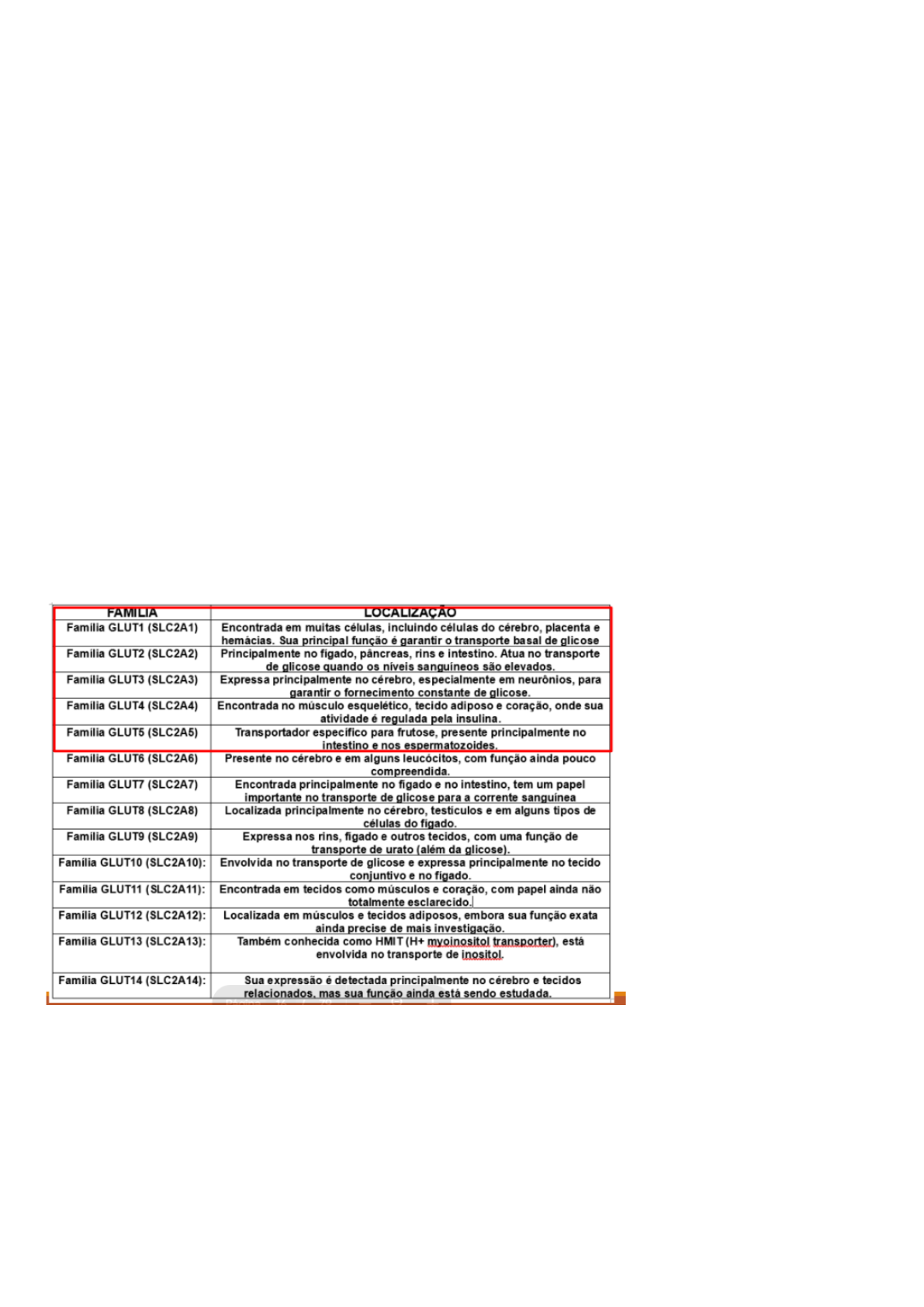 Monitoria Fisiologia T5- 22/04/2025 Monitora: Larissa Resende Oliveira RA: 12326268 Professor: Carlos Alberto Silva Controle glicêmico Glicose → sangue as células captam substratos para metabolização Exemplo: a captação da glicose ocorre via transportadores de glicose (GLUT) Glicose e Transportadores GLUT -A glicose entra nas células através de “portas” chamadas GLUTs (transportadores de glicose). -Quando o corpo precisa de mais energia (como durante exercícios), ele aumenta a quantidade dessas portas (isso se chama upregulation). -Quando tem açúcar demais no sangue por muito tempo, o corpo pode diminuir essas portas (downregulation) como forma de proteção. E os Gluts tem sua especifidade. No epitélio intestinal: transportadores de glicose, frutose, proteínas. Três tipos principais de transportadores de aminoácidos nas células: - transporte ativo: dependentes de sódio, tem gasto energético, contra o gradiente de concentração. Ex: bomba de sódio e potássio. Joga sódio pra fora da célula e potássio para dentro. - difusão facilitada: independentes de sódio, são substâncias com carga que utilizam ajuda de proteínas pra entrar (glicose- GLUT) menor concentração → maior concentração - transportadores de peptídeos (PEPT1) Pâncreas tem duas funções: →Exócrina: libera enzimas digestivas. •AMILASE: Digestão de carboidratos, ex. amido •LIPASE: Digestão de gorduras •QUIMOTRIPSINOGÊNIO: Forma a quimotripsina, que digere proteínas •NUCLEASES: Digestão de ácidos nucleicos →Endócrina: controla o açúcar no sangue através das ilhotas pancreáticas, que têm: - Células beta: produzem insulina (baixa o açúcar). - Células alfa: produzem glucagon (aumenta o açúcar). - Células delta (D): somatostatina - Células PP (F): secreta um polipeptídeo pancreático Quando comemos e o nível de açúcar sobe, as células beta liberam insulina. A insulina ajuda a glicose a entrar nas células, especialmente nos músculos e fígado. Isso ajuda a armazenar energia e reduzir o açúcar no sangue. OBS! Como o pâncreas “sente” a glicose aumentando? A glicose entra na célula beta pelo GLUT2, é quebrada e vira ATP, os canais de potássio K+ dependentes de ATP (K_ATP). O aumento do ATP fecha esses canais impedindo o potássio de sair, a célula fica despolarizada (mais positiva por dentro). A despolarização abre canais de cálcio (Ca²⁺). O cálcio entra na célula estimula a liberação de insulina que está armazenada em vesículas dentro da célula. Medicamentos: Remédios como glibenclamida, glimepirida e outros estimulam as células beta a liberar mais insulina. Atuam fechando canais de potássio, o que gera uma “corrente elétrica” que ativa os canais de cálcio — e isso leva à liberação de insulina. A insulina se conecta a um receptor na membrana da célula. Isso ativa várias “cascatas” dentro da célula que aumentam o uso e o armazenamento de glicose, estimulam a síntese de proteínas e gorduras, reduzem a quebra de proteínas e gorduras. FUNÇÕES DA INSULINA 1. AUMENTA A CAPTAÇÃO DE GLICOSE A insulina é como uma “chave” que abre a porta da célula para a glicose entrar. ➡ Quando a insulina se liga à célula, ela faz os transportadores GLUT4 irem até a membrana e puxarem a glicose do sangue pra dentro da célula. 2. AUMENTA A FORMAÇÃO DE RESERVAS DE GLICOGÊNIO- gliconeogênese Depois que a glicose entra, a insulina ajuda a guardar o excesso como glicogênio, que é uma forma de “estoque de açúcar” no fígado e nos músculos. 3. AUMENTA A GERAÇÃO DE ENERGIA - ATP Com a glicose dentro da célula, ela é quebrada e vira energia (ATP). ➡ A insulina facilita esse processo ajudando a glicose a entrar e ser usada para produzir energia. 4. AUMENTA A FORMAÇÃO DE TRIGLICERÍDEOS Se tiver glicose demais, o corpo entende que é hora de armazenar energia em forma de gordura (triglicerídeos). ➡ A insulina ativa enzimas que transformam a glicose em gordura para ser guardada no tecido adiposo (gordura do corpo). 5. AUMENTA A CAPTAÇÃO DE AMINOÁCIDOS A insulina também faz com que as células puxem mais aminoácidos do sangue. ➡ Isso é importante para crescimento muscular e reparo dos tecidos. 6. AUMENTA A SÍNTESE PROTEICA Com mais aminoácidos dentro da célula, a insulina ativa o sistema que constrói proteínas novas. ➡ Isso ajuda no crescimento, na regeneração e no fortalecimento dos músculos e outros tecidos. GLUCAGON Baixo nível de glicose no sangue (hipoglicemia) ex :Quando você está em jejum, dorme, ou fica muito tempo sem comer As células beta diminuem a liberação de insulina, e isso remove o “freio” sobre as células alfa, que então começam a liberar glucagon. As células alfa sentem a falta de glicose e recebem sinais (como menos ATP). Glicose baixa → Pouco ATP → Canais K_ATP ficam abertos parcialmente, mas outros canais iônicos entram em jogo. Nessa situação, a célula alfa pode ficar em um estado de oscilação elétrica que permite a entrada de cálcio, mesmo com menos ATP. Essa entrada de cálcio desencadeia a liberação de glucagon. →vai pra corrente sanguínea, fígado é o principal alvo. Efeitos no fígado (hepáticos): O glucagon ativa receptores específicos (acoplados à proteína G) e gera efeitos como: Glicogenólise: Quebra do glicogênio (reserva de glicose) em moléculas de glicose que vão para o sangue. Gliconeogênese:Produção de glicose nova a partir de aminoácidos, lactato e glicerol. Lipólise (indiretamente): Estimula a quebra de gordura para gerar energia. Assim, a glicose no sangue aumenta, energia é mantida em períodos de jejum. Quando a glicose sobe de novo, a secreção de glucagon diminui, e o corpo entra em equilíbrio novamente. QUESTÕES 1. Qual dos transportadores de glicose está presente nas células beta pancreáticas e é essencial para o reconhecimento da glicose? A) GLUT1 B) GLUT2 C) GLUT3 D) GLUT4 2. A insulina é pro
