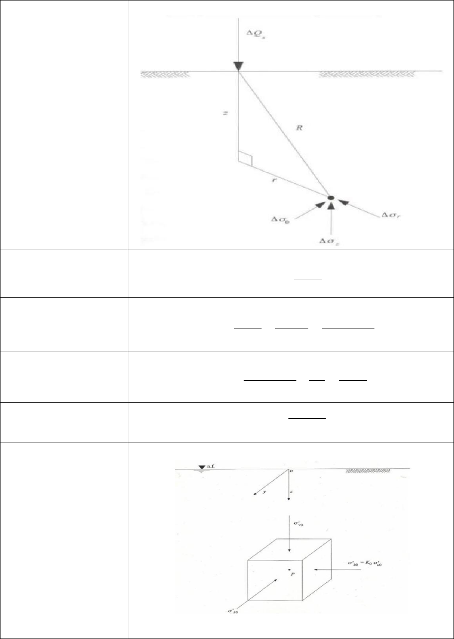 Tensões Induzidas Fórmulas para o Problema de Boussinesq: Tensão Vertical ∆𝜎𝑧 = 3𝑄𝑍3 2𝜋𝑅5 Tensão Radial ∆𝜎𝑟 = 𝑄 2𝜋𝑅2 . ( −3𝑟2𝑧 𝑅3 + (1 − 2𝑣)𝑅 𝑅 + 𝑧 ) Tensão Tangencial ∆𝜎𝜃 = 𝑄(1 − 2𝑣) 2𝜋𝑅2 . ( 𝑧 𝑅 − 𝑅 𝑅 + 𝑧 ) Distância entre r e z 𝑅 = √𝑟2 + 𝑧2 Tensões em Repouso: Tensão vertical (𝜎 ) 𝜎𝑣 = 𝛾. 𝑧 Pressão neutra (𝑢 ) 𝑢 = 𝛾𝑤 . 𝑧 Tensão vertical efetiva (𝜎´ ) 𝜎´ = 𝜎𝑣 − 𝑢 Coeficiente de impulso (𝐾0) 𝐾0 = 𝜎ℎ 𝜎𝑣 Tensão horizontal 𝜎ℎ = 𝜎ℎ´ + 𝑢 Tensão horizontal efetiva 𝜎ℎ´ = 𝐾0. 𝜎𝑣 Fórmulas do problema de Flemant Faixa de Comprimento Infinito Carregada Uniformemente Pressão Uniforme Aplicada numa Área Circular Pressão Uniforme Aplicada numa Área Rectangular Assentamento Assentamento (∆ℎ ) ∆ℎ = 𝑞. 𝐵(1 − 𝑣2) 𝐸 . 𝐼𝑠 Pressão Aplicada (𝑞0) 𝑞0 = 𝑁 𝐵. 𝐿 Factor de influência - Forma retangular (𝐼𝑠) 𝐼𝑠 = 𝐿 𝐵 Percolação Unidimensional Cota Piezométrica (𝐻𝑝) 𝐻𝑝 = 𝑍𝑝 + ℎ𝑤 𝑝 Gradiente Hidraúlico(i) 𝑖 = ∆ℎ 𝑙 Caudal Percolado(𝑄 ) 𝑄 = 𝑣. 𝑆 Ou 𝑄 = 𝐾. 𝐿. 𝐴 ou 𝑄 = 𝐾.∆ℎ.𝐴 𝑙 Velocidade Real (𝑉𝑟𝑒𝑎𝑙) 𝑉𝑟𝑒𝑎𝑙 = 𝑣 𝑛 Tensão num Maciço Terroso em Equilíbrio Estático Tensão num Maciço Terroso com Percolação Ascendente Tensão num Maciço Terroso com Percolação Descendente Força de Percolação (𝐽 ) 𝐽 = 𝑖. 𝛾𝑤 Coeficiente de Permeabilidade Coeficiente de Permeabilidade (escoamento não confinado) Coeficiente de Permeabilidade (escoamento não confinado) Permeâmetro de Carga Variável Gradiente Hidraúlico Crítico (𝑖𝑐𝑟í𝑡𝑖𝑐𝑜) 𝑖𝑐𝑟í𝑡𝑖𝑐𝑜 = 𝛾´ 𝛾𝑤 Gradiente Hidraúlico Máximo (𝑖𝑚𝑎𝑥) 𝑖𝑚𝑎𝑥 = ∆ℎ 𝑙 Factor de Segurança (𝐹𝑠 ) 𝐹𝑠 = 𝑖𝑐𝑟í𝑡𝑖𝑐𝑜 𝑖𝑚𝑎𝑥 K equivalente= 𝐾.𝐴 𝐴 Média ponderada= 𝐾𝑒𝑞 = 𝐾𝐴.𝐴𝐴+𝐾𝐵.𝐴𝐵 𝐴𝐴+𝐴𝐵 Percolação Bidimensional