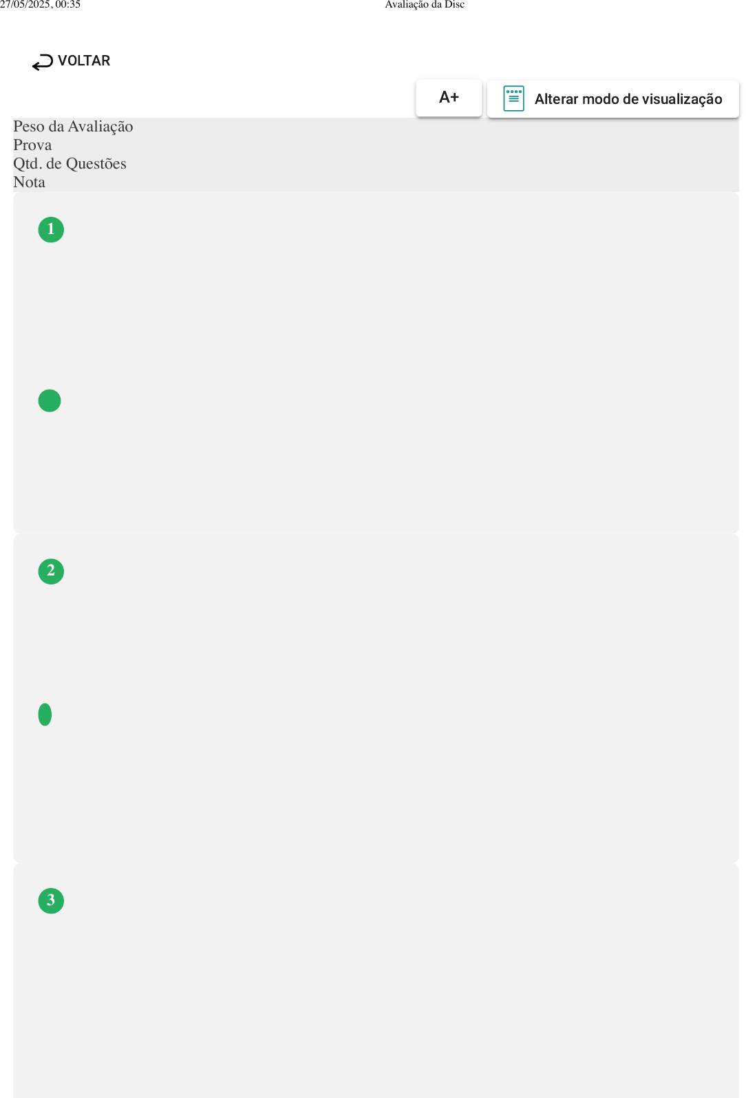 Prova Impressa GABARITO | Avaliação da Disciplina (Cod.:744689) Peso da Avaliação 10,00 Prova 101202025 Qtd. de Questões 20 Nota 8,00 É importante destacar a importância do ensino das estratégias de leitura a fim de formar leitores autônomos e proficientes. Sendo assim, algumas ações são fundamentais para que esse ensino aconteça. FONTE: SOLÉ, I. Estratégias de Leitura. 6.ed. Porto Alegre: Artmed, 1998. Sobre estas ações, segundo Solé (1998), assinale a alternativa CORRETA: A Fichas de leitura e cópias de texto. B Seleção do material a ser utilizado e organização da sala de aula. C Diversos textos colados na sala de aula. D Organização da sala de aula e cópias de texto. Existem diversas formas de organização da rotina didática na sala de aula que irão contribuir para o bom andamento das aprendizagens dos estudantes em sala. Sobre as atividades sequenciais, assinale a alternativa CORRETA: A São aquelas que os professores realizam de modo descontínuo, sem haver articulação com outras atividades de sala de aula. B São formas que os professores têm adotado pra articular diferentes partes de uma aula ou de aulas seguidas para que não haja rupturas bruscas entre uma atividade e outra. C É mais uma forma de organizar as atividades de memorização do texto escrito, pois cada dia os alunos vão ter que memorizar uma parte do texto até finalizar com toda a memorização. D É um conjunto de atividades escolares organizadas, de maneira sistemática, em torno de um gênero oral. Três métodos de alfabetização ganharam destaque ao longo dos anos no Brasil. Alguns até hoje são utilizados por muitos professores no ambiente escolar. Um deles é chamado de sintético. Sobre os métodos sintéticos, assinale a alternativa CORRETA: A Os métodos sintéticos defendem o desenvolvimento da oralidade para só então iniciar a escrita. B Os métodos sintéticos partem do todo para as partes e defendem a cópia como princípio básico. VOLTAR A+ Alterar modo de visualização 1 2 3 27/05/2025, 00:35 Avaliação da Disciplina about:blank 1/7 C Os métodos sintéticos defendem que as crianças devem ter primeiro contato com o texto para só então conhecer as letras. D Partem das unidades menores (letras, fonemas ou sílabas) para só então passar a analisar unidades maiores (palavras, frases, textos). Diversas são as situações de comunicação que necessitam da mediação pela escrita na escola. A escola deve ser um espaço de promoção dessa apropriação da escrita por parte dos estudantes. Uma das formas de organização da sala para essa apropriação é organizar um ambiente alfabetizador. Sobre o ambiente alfabetizador, assinale a alternativa CORRETA: A Uma sala com diversos textos de diferentes gêneros textuais colados na parede para que as crianças conheçam. B São momentos em que as crianças copiam textos de diferentes gêneros textuais. C É quando se promove situações de usos reais de leitura e escrita nas quais as crianças têm a oportunidade de participar. D São as atividades que geralmente o professor realizava fora da sala e na ausência das crianças, como preparar convites para as reuniões de pais, escrever uma carta para uma criança que está se ausentando. No planejamento, o professor utiliza de vários recursos e atividades de forma articulada em suas aulas para que todos os seus objetivos sejam atendidos. Entre elas, temos as atividades permanentes. Sobre as atividades permanentes, assinale a alternativa CORRETA: A São atividades que são organizadas, de maneira sistemática, em torno de um gênero textual. B São intervenções pedagógicas organizadas de forma que há uma repetição de procedimentos num intervalo curto de tempo. C São atividades que realizamos esporadicamente para trabalhar algum tema em sala de aula. D São atividades de organização para que sejam entregues à gestão escolar. Ferreiro (1993) traz uma nova perspectiva sobre a apropriação das crianças da escrita. O processo para compreensão da construção da escrita alfabética, caracterizada por Ferreiro (1993), é definida em estágios. FONTE: FERREIRO, Emilia. Com Todas as Letras. São Paulo: Cortez, 1993. Sobre os nomes definidos por Ferreiro (2001) para os estágios da escrita alfabética, assinale a alternativa CORRETA: A Silábico e Alfabético B Sintético, Analítico e Analítico-sintético. 4 5 6 27/05/2025, 00:35 Avaliação da Disciplina about:blank 2/7 C Analítico, Silábico e Alfabético. D Pré-silábico, Silábico, Silábico-alfabético e Alfabético. O currículo de língua portuguesa tem a sua organização própria para facilitar os processos de ensino e aprendizagem dos estudantes, bem como a organização do ensino por parte dos professores. O componente curricular de Língua Portuguesa é organizado em quatro eixos centrais. Sobre estes eixos, assinale a alternativa CORRETA: A Leitura, Fonema, Ortografia e Oralidade. B Análise Linguística, Fonema, Ortografia e Oralidade. C Alfabético, Produção de textos, linguagem oral e Análise linguística. D Leitura, Produção de textos, linguagem oral e Análise linguística. Segundo BUNZEN (2007), “Assim sendo, os textos estruturados nos gêneros textuais estão presentes na escola através de diferentes suportes e recursos, porém podemos destacar um dos recursos importantes de trazer essa diversidade de gêneros para dentro da sala”. FONTE: BUNZEN, C. Reapresentação de objetos de ensino em livros didáticos de língua portuguesa: um estudo exploratório. In: SIGNORINI, I. (Org.). Significados da inovação no ensino de língua portuguesa e na formação de professores. Campinas: Mercado de Letras, 2007. Sobre o recurso responsável de trazer um grande número de gêneros textuais para dentro da sala de aula, assinale a alternativa CORRETA: A Livro didático. B Literatura e revistas. C Sites e Redes Sociais. D Cartazes. A ludicidade deve estar sempre presente na escola. A ludicida