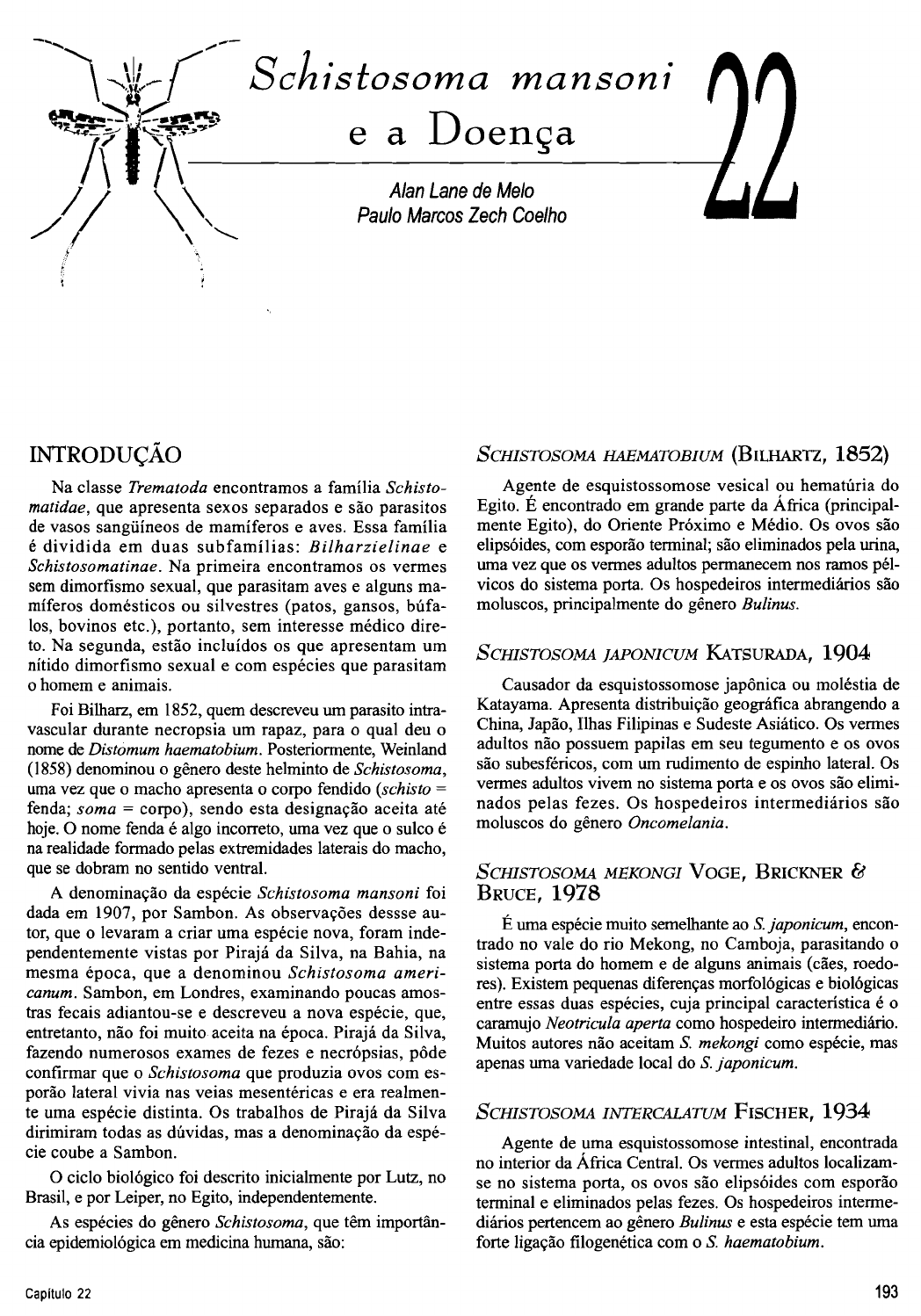 (1 858) denominou o gênero deste helminto de Schistosoma,