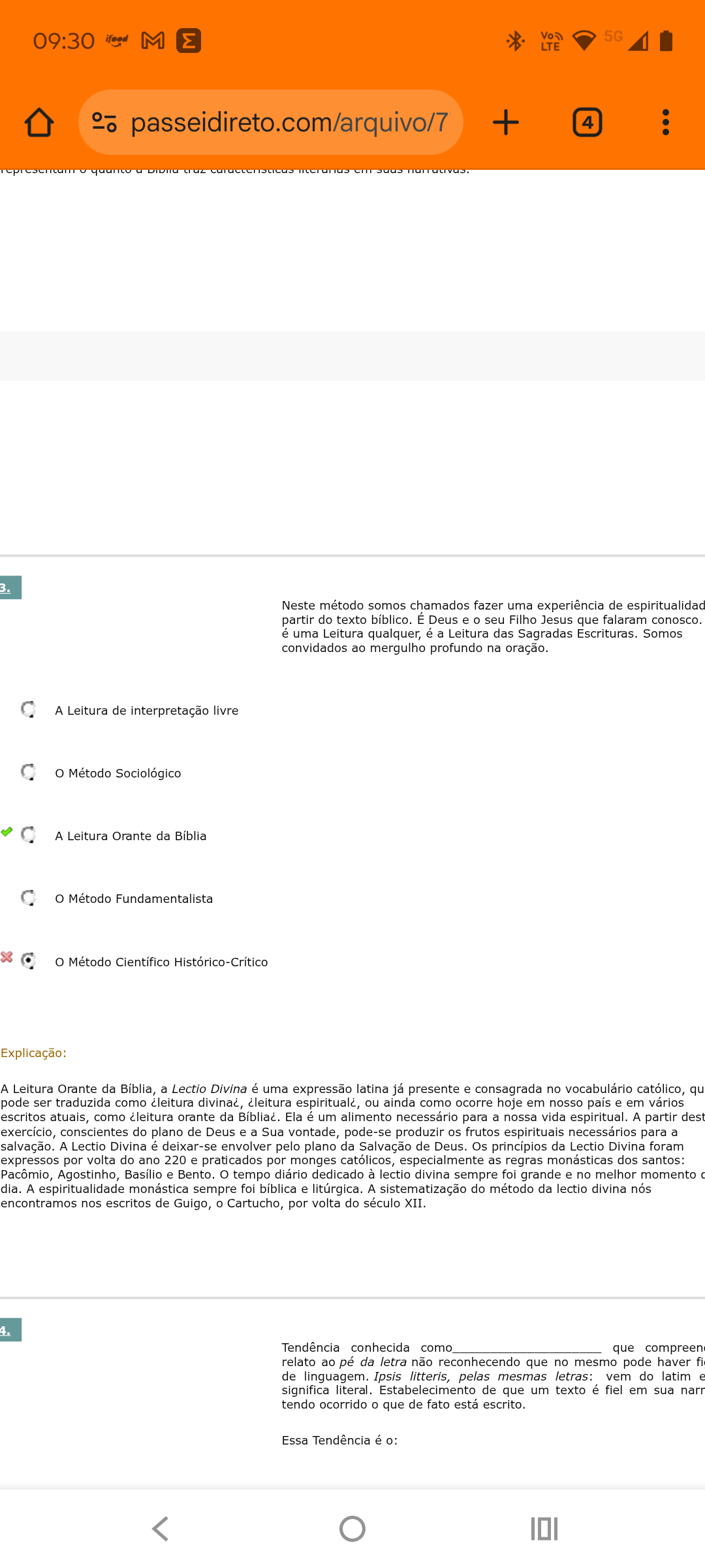 09:30 Von 5G LTE passeidireto.com/arquivo/7 + 4 quanto Neste método somos chamados fazer uma experiência de espiritualidad partir do texto bíblico. É Deus e seu Filho Jesus que falaram conosco. é uma Leitura qualquer, é a Leitura das Sagradas Escrituras. Somos convidados ao mergulho profundo na oração. A Leitura de interpretação livre Método Sociológico A Leitura Orante da Bíblia Método Fundamentalista Método Científico Histórico-Crítico Explicação: A Leitura Orante da Bíblia, a Lectio Divina é uma expressão latina já presente e consagrada no vocabulário católico, qui pode ser traduzida como ¿leitura divina¿, ¿leitura ou ainda como ocorre hoje em nosso país e em vários escritos atuais, como ¿leitura orante da Ela é um alimento necessário para a nossa vida espiritual. A partir dest exercício, conscientes do plano de Deus e a Sua vontade, pode-se produzir os frutos espirituais necessários para a salvação. A Lectio Divina é deixar-se envolver pelo plano da Salvação de Deus. Os princípios da Lectio Divina foram expressos por volta do ano 220 e praticados por monges católicos, especialmente as regras monásticas dos santos: Pacômio, Agostinho, Basílio e Bento. tempo diário dedicado à lectio divina sempre foi grande e no melhor momento dia. A espiritualidade monástica sempre foi bíblica e litúrgica. A sistematização do método da lectio divina nós encontramos nos escritos de Guigo, Cartucho, por volta do século XII. 4. Tendência conhecida como que relato ao pé da letra não reconhecendo que no mesmo pode haven fi de linguagem. Ipsis litteris, pelas mesmas letras: vem do latim e significa literal. Estabelecimento de que um texto é fiel em sua tendo ocorrido que de fato está escrito. Essa Tendência é