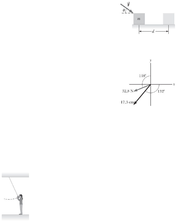 UNIVERSIDADE FEDERAL DO PIAUÍ CENTRO DE EDUCAÇÃO ABERTA E À DISTÂNCIA CURSO DE TECNOLOGIA EM ENERGIAS RENOVÁVEIS DISCIPLINA: FÍSICA 1 Lista de Exercícios - Módulo I 1. Uma força normal pode realizar trabalho? Se não, por que motivo? Se pode, dê um exemplo. 2. Se apenas uma força externa agir sobre uma partícula, ela necessariamente mudará (a) a en- ergia cinética da partícula? (b) sua velocidade? 3. Considere as transferências e transformações de energia listadas a seguir, nas partes (a) a (e). Para cada parte, (i) descreva aparelhos feitos pelo homem para produzir cada uma das transferên- cias e transformações de energia e, (ii) quando possível, descreva um processo natural no qual a transferência ou transformação de energia ocorre. Dê detalhes para justificar suas escolhas, como a identificação do sistema ou outra fonte de energia. (a) Energia potencial química se transforma em energia interna. (b) Energia transferida pela transmissão elétrica se torna energia potencial gravitacional. (c) Energia potencial elástica é transferida do sis- tema pelo calor. (d) Energia transferida por ondas mecânicas real- iza trabalho em um sistema. (e) Energia conduzida por ondas eletromagnéticas se torna energia cinética em um sistema. 4. Uma bola de boliche é suspensa do teto de uma sala de aula por uma corda forte. A bola é puxada para longe de sua posição de equilíbrio e liberada do repouso na extremidade do nariz da demon- stradora. (a) Explique por que a bola não a atinge quando faz seu percurso de volta. (b) Essa demonstradora estaria segura se a bola fosse empurrada da sua posição inicial no nariz dela? 5. Um bloco de massa m = 2, 50 kg é empurrado por uma distância d = 2, 20 m ao longo de uma mesa horizontal sem atrito por uma força aplicada constante de módulo F = 16, 0 N direcionada a um ângulo θ = 25, 0◦ abaixo da horizontal, como mostrado na Figura. Determine o trabalho real- izado no bloco pela: (a) força aplicada, (b) força normal exercida pela mesa, (c) força gravitacional, (d) força resultante sobre o bloco. 6. Encontre o produto escalar dos vetores na Figura. 7. A força que age sobre uma partícula é Fx = (8x − 16), em que F está em newtons e x está em metros. (a) Trace um gráfico dessa força por x de x = 0 a x = 3, 00 m. (b) Com base em seu gráfico, encontre o tra- balho resultante realizado por essa força sobre a partícula quando ela se move de x = 0 a x = 3, 00 m. 8. Uma força F = (4xi + 3yj), em que F está em newtons e x e y estão em metros, age sobre um corpo quando ele se move na direção x a partir da origem até x = 5, 00 m. Encontre o trabalho W = ∫ F · dr realizado pela força sobre o corpo. 9. Um corpo de 3,00 kg tem velocidade (6, 00i−2, 00j) m/s. (a) Qual é a energia cinética dele nesse momento? (b) Qual é o trabalho resultante realizado sobre o corpo se a velocidade dele muda para (8, 00i + 4, 00j) m/s? 1 10. Uma pedra de 0,20 kg é mantida 1,3 m acima da borda superior de um poço e depois derrubada dentro dele. O poço tem uma profundidade de 5,0 m. Em relação à configuração com a pedra na borda superior do poço, qual é a energia potencial gravitacional do sistema pedra-Terra: (a) Antes de a pedra ser solta; (b) Quando ela atinge o fundo do poço; (c) Qual é a mudança na energia potencial grav- itacional do sistema desde a soltura até atingir o fundo do poço? 11. Uma partícula de 4,00 kg move-se da origem à posição P , com coordenadas x = 5, 00 m e y = 5, 00 m. Uma força sobre a partícula é a força gravitacional que age na direção y negativa. Us- ando a Equação 6.3, calcule o trabalho realizado pela força gravitacional na partícula quando ela vai de O a P ao longo dos seguintes caminhos: (a) Caminho mais escuro, (b) Caminho cinza escuro, (c) Caminho cinza claro. (d) Seus resultados devem ser idênticos. Por quê? 12. Uma bola de 20,0 kg é disparada da boca de um canhão com velocidade de 1 000 m/s a um ângulo de 37,0º com a horizontal. Uma segunda bola é disparada a um ângulo de 90,0º. (a) Use o modelo de sistema isolado para encontrar a altura máxima alcançada por cada bola. (b) Determine a energia mecânica total do sistema bola-Terra na altura máxima de cada bola, estab- elecendo y = 0 no canhão. 13. Um bloco de massa m = 5, 00 kg é solto do ponto A e desliza na pista sem atrito mostrada na Figura. (a) Determine a velocidade do bloco nos pontos B e C. (b) Calcule o trabalho resultante realizado pela força gravitacional sobre o bloco conforme ele se move do ponto A para o ponto C. 14. Dois corpos são conectados por um barbante leve que passa sobre uma roldana leve e sem atrito, como mostrado na Figura. O corpo de massa m1 = 5, 00 kg é solto do repouso a uma altura h = 4, 00 m acima da mesa. (a) Usando o modelo de sistema isolado, deter- mine a velocidade do corpo de massa m2 = 3, 00 kg assim que o corpo de 5,00 kg atinge a mesa. (b) Encontre a altura máxima acima da mesa que o corpo de 3,00 kg alcança. 15. Um bloco de massa m = 2, 00 kg é preso a uma mola com constante elástica k = 500 N/m, como mostrado na Figura. O bloco é puxado para uma posição xi = 5, 00 cm para a direita do equilíbrio e solto do repouso. (a) Encontre a velocidade que o bloco tem en- quanto passa pelo equilíbrio se a superfície hori- zontal não tem atrito. (b) Se o coeficiente de atrito entre bloco e superfí- cie é µk = 0, 350, qual é a velocidade do bloco ao passar pelo equilíbrio? 16. Um menino em uma cadeira de rodas (massa to- tal 47,0 kg) tem velocidade de 1,40 m/s na crista de um declive de 2,60 m de altura e 12,4 m de comprimento. Na base do declive, sua velocidade é de 6,20 m/s. Suponha que a resistência do ar e a de rolagem possam ser modeladas como uma força de atrito constante de 41,0 N. Determine o trabalho que o menino realizou em- purrando sua cadeira para a frente durante sua trajetória para baixo. 17. Uma caixa aberta desliza por uma superfíci