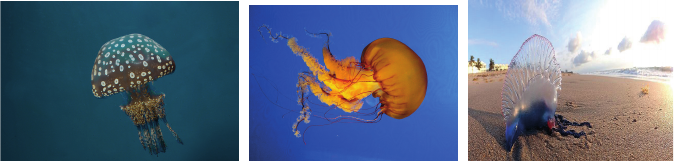 Biologia 179 Pró-Reitoria de Extensão – PROEX normalmente, ocorre pelo ósculo, e a fecundação ocorre na água (fecundação exter- na). Porém há casos em que o gameta masculino penetra pelos poros de indivíduos que apresentam óvulos e ocorre a fecundação interna no mesoílo. O zigoto produzi- do origina uma larva livre-natante, que, após fixar-se em um substrato, se desenvolve e origina uma esponja adulta. 8.5.2.2 Cnidários Os cnidários são representados por anêmona-do-mar, água-viva, caravela, coral e hidras. Os cnidários possuem células especializadas, como os cnidócitos, que são células urticantes, que liberam seu conteúdo diante de estímulos mecânicos ou químicos. Os cnidócitos se distribuem ao longo de todo o corpo do cnidário, porém é mais concentrado em tentáculos e ao redor da boca. A importância dos cnidócitos para os cnidários é o auxílio para a captura de presas e a proteção. No verão brasileiro, no litoral norte e nordeste, são comuns os acidentes de banhistas com caravelas e águas-vivas. Em caso de lesões na pele causadas por tais cnidários, recomendam-se compressas geladas de água do mar e vinagre. Figura 112: Água-viva (A, B) e caravela na praia (C) Fonte:,. Acesso em: 10 out. 2016. Os cnidários possuem tecidos verdadeiros originados de dois folhetos ger- minativos (ectoderme e endoderme), sendo, portanto, classificados como diblás- ticos. A ectoderme origina a epiderme (camada de revestimento), e a endoderme origina uma camada interna, a gastroderme. Entre as duas camadas (epiderme-gas- troderme), há uma substância denominada mesogleia. A região mais interna do or- ganismo é a cavidade gastrovascular, que pode se prologar no interior dos tentácu- los (projeções ao redor da boca). Muitos cnidários são carnívoros e utilizam os tentáculos para capturar pre- sas, enquanto os cnidócitos expelem toxinas. A presa capturada é levada à boca e a digestão ocorre na cavidade gastrovascular, onde há produção de enzimas digestivas (digestão extracelular). A digestão é concluída de forma intracelular por endocito- se. Os resíduos não digeridos são eliminados pela boca. A distribuição de nutrientes 180 Ciências da Natureza Pró-Reitoria de Extensão – PROEX ocorre pelas ramificações da cavidade gastrovascular, enquanto a distribuição de gases e a excreção de amônia ocorrem por difusão para o meio externo (portanto não há sistema circulatório, respiratório ou excretor). Há uma rede de células nervosas por todo o corpo dos cnidários, que podem auxiliar nas contrações do corpo, permitindo a movimentação. Os pólipos podem dar pequenos saltos e cambalhotas, mas as me- dusas nadam ativamente por propulsão. Há uma única abertura nos cnidários − a boca −, o que os classifica como dotados de um sistema digestório incompleto (só possuem boca, não possuem ânus). Os cnidários apresentam dois tipos de forma corporal: medusa (nadam li- vremente) e pólipo (vivem fixos a um substrato). A medusa possui forma de sino (ou guarda-chuva) e a boca é localizada no centro da parte inferior, circundada por vários tentáculos. O pólipo é cilíndrico e tem uma base dilatada por onde se fixa. Oposta à base está situada a boca. Os pólipos podem ser isolados (como hidras e anêmonas) ou formar colônias, como é o caso dos corais. Os corais sintetizam estruturas esqueléticas rígidas que permanecem quan- do o pólipo morre. A estrutura, normalmente de calcário, permite a acomodação de outros pólipos que, por várias gerações, acumularão material rígido mineralizado, originando os recifes e atóis. Figura 113: Recife (A) e atol (B), ambas as estruturas formadas por deposição de material esquelético de corais Fonte:, . Acesso em: 10 out. 2016. Os pólipos podem se reproduzir por brotamento (reprodução assexuada), mas outros cnidários podem apresentar polimorfismo reprodutivo, que consiste na alternância de gerações de pólipos (fase assexuada) e medusas (fase sexuada). O ciclo de alternância de gerações pode ser iniciado quando as medusas produzirem gametas, e ocorre a fecundação. O zigoto origina uma larva que, ao se fixar, origina um pólipo. O pólipo realiza a estrobilização, um tipo de brotamento que origina medusas jovens. As medusas darão origem a zigotos novamente pela fecundação de gametas, reiniciando o ciclo. Tanto o pólipo quanto a medusa são diploides (o que