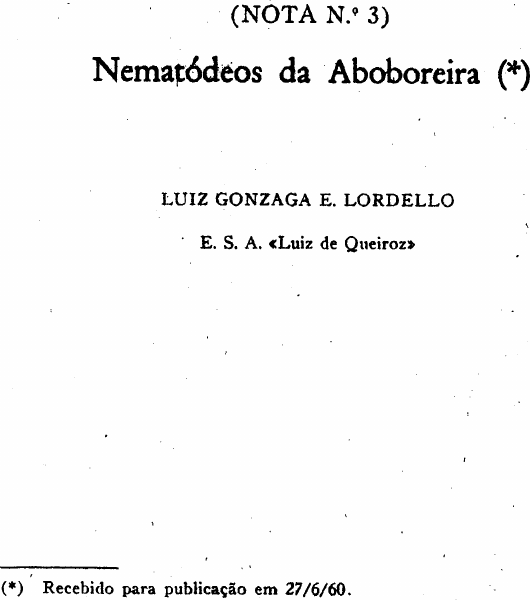 (NOTA N.º 3) Nematódeos da Aboboreira (*) LUIZ GONZAGA E. L O R D E L L O E. S. A. «Luiz de Queiroz» (*) Recebido para publicação em 27 /6 /60 . A primeira referência a nematódeos parasitando aboboreira aparece no clássico trabalho de B E S S E Y ( 1 9 1 1 ) , no qual a espécie Cucurbita maxima Duch. é alistada como susceptível a Meloidogy- ne sp. Diversos outros autores (BUHRER, COOPER & S T E I - NER, 1933; BUHRER, 1938; CHRISTIE, 1952; SASSER, 1954; MARTIN, 1954) referiram-se a plantas do gênero Cucurbita como hospedeiras de vários nematódeos, estando as melhores informações no trabalho de SASSER ( 1 9 5 4 ) , em que a espécie C. pepo L. é ex perimentalmente infestada pelas formas de Meloidogyne mais im portantes do ponto de vista agrícola. Em 1956, tivemos ocasião de estudar aboboreiras da espécie C. maxima procedentes de S. Paulo, que se achavam atacadas pelo nematódeo javanês (Aí. javanica (Treub, 1885) Chirwood, 1949) , tendo publicado um curto artigo a respeito do tipo de parasitismo assinalado (LORDELLO, 1956) . Recentemente, examinamos novo material, procedente de Ca- juru, neste Estado, onde foi coligido pelo Dr. JOÃO FRANCISCO DE MENDONÇA FAVA. Infelizmente, não foi possível determi nar a que espécie de Cucurbita se filiava o material. O nematódeo presente foi identificado como Meloidogyne incognita acuta Chit- wood, 1949. As raízes parasitadas mostravam galhas, cujo diâmetro che gava a atingir 4 vezes o diâmetro normal da raiz, sendo o parasi tismo semelhante àquele já. relatado (LORDELLO, loc. c i t ) . É que muitas fêmeas maduras, durante o seu desenvolvimento, conseguem abrir orifícios no córtex da raíz ? através dos quais emergem pela porção posterior do corpo, que permanece à mostra, do lado de fora, comumente trazendo aderente uma massa pardacenta ou amarelada, correspondendo à ooteca, no geral cheia de ovos. Dessa forma, as raízes atacadas, máxime as de menor diâmetro, deixam ver, após lavagem, pintas pardacentas em maior ou menor número, cada uma constituindo uma ooteca, sob a qual se encontra uma fêmea madura do parasito, embutida nos tecidos. A deposição de ovos no exterior evidentemente facilita a evasão das larvas migrantes, com destino a novas raízes, e os rompimentos corticais passam a constituir portas abertas à livre invasão dos tecidos por outros agentes, podendo resultar em decadência mais ou menos rápida da raiz ( S T E I N E R , 1 9 4 9 ) . Do material de Cajuru foi obtida uma curiosa fêmea, cujo corpo se apresentava constituído de duas porções globosas, sepa radas por uma constrição. A parte anterior se achava embutida nos tecidos e a porção posterior se apresentava fora da raiz, des- protegida. Tal forma, completamente anormal, por certo resul tou da resistência oferecida pelo córtex durante o desenvolvimento do exemplar. O seu estudo revelou que os órgãos reprodutores tomavam também a porção globosa anterior, de onde foi possível retirar numerosos ovos. A configuração da região perineal deste exemplar anômalo indicou que se filiava à espécie existente no material, ou seja, Meloidogyne incognita acrita Chitwood, 1949. SUMMARY In the State of S . Paulo, Brazil, squash plants (Cucurbita spp.) are attacked by the Javanese nematode (Meloidogyne j a v a ¬ nica) and by M. incognita acrita. Squash belongs to that group of plants in which the root-knot nematodes break through the root surface, so that the egg-produc ing females protrude from the root, showing yellowish or brow nish egg masses attached to them. Washed roots show numerous small dark spots, each corresponding to an ootheca, which is adhe ring to a mature female. A curious abnormal female of M. i. acrita was obtained from a sample of squash roots. This female's body showed two glo bular parts, separated by a deep constriction. The convoluted ovaries were found to fill both portions of the body. LITERATURA CITADA B E S S E Y , E. A., 1911 — Root-knot and its control, 89 pp., U. S. Bur. Plant Ind. ed., Beltsvílle, Md. BUHRER, E. M., 1938 — Additions to the list of plants attacked by the root-knot nematode (Heterodera marioni). Plant Dis. Reptr. 22(12): 216-234. B U H R E R , E. M., C. C O O P E R & G. S T E I N E R , 1933 — A list of plants attacked by the root-knot nematode (Heterodera marioni). Plant Dis. Reptr. 17(7): 64-96: C H R I S T I E , J . R., 1 9 5 2 — Ectoparasitic nematodes of plants. Phytopatho logy 4 2 ( 9 ) : 483-484. L O R D E L L O , L . G. E . , 1956 — Parasitismo de Meloidogyne javanica em raízes de aboboreira (Nematoda, Heteroderidae). Rev. Agricul tura, Piracicaba, 31(2) : 135-138. MARTIN, G. C , 1954 — Nematodes. Rhod. Tobacco Jour. 6 ( 5 ) : 109,111 e 113. S A S S E R , J . N., 1954 — Identification and host-parasite relationships of certain root-knot nematodes (Meloidogyne spp.), 31 pp., Un. of Mary land ed., College Park, Md., U . S . A . . S T E I N E R , G., 1949 — Plant nematodes the grower should know, 47 pp., Dept. Agric. State of Fla. ed., U . S . A . .