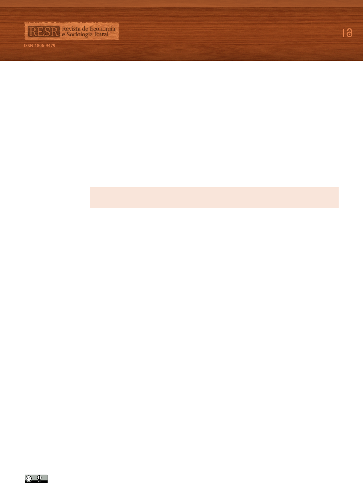 1/22 Agricultura familiar e cooperativismo no Brasil: uma caracterização a partir do Censo Agropecuário de 2017 ISSN 1806-9479 Artigo Revista de Economia e Sociologia Rural 61(2): e252661, 2023 | https://doi.org/10.1590/1806-9479.2021.252661 Este é um artigo publicado em acesso aberto (Open Access) sob a licença Creative Commons Attribution, que permite uso, distribuição e reprodução em qualquer meio, sem restrições desde que o trabalho original seja corretamente citado. Agricultura familiar e cooperativismo no Brasil: uma caracterização a partir do Censo Agropecuário de 2017 Family agriculture and cooperativism in Brazil: a characterization from the 2017 Agricultural Census Roberto Marinho Alves da Silva1 , Emanoel Márcio Nunes2,3 1Programa de Pós-graduação em Serviço Social (PPGSS), Centro de Ciências Sociais Aplicadas (CCSA), Universidade Federal do Rio Grande do Norte (UFRN), Natal (RN), Brasil. E-mail: rmas2007@gmail.com 2Programa de Pós-graduação em Economia (PPE), Faculdade de Ciências Econômicas (FACEM), Universidade do Estado do Rio Grande do Norte (UERN), Mossoró (RN), Brasil. E-mail: emanoelnunes@uern.br 3Programa de Pós-graduação em Planejamento e Dinâmicas Territoriais do Semiárido (PLANDITES), Faculdade de Ciências Econômicas (FACEM), Universidade do Estado do Rio Grande do Norte (UERN), Mossoró (RN), Brasil. Como citar: Silva, R. M. A., & Nunes, E. M. (2023). Agricultura familiar e cooperativismo no Brasil: uma caracterização a partir do Censo Agropecuário de 2017. Revista de Economia e Sociologia Rural, 61(2), e252661. https://doi. org/10.1590/1806-9479.2021.252661 Resumo: Este artigo apresenta resultados de um estudo sobre as características de estabelecimentos classificados como de agricultura familiar, cujos produtores são associados em cooperativas, com o objetivo de identificar tendências da cooperação agrícola nas atividades produtivas e reprodutivas desse segmento. A partir da sistematização e análise do Censo Agropecuário de 2017, realizado pelo Instituto Brasileiro de Geografia e Estatística (IBGE), verifica-se o baixo percentual de associação em cooperativas entre produtores responsáveis por estabelecimentos agropecuários no Brasil. A participação dos estabelecimentos de agricultura familiar é ainda menor nas regiões Norte e Nordeste do país, bem como entre produtores que têm menor renda. Foram identificados fatores relacionados à baixa participação desse segmento em cooperativas, entre os quais o tamanho da propriedade, a faixa da renda e a escolaridade. Também foram analisadas tendências da cooperação agropecuária, destacando-se os aportes do cooperativismo na viabilização da comercialização da produção, na ampliação da renda obtida no estabelecimento e no acesso a serviços de assistência técnica e extensão rural. A baixa participação em cooperativas é também expressão de carências estruturais históricas de negação de acesso adequado aos meios de produção e de condições de vida para promoção de um desenvolvimento rural sustentável. Palavras-chave: agricultura familiar, cooperativas agropecuárias, desenvolvimento rural sustentável. Abstract: This article presents results of a study on characteristics of establishments classified as family farming that are associated in cooperatives, aiming to understand trends of cooperation in the productive and reproductive activities of this segment. Based on the systematization and analysis from the 2017 Agricultural Census carried out by the Brazilian Institute of Geography and Statistics (IBGE), the low percentage of association in cooperatives among producers responsible for agricultural establishments in Brazil can be seen. In the case of family farming establishments, the participation is even lower in the North and Northeast regions of the Country, as well as among producers with lower income. Factors related to the low participation of this segment in cooperatives were identified, including the size of the property, the income range and education. Some trends in agricultural cooperation were analyzed, highlighting the contributions of cooperativism in making the marketing of production viable, in expanding the income obtained from the establishment and in accessing rural extension services. The study provides evidence that the low participation in cooperative expresses historical structural deficiencies denying adequate access to the means of production and living conditions that limit the expansion of family farming potential in Brazil to promote sustainable rural development. Keywords: family farming, agricultural cooperatives, sustainable rural development. https://creativecommons.org/licenses/by/4.0/ https://orcid.org/0000-0003-0532-9377 https://orcid.org/0000-0002-9045-887X 2/22Revista de Economia e Sociologia Rural 61(2): e252661, 2023 Agricultura familiar e cooperativismo no Brasil: uma caracterização a partir do Censo Agropecuário de 2017 1. Introdução Nas últimas décadas, a agricultura de base familiar, enquanto modo de vida e de produção no meio rural, vem conquistando o reconhecimento de sua importância e potencial para a promoção de um desenvolvimento rural dinâmico orientado para a sustentabilidade. Ao proclamar a Década da Agricultura Familiar (2019-2028)1, a Organização das Nações Unidas (ONU) reconheceu o destacado papel desse segmento para a segurança alimentar global, no enfrentamento às desigualdades sociais e da pobreza, na conservação da biodiversidade e no enfrentamento de problemas migratórios. Ao mesmo tempo, verifica-se a permanência de barreiras históricas e estruturais que limitam o potencial e ameaçam as condições de reprodução desse segmento que se caracteriza pela relação direta entre a família rural e as atividades agropecuárias e artesanais (inclusive não agrícolas), constituindo uma mesma unidade social e econômica. É exatamente o impedimento de acesso 