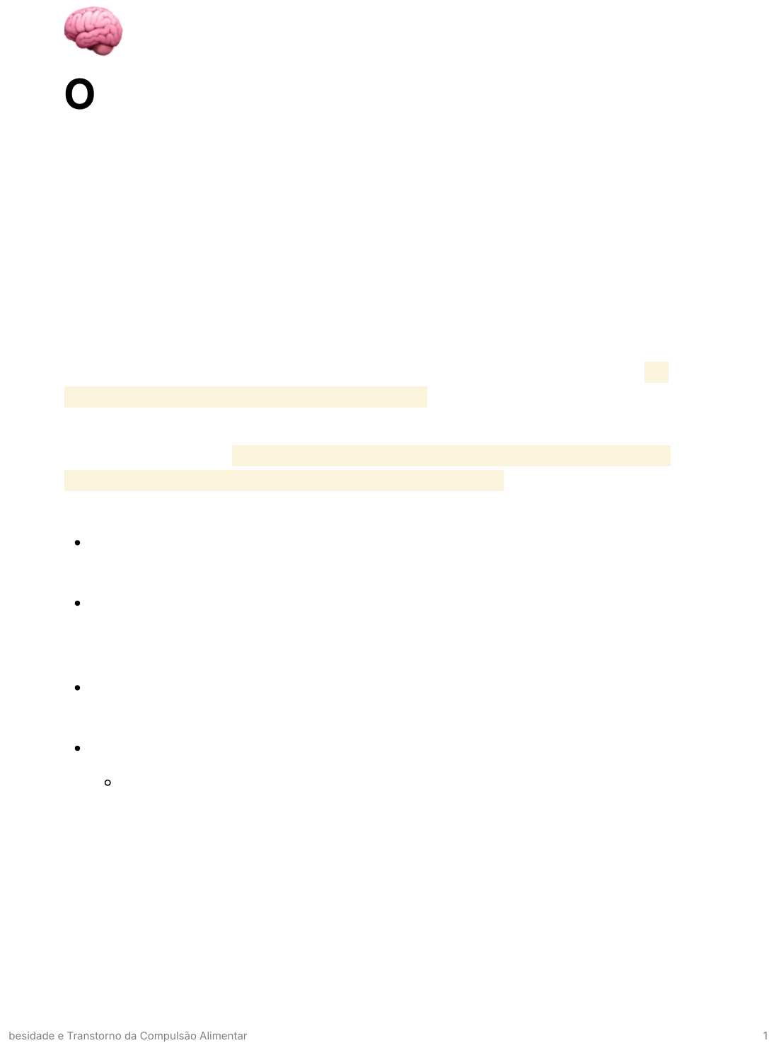 🧠 Obesidade e Transtorno da Compulsão Alimentar Morgana R. Duarte- TXI Transtornos alimentares Transtorno de Compulsão Alimentar (DSM-5) Característica essencial: episódios recorrentes de compulsão alimentar, ao menos uma vez por semana durante 3 meses. Episódio de compulsão: ingestão, em um período determinado 2h geralmente), de uma quantidade de alimento definitivamente maior do que a maioria das pessoas consumiria em um mesmo período sob circunstâncias semelhantes. Não se limita a um único ambiente: começa a comer em um local e termina em outro. Acompanhado por uma sensação de falta de controle: incapacidade de evitar comer ou de parar de comer depois de começar → qualidade dissociativa. Sentimento de vergonha dos problemas alimentares e tentativa de ocultar os sintomas (em segredo ou o mais discretamente possível). Ocorre em indivíduos de peso normal, sobrepeso ou obesos. A maioria dos obesos não se envolve em compulsão alimentar recorrente. Obesidade e Transtorno da Compulsão Alimentar 1 Obesidade A obesidade é uma grande epidemia mundial, associada a uma importante morbimortalidade. Doença crônica associada ao excesso de gordura corporal (acúmulo de tecido adiposo localizado ou generalizado). Etiologia complexa e multifatorial (estilo se vida, genes e fatores emocionais). Principais fatores de risco: história familiar, baixos níveis socioeconômicos e o sexo feminino. 1- Definições antropométricas A) Índice de Massa Corporal (IMC)- Índice de Quetelet Objetivo: avaliar se a pessoa está no peso ideal e identificar a associação entre IMC e doença crônica ou mortalidade. Obesidade e Transtorno da Compulsão Alimentar 2 💡 Apesar de o conceito de obesidade ser baseado no acúmulo de tecido adiposo no organismo, o sistema de classificação mundial OMS não utiliza a quantidade ou a distribuição de gordura corporal como critério básico. Exercício físico: aumento da musculatura e de massa magra, reduzindo a massa gordurosa- pode não impactar o IMC superestima o IMC. Idosos: tendência à sarcopenia IMC subvalorizado. 💡 A gordura visceral GV é um fator de risco potencial para doença CV, independente da gordura corporal total. Indivíduos com o mesmo IMC podem ter diferentes níveis de GV. B) Medidas corporais Devem ser medidas com o paciente em posição ortostática, ereto, sem roupas e sapatos, no ponto médio entre o rebordo costal inferior e a crista ilíaca. Obesidade e Transtorno da Compulsão Alimentar 3 Circunferência abdominal CA Circunferência da cintura CC a Reflete melhor o conteúdo de GV que a relação cintura-quadril RCQ b Captura melhor a adiposidade abdominal, demonstra mais precisamente a variância da GV Medida do quadril a Maior diâmetro da região glútea, passando sobre os trocânteres maiores do fêmur. Relação cintura-quadril a Avalia melhor a distribuição da adiposidade central X periférica Medidas de cinturas de acordo com a etnia propostas no consenso de síndrome metabólica da IDF Federação Internacional de Diabetes, 2006. Obesidade e Transtorno da Compulsão Alimentar 4 💡 Valores de referência do Painel de Tratamento de Adultos-III do Programa Nacional de Educação em Colesterol NCEPATPIII diferem da IDF Homem 102 cm Mulher 88 C) Localização do excesso de gordura O tecido adiposo está anatomicamente distribuído em diferentes proporções no corpo humano, a depender de sexo, idade, raça, etnia, dieta, atividade física, níveis hormonais e medicamentos. Padrão ginoide (pêra): em extremidades ou periférica. Padrão andoide (maçã): em tronco ou central → maior risco para saúde. D) Distribuição em compartimentos Tecido adiposo subcutâneo TAS. Tecido adiposo visceral TAV → maior correlação com SM e risco CV. 2- Avaliação da composição corporal Obesidade e Transtorno da Compulsão Alimentar 5 O único método capaz de quantificar precisamente todos os componentes corporais de modo direto é a dissecção anatômica (in vitro). Os métodos in vivo baseiam-se na quantificação de um ou mais componentes, de fórmulas matemáticas, de suposições e estimativas. Pesagem hidrostática → princípio de Arquimedes, preciso para estimar percentual de gordura corporal, exige equipamentos específicos e laboratório. Não indicado para avaliações de campo. Antropometria → simples, prático e de baixo custo. Útil para estudos epidemiológicos, baixa acurácia na avaliação individual. a Peso e IMC: ferramenta global para diagnóstico nutricional, não diferencia massa muscular de gordura e possui variações conforme sexo, idade e etnia. b Pregas cutâneas: uso de adipômetro para medir GSC, depende da habilidade do avaliador e do aparelho. c Circunferências: medida do braço, coxa, cintura e quadril. CC associada a maior risco CV. Bioimpedância elétrica → resistência do corpo à corrente elétrica, rápido e portátil, influenciadooa por hidrtação, ciclo menstrual e etnia. Baixa precisão para obesos e pessoas musculosas. Absortometria de raios X de dupla energia → alta precisão para avaliar gordura, massa magra e óssea, determina gordura regional, baixa exposiçãi à rediação. Alto custo. Métodos de imagem a USG: simples e não invasivo, avalia a distribuição de gordura corporal, estima a gordura totoal com boas correlações. b TC padrão-ouro na análise de GV. Alto custo e exposição à radiação. c RM: preciso para avaliar gordura corporal e muscular. Caro e pouco disponível. 3- Fisiopatologia da obesidade e ciclicidade do peso A) Balanço energético O corpo humano necessita de enrgia para suas funções vitais, obtida dos alimentos e armazenada como glicogênio (fígado e músculos) e gordura (tecido Obesidade e Transtorno da Compulsão Alimentar 6 adiposo). A homeostase energética é regulada por sinais periféricos e centros hipotalâmicos para manter o peso corporal relativamente estável. Objetivo de garantir ao organismo energia mesmo em f