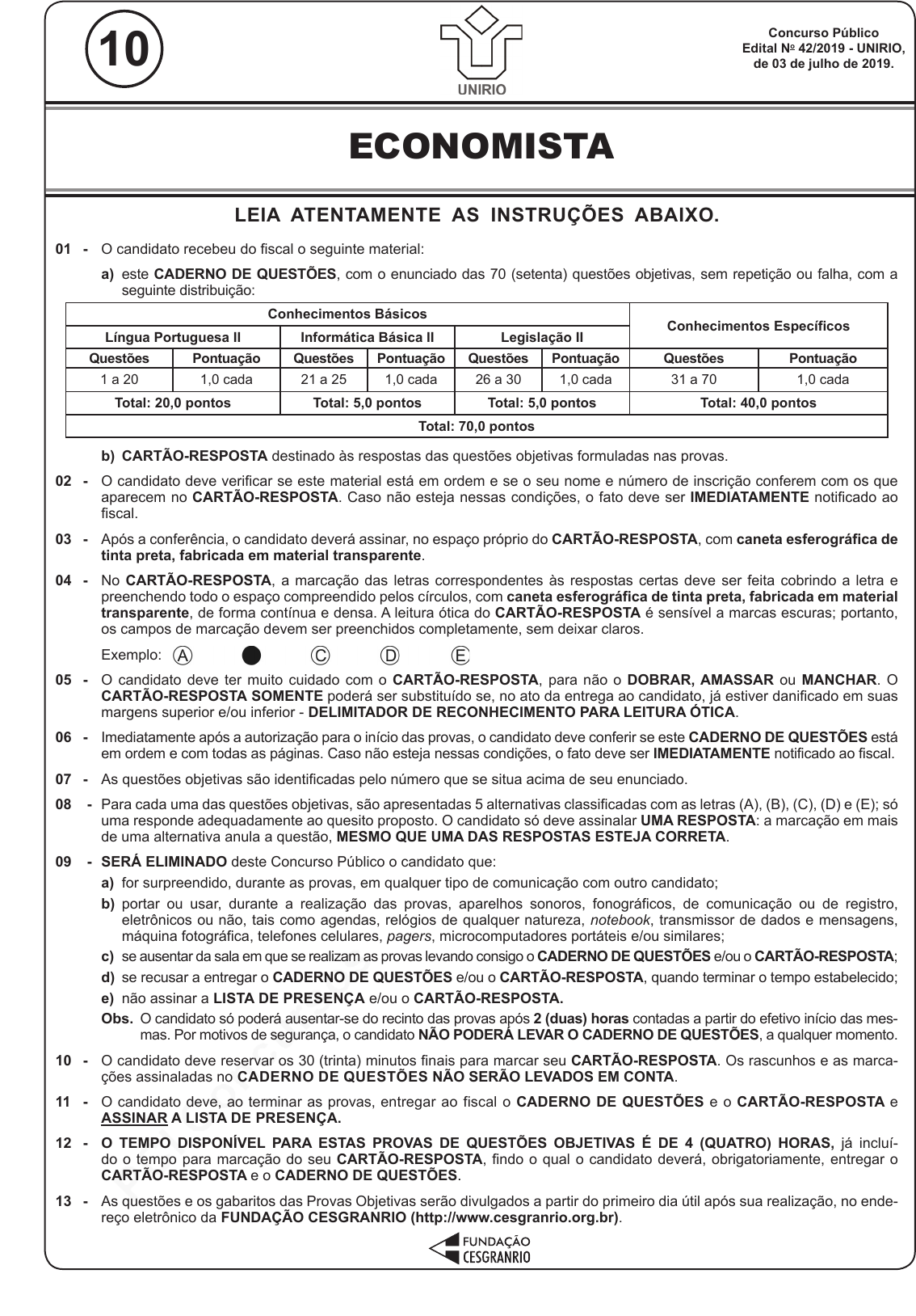 pcimarkpci MDAwMDowMDAwOjAwMDA6MDAwMDowMDAwOmZmZmY6MmQ4YzpjMGE1:U2F0LCAyOCBKdW4gMjAyNSAxMDoxMDo0MyAtMDMwMA== www.pciconcursos.com.br LEIA ATENTAMENTE AS INSTRUÇÕES ABAIXO. 01 - O candidato recebeu do fiscal o seguinte material: a) este CADERNO DE QUESTÕES, com o enunciado das 70 (setenta) questões objetivas, sem repetição ou falha, com a seguinte distribuição: Conhecimentos Básicos Conhecimentos Específicos Língua Portuguesa II Informática Básica II Legislação II Questões Pontuação Questões Pontuação Questões Pontuação Questões Pontuação 1 a 20 1,0 cada 21 a 25 1,0 cada 26 a 30 1,0 cada 31 a 70 1,0 cada Total: 20,0 pontos Total: 5,0 pontos Total: 5,0 pontos Total: 40,0 pontos Total: 70,0 pontos b) CARTÃO-RESPOSTA destinado às respostas das questões objetivas formuladas nas provas. 02 - O candidato deve verificar se este material está em ordem e se o seu nome e número de inscrição conferem com os que aparecem no CARTÃO-RESPOSTA. Caso não esteja nessas condições, o fato deve ser IMEDIATAMENTE notificado ao fiscal. 03 - Após a conferência, o candidato deverá assinar, no espaço próprio do CARTÃO-RESPOSTA, com caneta esferográfica de tinta preta, fabricada em material transparente. 04 - No CARTÃO-RESPOSTA, a marcação das letras correspondentes às respostas certas deve ser feita cobrindo a letra e preenchendo todo o espaço compreendido pelos círculos, com caneta esferográfica de tinta preta, fabricada em material transparente, de forma contínua e densa. A leitura ótica do CARTÃO-RESPOSTA é sensível a marcas escuras; portanto, os campos de marcação devem ser preenchidos completamente, sem deixar claros. Exemplo: 05 - O candidato deve ter muito cuidado com o CARTÃO-RESPOSTA, para não o DOBRAR, AMASSAR ou MANCHAR. O CARTÃO-RESPOSTA SOMENTE poderá ser substituído se, no ato da entrega ao candidato, já estiver danificado em suas margens superior e/ou inferior - DELIMITADOR DE RECONHECIMENTO PARA LEITURA ÓTICA. 06 - Imediatamente após a autorização para o início das provas, o candidato deve conferir se este CADERNO DE QUESTÕES está em ordem e com todas as páginas. Caso não esteja nessas condições, o fato deve ser IMEDIATAMENTE notificado ao fiscal. 07 - As questões objetivas são identificadas pelo número que se situa acima de seu enunciado. 08 - Para cada uma das questões objetivas, são apresentadas 5 alternativas classificadas com as letras (A), (B), (C), (D) e (E); só uma responde adequadamente ao quesito proposto. O candidato só deve assinalar UMA RESPOSTA: a marcação em mais de uma alternativa anula a questão, MESMO QUE UMA DAS RESPOSTAS ESTEJA CORRETA. 09 - SERÁ ELIMINADO deste Concurso Público o candidato que: a) for surpreendido, durante as provas, em qualquer tipo de comunicação com outro candidato; b) portar ou usar, durante a realização das provas, aparelhos sonoros, fonográficos, de comunicação ou de registro, eletrônicos ou não, tais como agendas, relógios de qualquer natureza, notebook, transmissor de dados e mensagens, máquina fotográfica, telefones celulares, pagers, microcomputadores portáteis e/ou similares; c) se ausentar da sala em que se realizam as provas levando consigo o CADERNO DE QUESTÕES e/ou o CARTÃO-RESPOSTA; d) se recusar a entregar o CADERNO DE QUESTÕES e/ou o CARTÃO-RESPOSTA, quando terminar o tempo estabelecido; e) não assinar a LISTA DE PRESENÇA e/ou o CARTÃO-RESPOSTA. Obs. O candidato só poderá ausentar-se do recinto das provas após 2 (duas) horas contadas a partir do efetivo início das mes- mas. Por motivos de segurança, o candidato NÃO PODERÁ LEVAR O CADERNO DE QUESTÕES, a qualquer momento. 10 - O candidato deve reservar os 30 (trinta) minutos finais para marcar seu CARTÃO-RESPOSTA. Os rascunhos e as marca- ções assinaladas no CADERNO DE QUESTÕES NÃO SERÃO LEVADOS EM CONTA. 11 - O candidato deve, ao terminar as provas, entregar ao fiscal o CADERNO DE QUESTÕES e o CARTÃO-RESPOSTA e ASSINAR A LISTA DE PRESENÇA. 12 - O TEMPO DISPONÍVEL PARA ESTAS PROVAS DE QUESTÕES OBJETIVAS É DE 4 (QUATRO) HORAS, já incluí- do o tempo para marcação do seu CARTÃO-RESPOSTA, findo o qual o candidato deverá, obrigatoriamente, entregar o CARTÃO-RESPOSTA e o CADERNO DE QUESTÕES. 13 - As questões e os gabaritos das Provas Objetivas serão divulgados a partir do primeiro dia útil após sua realização, no ende- reço eletrônico da FUNDAÇÃO CESGRANRIO (http://www.cesgranrio.org.br). Concurso Público Edital No 42/2019 - UNIRIO, de 03 de julho de 2019.10 ECONOMISTA pcimarkpci MDAwMDowMDAwOjAwMDA6MDAwMDowMDAwOmZmZmY6MmQ4YzpjMGE1:U2F0LCAyOCBKdW4gMjAyNSAxMDoxMDo0MyAtMDMwMA== www.pciconcursos.com.br 2 UNIRIO ECONOMISTA PROVA 10 CONHECIMENTOS BÁSICOS LÍNGUA PORTUGUESA II Texto I Obsolescência programada: inimiga ou parceira do consumidor? Obsolescência programada é exercida quando um produto tem vida útil menor do que a tecnologia permitiria, motivando a compra de um novo modelo — eletrônicos, eletrodomésticos e automóveis são exemplos evidentes dessa prática. Uma câmera com uma resolução melhor pode motivar a compra de um novo celular, ainda que o modelo anterior funcione perfeitamente bem. Essa estratégia da indústria pode ser vista como inimiga do consumidor, uma vez que o incentiva a adquirir mais produtos sem realmente necessitar deles. No entanto, traz benefícios, como o acesso às novidades. Planejar inovação é extremamente importante para melhoria e aumento da capacidade técnica de um produto num mercado altamente competitivo. Já imaginou se um carro de hoje fosse igual a um carro dos anos 1970? O desafio é buscar um equilíbrio entre a inovação e a durabilidade. Do ponto de vista técnico, quando as empresas planejam um produto, já tem equipes trabalhando na sucessão dele, pois se trata de uma necessidade de sobrevivência no mercado. Sintomas de obsolescência são facilmente per- cebidos quando um novo produto oferece 