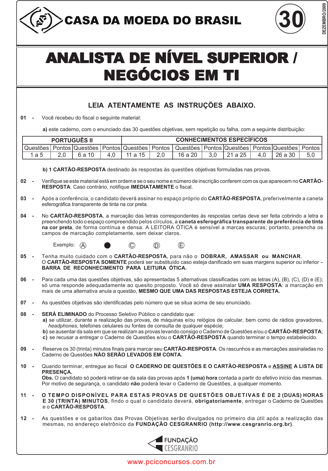 mesmas, no endereço eletrônico da FUNDAÇÃO CESGRANRIO (http://www.cesgranrio.org.br).