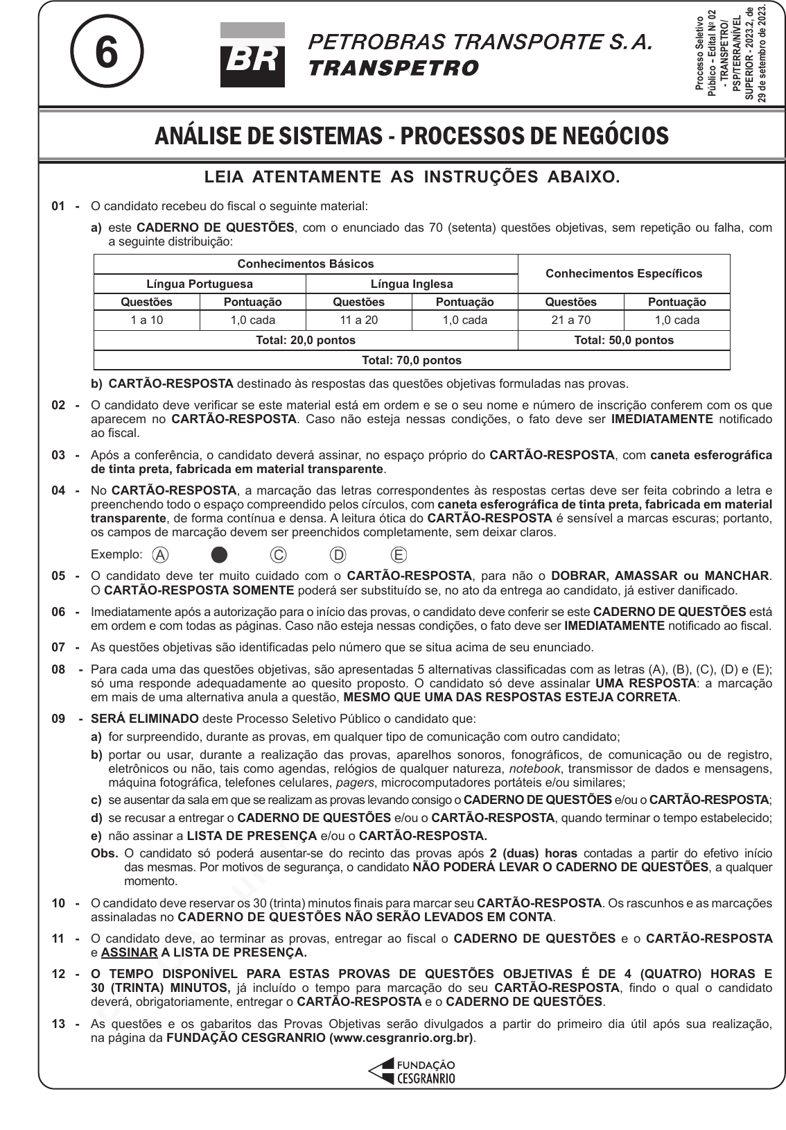pcimarkpci MDAwMDowMDAwOjAwMDA6MDAwMDowMDAwOmZmZmY6OTU0ZTpiYjcw:RnJpLCAyNyBKdW4gMjAyNSAxMToxODoxMSAtMDMwMA== www.pciconcursos.com.br LEIA ATENTAMENTE AS INSTRUÇÕES ABAIXO. 01 - O candidato recebeu do fiscal o seguinte material: a) este CADERNO DE QUESTÕES, com o enunciado das 70 (setenta) questões objetivas, sem repetição ou falha, com a seguinte distribuição: Conhecimentos Básicos Conhecimentos Específicos Língua Portuguesa Língua Inglesa Questões Pontuação Questões Pontuação Questões Pontuação 1 a 10 1,0 cada 11 a 20 1,0 cada 21 a 70 1,0 cada Total: 20,0 pontos Total: 50,0 pontos Total: 70,0 pontos b) CARTÃO-RESPOSTA destinado às respostas das questões objetivas formuladas nas provas. 02 - O candidato deve verificar se este material está em ordem e se o seu nome e número de inscrição conferem com os que aparecem no CARTÃO-RESPOSTA. Caso não esteja nessas condições, o fato deve ser IMEDIATAMENTE notificado ao fiscal. 03 - Após a conferência, o candidato deverá assinar, no espaço próprio do CARTÃO-RESPOSTA, com caneta esferográfica de tinta preta, fabricada em material transparente. 04 - No CARTÃO-RESPOSTA, a marcação das letras correspondentes às respostas certas deve ser feita cobrindo a letra e preenchendo todo o espaço compreendido pelos círculos, com caneta esferográfica de tinta preta, fabricada em material transparente, de forma contínua e densa. A leitura ótica do CARTÃO-RESPOSTA é sensível a marcas escuras; portanto, os campos de marcação devem ser preenchidos completamente, sem deixar claros. Exemplo: 05 - O candidato deve ter muito cuidado com o CARTÃO-RESPOSTA, para não o DOBRAR, AMASSAR ou MANCHAR. O CARTÃO-RESPOSTA SOMENTE poderá ser substituído se, no ato da entrega ao candidato, já estiver danificado. 06 - Imediatamente após a autorização para o início das provas, o candidato deve conferir se este CADERNO DE QUESTÕES está em ordem e com todas as páginas. Caso não esteja nessas condições, o fato deve ser IMEDIATAMENTE notificado ao fiscal. 07 - As questões objetivas são identificadas pelo número que se situa acima de seu enunciado. 08 - Para cada uma das questões objetivas, são apresentadas 5 alternativas classificadas com as letras (A), (B), (C), (D) e (E); só uma responde adequadamente ao quesito proposto. O candidato só deve assinalar UMA RESPOSTA: a marcação em mais de uma alternativa anula a questão, MESMO QUE UMA DAS RESPOSTAS ESTEJA CORRETA. 09 - SERÁ ELIMINADO deste Processo Seletivo Público o candidato que: a) for surpreendido, durante as provas, em qualquer tipo de comunicação com outro candidato; b) portar ou usar, durante a realização das provas, aparelhos sonoros, fonográficos, de comunicação ou de registro, eletrônicos ou não, tais como agendas, relógios de qualquer natureza, notebook, transmissor de dados e mensagens, máquina fotográfica, telefones celulares, pagers, microcomputadores portáteis e/ou similares; c) se ausentar da sala em que se realizam as provas levando consigo o CADERNO DE QUESTÕES e/ou o CARTÃO-RESPOSTA; d) se recusar a entregar o CADERNO DE QUESTÕES e/ou o CARTÃO-RESPOSTA, quando terminar o tempo estabelecido; e) não assinar a LISTA DE PRESENÇA e/ou o CARTÃO-RESPOSTA. Obs. O candidato só poderá ausentar-se do recinto das provas após 2 (duas) horas contadas a partir do efetivo início das mesmas. Por motivos de segurança, o candidato NÃO PODERÁ LEVAR O CADERNO DE QUESTÕES, a qualquer momento. 10 - O candidato deve reservar os 30 (trinta) minutos finais para marcar seu CARTÃO-RESPOSTA. Os rascunhos e as marcações assinaladas no CADERNO DE QUESTÕES NÃO SERÃO LEVADOS EM CONTA. 11 - O candidato deve, ao terminar as provas, entregar ao fiscal o CADERNO DE QUESTÕES e o CARTÃO-RESPOSTA e ASSINAR A LISTA DE PRESENÇA. 12 - O TEMPO DISPONÍVEL PARA ESTAS PROVAS DE QUESTÕES OBJETIVAS É DE 4 (QUATRO) HORAS E 30 (TRINTA) MINUTOS, já incluído o tempo para marcação do seu CARTÃO-RESPOSTA, findo o qual o candidato deverá, obrigatoriamente, entregar o CARTÃO-RESPOSTA e o CADERNO DE QUESTÕES. 13 - As questões e os gabaritos das Provas Objetivas serão divulgados a partir do primeiro dia útil após sua realização, na página da FUNDAÇÃO CESGRANRIO (www.cesgranrio.org.br). Pr oc es so S ele tiv o Pú bl ico - Ed ita l N o 02 - T RA NS PE TR O/ PS P/ TE RR A/ NÍ VE L SU PE RI OR - 20 23 .2, d e 29 d e s et em br o de 20 23 . ANÁLISE DE SISTEMAS - PROCESSOS DE NEGÓCIOS 6 pcimarkpci MDAwMDowMDAwOjAwMDA6MDAwMDowMDAwOmZmZmY6OTU0ZTpiYjcw:RnJpLCAyNyBKdW4gMjAyNSAxMToxODoxMSAtMDMwMA== www.pciconcursos.com.br PROVA 6 - ANÁLISE DE SISTEMAS - PROCESSOS DE NEGÓCIOS 2 TRANSPETRO TERRA CONHECIMENTOS BÁSICOS LÍNGUA PORTUGUESA À moda brasileira Estou me vendo debaixo de uma árvore, lendo a pequena história da literatura brasileira. Olavo Bilac! – eu disse em voz alta e de repen- te parei quase num susto depois que li os primeiros versos do soneto à língua portuguesa: Última flor do Lácio, inculta e bela / És, a um tempo, esplendor e sepultura. Fiquei pensando, mas o poeta disse sepultura?! O tal de Lácio eu não sabia onde ficava, mas de se- pultura eu entendia bem, disso eu entendia, repen- sei baixando o olhar para a terra. Se escrevia (e já escrevia) pequenos contos nessa língua, quer dizer que era a sepultura que esperava por esses meus escritos? Fui falar com meu pai. Comecei por aquelas minhas sondagens antes de chegar até onde que- ria, os tais rodeios que ele ia ouvindo com paciência enquanto enrolava o cigarro de palha, fumava nessa época esses cigarros. Comecei por perguntar se mi- nha mãe e ele não tinham viajado para o exterior. Meu pai fixou em mim o olhar verde. Viagens, só pelo Brasil, meus avós é que tinham feito aque- las longas viagens de navio, Portugal, França, Itália... Não esquecer que a minha avó, Pedrina Perucchi, era italiana, ele acrescentou. Mas por que essa curio- sidade? Sentei-me ao la