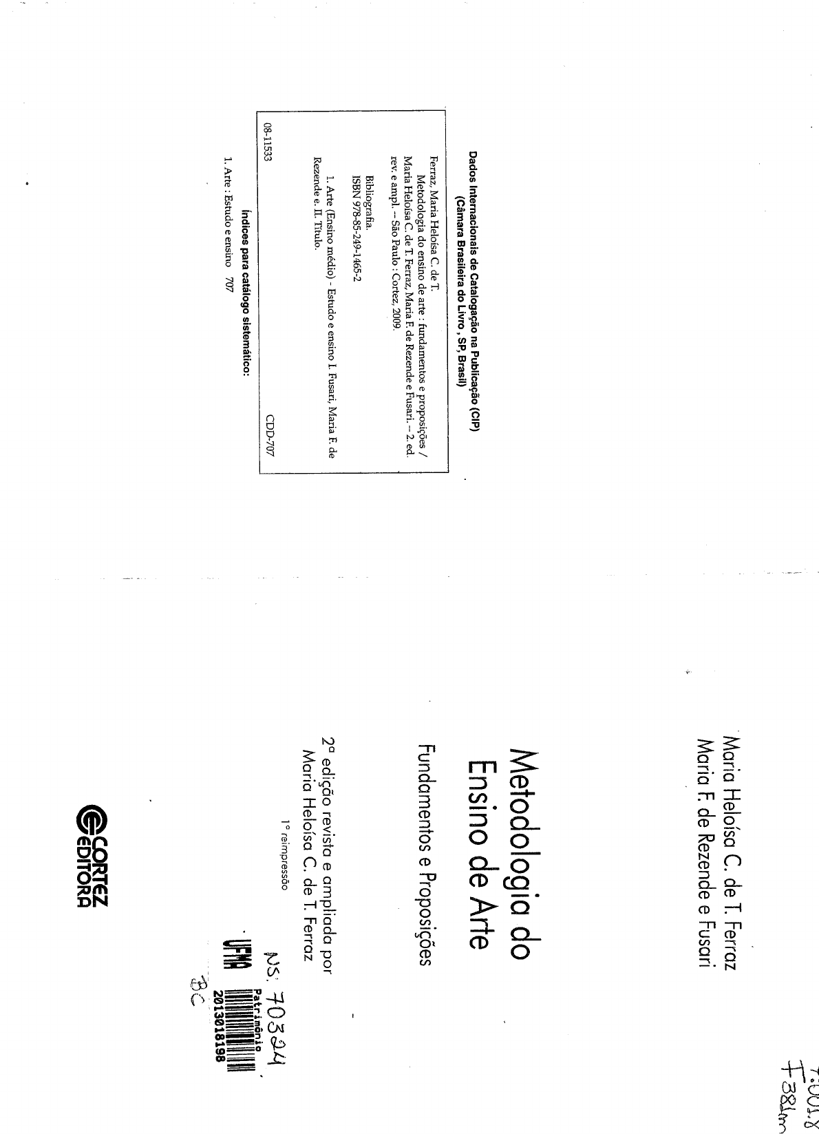 F381m Maria Heloísa C. de T. Ferraz Maria F. de Rezende e Fusari Metodologia do Dados Internacionais de Catalogação na Publicação (CIP) Ensino de Arte (Câmara Brasileira do Livro SP, Brasil) Ferraz, Maria Heloísa C. de T. Metodologia do ensino de arte fundamentos e proposições / Fundamentos e Proposições Maria Heloísa C. de T. Ferraz, Maria F. de Rezende e Fusari. -- 2. ed. rev. e ampl. -- São Paulo : Cortez, 2009. Bibliografia. ISBN 978-85-249-1465-2 1. Arte (Ensino médio) Estudo e ensino I. Fusari, Maria F. de edição revista e ampliada por Rezende e. П. Título. Maria Heloísa C. de T. Ferraz 1° reimpressão 08-11533 CDD-707 NS: 70324 Patr imônio Índices para catálogo sistemático: 1. Arte Estudo e ensino 707 UFMA 2013018198 BC CORTEZ EDITORACORTEZ EDITORA 5 METODOLOGIA DO ENSINO DE ARTE Maria Heloísa C. de T. Ferraz Maria F. de Rezende e Fusari Capa: aeroestúdio. Obra "Caderno abstrato" de Gisela Eichbaum, técnica mista sobre papel, 23x15,2 cm. Coleção da família. Preparação de originais: Agnaldo Alves Revisão: Maria de Lourdes de Almeida Composição: Dany Editora Ltda. Coordenação editorial: Danilo A. Q. Morales Sumário PREFÁCIO À SEGUNDA EDIÇÃO 11 CAPÍTULO 1 Para pensar e fazer uma Educação Escolar de Arte 15 1. O significado da Arte na educação 18 Conhecer a arte na escola 19 O autor, a obra e a sua recepção 20 2. A arte mobiliza a Educação Escolar de Arte 25 Experiências de fazer e apreciar arte 28 Nenhuma parte desta obra pode ser reproduzida ou duplicada sem autorização expressa dos autores Atividades complementares 33 e do editor. Leituras de aprofundamento 34 © 2009 by Autoras CAPÍTULO 2 A Educação Escolar de Arte tem uma história 35 Direitos para esta edição 1. Determinantes socioculturais 37 CORTEZ EDITORA 2. Tendências pedagógicas no ensino de Arte 41 R. Monte Alegre, 1074 Perdizes 05014-001 São Paulo SP A "Pedagogia Tradicional" e as aulas de Arte 44 Tel. (11) 3864 0111 Fax: (11) 3864 4290 A "Pedagogia Nova" e as aulas de Arte 47 e-mail: cortez@cortezeditora.com.br A "Pedagogia Tecnicista" e as aulas de Arte 51 www.cortezeditora.com.br Tendência Realista-Progressita e o ensino Impresso no Brasil julho de 2011 de Arte 536 SUMÁRIO METODOLOGIA DO ENSINO DE ARTE 7 3. O Ensino da Arte na contemporaneidade 56 4. jogo, a brincadeira e as aulas de Arte 122 A nova LDBN n. 9.394/96 e OS Parâmetros O jogo simbólico 124 Curriculares Nacionais 56 lúdico nas aulas de Arte 128 Compromissos com a educação escolar de Arte. 59 Atividades complementares 134 Atividades complementares 60 Leituras de aprofundamento 135 Leituras de aprofundamento 61 Filmes 136 CAPÍTULO 3 A criança, o cotidiano e as aulas de Arte CAPÍTULO 5 63 Organização da prática educativa escolar de Arte 137 1. A criança no ambiente natural e cultural 65 1. Metodologia da educação escolar de Arte 139 2. A criança interagindo com os meios de comunicação e as novas tecnologias 67 Planejamento e projetos de Arte 143 3. O professor e as crianças no espaço da arte 73 Componentes curriculares 145 2. Encaminhando a ação pedagógica de Arte 150 4. A instituição cultural e a escola 75 Seleção de conteúdos de Arte: intermediação Atividades complementares 79 estética e artística 155 Leituras de aprofundamento e sites 80 Espaço e tempo para a arte 156 CAPÍTULO 4 83 3. A atividade de estágio 157 A criança conhecendo a Arte 1. A expressividade infantil 85 4. A avaliação 161 Atividades complementares 166 2. Percepção, imaginação e fantasia nas aulas de Arte 87 Leituras de aprofundamento 167 A importância da percepção 87 CAPÍTULO 6 Arte na educação infantil e no ensino fundamental 169 Imaginação e atividade criadora 92 0 1. A formação artística e estética de crianças e A imaginação da criança 93 jovens na escola 171 3. Em busca da representação artística 94 2. Atividades artísticas com crianças 172 O desenho infantil 95 Linguagens visuais 177 Desenho e gesto 97 Linguagens dramáticas 185 A construção do desenho 100 Atividades complementares 189 A criança e as imagens 104 Leituras de aprofundamento 189 Nascem as formas 107 BIBLIOGRAFIA 191 Construindo figuras 1088 SUMÁRIO METODOLOGIA DO ENSINO DE ARTE 9 Índice das figuras e quadros Fig. 11 Vivenciando as primeiras organizações formais.. (Nelson, 2 anos e 5 meses 106 Fig. 12 Júlia, 4 anos 107 CAPÍTULO 1 Fig. Representações da figura humana Foto 1 16 (Tânia, 3 anos; Daniel, 4 anos, André 4 anos, Júlia, 4 anos) 109 Fig. 1 Van Gogh, O Escolar, 1888 21 Fig. 14 Evolução gráfica da figura humana por uma criança Quadro-síntese Componentes que se articulam no processo artístico (Théo, 3 anos e 6 meses a 5 anos e 2 meses) 110 24 Fig. 2 Pintura facial etnia Tapinapé Fig. 15 Desenhos registrando ações (André, 6 anos, Juliana, 5 anos) 112 30 Fig. 16 Formas e objetos do cotidiano 113 CAPÍTULO 2 Fig. 17 A casa na representação infantil: diferentes possibilidades Foto 2 Aula de Arte, 1991. Escola N.S. das Graças 36 gráficas, pictóricas e espaciais (localização da linha de terra) Foto 3 EMEI Parada de Taipas, SP (Fabrízio, 7 anos; Maria, 8 anos; Mônica, 7 anos; Vitória, 36 Fig. 3 6 anos; Renato, 4 anos; Nelson, 7 anos) 114 Jean-Baptiste Debret (1768-1848), ilustração 43 Fig. 4 Fig. 18 O desenho da criança evoluindo para detalhamento e Desenho de criança, grafite e lápis s/ papel proporcionalidade (Magali, 10 anos) 115 20x30 cm. Biblioteca Infantil, 1937. Col. Mário de Andrade IEB/USP Fig. 19 Desenho com aspectos cênicos (Nelson, 13 anos) 116 49 Foto 9 122 CAPÍTULO 3 Foto 10 122 Foto 4 "Bumba-meu-boi". Escola EMEI Parada de Taipas, SP 64 Fig. 5 CAPÍTULO 5 Representações de cenas com referências ao mundo conhecido pela criança (Nelson, 6 anos e 4 meses) Foto 11 68 Projeto Ciranda, Escola Municipal Abinel de Freitas, Fig. 6 Bairro Cohab Véu de Noiva, MT 138 "O dia em que Brasil perdeu a copa" (Thiago, 6 anos) 69 Fig. 7 Quadro-síntese Element