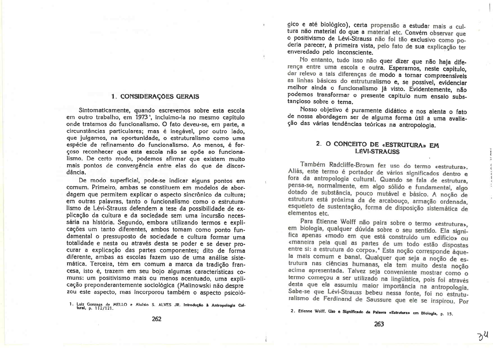 gico e até biológico), certa propensão a estudar mais cul- tura não material do que a material etc. Convém observar que o positivismo de Lévi-Strauss não foi tão exclusivo como po- deria parecer, à primeira vista, pelo fato de sua explicação ter enveredado pelo inconsciente. No entanto, tudo isso não quer dizer que não haja dife- rença entre uma escola e Esperamos, neste capítulo, dar relevo a tais diferenças de modo a tornar compreensíveis as linhas básicas do estruturalismo e, se possível, evidenciar melhor ainda funcionalismo já visto. Evidentemente, não 1. CONSIDERAÇÕES GERAIS podemos transformar o presente capítulo num ensaio subs- tançioso sobre o tema. Sintomaticamente, quando escrevemos sobre esta escola Nosso objetivo é puramente didático e nos alenta o fato em outro trabalho, em incluímo-la no mesmo capítulo de nossa abordagem ser de alguma forma útil a uma avalia- onde tratamos do funcionalismo. o fato deveu-se, em parte, a ção das várias tendências teóricas na antropologia. circunstâncias particulares; mas é inegável, por outro lado, que julgamos, na oportunidade, o estruturalismo como uma espécie de refinamento do funcionalismo. Ao menos, é for- 2. CONCEITO DE «ESTRUTURA» EM çoso reconhecer que esta escola não se opõe ao funciona- LÉVI-STRAUSS lismo. De certo modo, podemos afirmar que existem muito mais pontos de convergência entre elas do que de discor- Também Radcliffe-Brown fez uso do termo «estrutura». dância. Aliás, este termo é portador de vários significados dentro e De modo superficial, pode-se indicar alguns pontos em fora da antropologia cultural. Quando se fala de estrutura, comum. Primeiro, ambas se constituem em modelos de abor- pensa-se, normalmente, em algo sólido e fundamental, algo dagem que permitem explicar o aspecto sincrônico da cultura; dotado de substância, pouco mutável e básico. A noção de em outras palavras, tanto funcionalismo como o estrutura- estrutura está próxima da de arcabouço, armação ordenada, lismo de Lévi-Strauss defendem a tese da possibilidade de ex- esqueleto de sustentação, forma de disposição sistemática de plicação da cultura e da sociedade sem uma incursão neces- elementos etc. sária na história. Segundo, embora utilizando termos e expli- Para Étienne Wolff não paira sobre o termo «estrutura», cações um tanto diferentes, ambos tomam como ponto fun- em biologia, qualquer dúvida sobre seu sentido. Ela signi- damental o pressuposto de sociedade e cultura formar uma fica apenas «modo em que está construido um ou totalidade e nesta ou através desta se poder e se dever pro- «maneira pela qual as partes de um todo estão dispostas curar a explicação das partes componentes; dito de forma entre si: a estrutura do Esta noção corresponde àque- diferente, ambas as escolas fazem uso de uma análise siste- la mais comum e banal. Qualquer que seja a noção de es- mática. Terceira, têm em comum a marca da tradição fran- trutura nas ciências humanas, ela tem muito desta noção cesa, isto é, trazem em seu bojo algumas características co- acima apresentada. Talvez seja conveniente mostrar como muns: um positivismo mais ou menos acentuado, uma expli- termo começou a ser utilizado na pois foi através cação preponderantemente sociológica (Malinowski não despre desta que ela assumiu maior importância na antropologia. zou este aspecto, mas incorporou também o aspecto psicoló- Sabe-se que Lévi-Strauss bebeu nessa fonte, foi no estrutu- ralismo de Ferdinand de Saussure que ele se inspirou. Por 1. Luiz Gonzaga de MELLO e Aluísio S. ALVES JR. Introdução à Antropologia Cul- tural, 112/121. 2. Uso e Significado da Palavra em Biologia, 15. 262 263 34outro lado, não se pode esquecer que o termo fora empre- Esta longa citação permite esclarecer alguns aspectos fun- gado antes por Radcliffe-Brown num sentido um tanto diver- damentais do posicionamento de Lévi-Strauss. Em primeiro so. Para este autor, estrutura social correspondia à rede de lugar, agora se entende por que dissemos que o estruturalis- relações sociais padronizadas de uma sociedade. Mais adiante mo tem muito em comum com funcionalismo tanto um se verá em que difere seu conceito de estrutura daquele uti- como outro procurou centrar sua visão no aspecto sistêmico, lizado por Por enquanto, vejamos o que diz Ben- que não significa estático. Em segundo lugar, a predileção veniste sobre o termo «estrutura» na de Lévi-Strauss e de seus discipulos pelo termo «estrutura», principio da 'estrutura' como objeto de estudo ao invés de ajudar, de certo modo dificultou o entendimento ficou estabelecido, pouco antes de 1930, por um pequeno da visão estruturalista, isto porque o termo em questão evoca grupo de lingüistas que se propuseram reagir contra a de maneira decisiva a idéia de estabilidade, de consistência, concepção exclusivamente histórica da lingua, contra uma sem desprezar, é verdade, a noção de sistema. Como se verá, lingüistica que dissociava a lingua em elementos isola- ao longo de nossa exposição, as linhas básicas do pensamento de Lévi-Strauss estão, direta ou indiretamente, contidas na dos e se ocupava com seguir suas transformações. Todos noção exuberante de «sistema». A novidade básica da abor- estão de acordo em considerar que este movimento tem dagem straussiana está no fato de ela procurar um refina- sua origem nos cursos de Ferdinand de Saussure, minis- mento da abordagem sistemática na antropologia cultural; tal trados em Genebra, tal como foram coletados por seus refinamento consiste em, metodologicamente, ter Lévi-Strauss alunos e publicados com o de Cours de linguisti- feito uso da epistemologia e da sociologia do conhecimento, que générale... chegando à conclusão de que o fundamental nas relações es- Ao seu ver, a noção essencial é a de 'sistema'. A no- truturais ou sistêmicas permanece de maneira latente. A não vidad