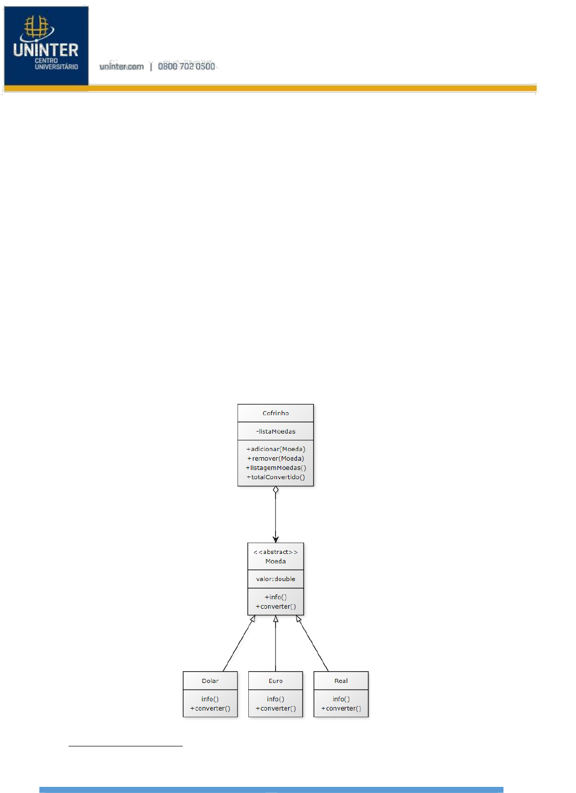 A classe Cofrinho deve possuir como atributo uma coleção de Moedas, que por sua