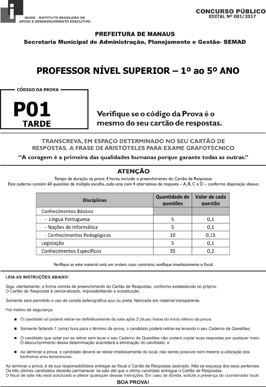 T 02 CONHECIMENTOS BÁSICOS - Língua Portuguesa Questão 01 A) B) C) D) Questão 02 A) B) C) D) Questão 03 A) B) C) D) 03 Questão 04 A) B) C) D) Questão 05 A) B) C) D) - NOÇÕES DE INFORMÁTICA Questão 06 A) B) C) D) Questão 07 A) B) C) D) Questão 08 A) B) C) D) Questão 09 A) B) C) D) Questão 10 A) B) C) D) 04 - CONHECIMENTOS PEDAGÓGICOS Questão 11 A) B) C) D) Questão 12 A) B) C) D) Questão 13 A) B) C) D) 05 Questão 14 A) B) C) D) Questão 15 A) B) C) D) Questão 16 A) B) C) D) 06 Questão 17 A) B) C) D) Questão 18 A) B) C) D) Questão 19 A) B) C) D) Questão 20 A) B) C) D) 07 LEGISLAÇÃO Questão 21 A) B) C) D) Questão 22 A) B) C) D) Questão 23 A) B) C) D) Questão 24 A) B) C) D) 08 Questão 25 A) B) C) D) CONHECIMENTOS ESPECÍFICOS Questão 26 A) B) C) D) Questão 27 A) B) C) D) 09 Questão 28 A) B) C) D) Questão 29 A) B) C) D) Questão 30 A) B) C) D) 10 Questão 31 A) B) C) D) Questão 32 A) B) C) D) 11 Questão 33 A) B) C) D) Questão 34 A) B) C) D) 12 Questão 35 A) B) C) D) Questão 36 A) B) C) D) Questão 37 A) B) C) D) Questão 38 A) B) C) D) 13 Questão 39 A) B) C) D) Questão 40 A) B) C) D) Questão 41 A) B) C) D) 14 Questão 42 A) B) C) D) Questão 43 A) B) C) D) 15 Questão 44 A) B) C) D) Questão 45 A) B) C) D) Questão 46 A) B) C) D) Questão 47 A) B) C) D) Questão 48 A) B) C) D) 16 Questão 49 A) B) C) D) Questão 50 A) B) C) D) Questão 51 A) B) C) D) Questão 52 A) B) C) D) Questão 53 A) B) C) D) Questão 54 A) B) C) D) 17 Questão 55 A) B) C) D) Questão 56 A) B) C) D) Questão 57 A) B) C) D) Questão 58 A) B) C) D) Questão 59 A) B) C) D) 18 Questão 60 A) B) C) D)
