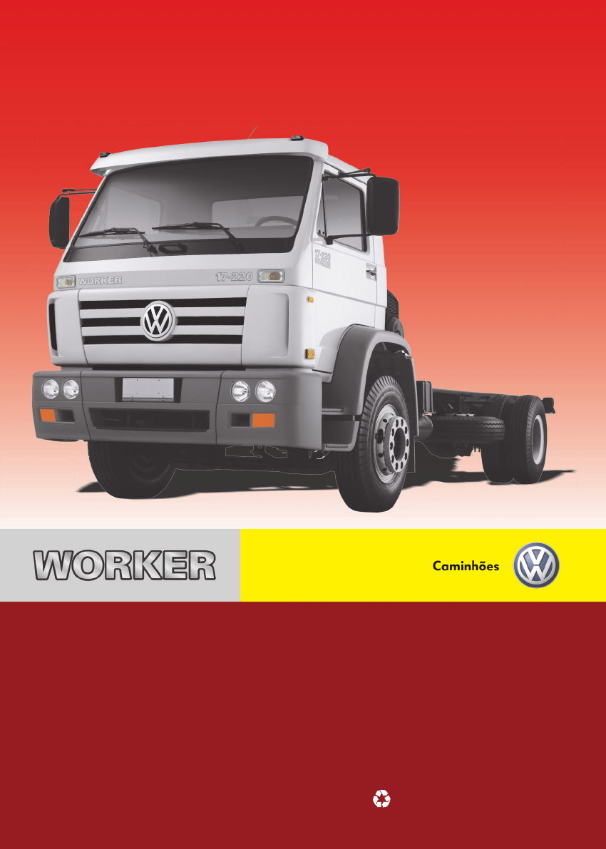 Instruções de Operação VW 13 a 26 toneladas Motor Mecânico Euro III Impresso em papel 100% reciclado. A natureza agradece. APRESENTAÇÃO 1 Estamos agradecidos pela confi ança em nós depositada ao decidir-se por um caminhão Volkswagen Este manual tem o objetivo de familiarizá-lo com o seu Caminhão Volkswagen. Aqui você encontra informações que lhe permitirão um melhor aproveitamento do caminhão. Leia-o atentamente. Dedique especial atenção às revisões, obedecendo aos prazos estabelecidos no Plano de Manutenção. Desta forma, além de assegurar o bom funcionamento de seu caminhão, você não estará comprometendo a sua Garantia. As informações sobre as Revisões e Garantia se encontram num livrete específi co, que você recebe juntamente com este Manual de Instruções. Apresente-o sempre, por ocasião das revisões. À sua disposição, você encontra uma extensa Rede de Concessionários, especial- mente preparada para lhe oferecer a melhor Assistência Técnica. Procure-a sempre que necessário. A OPERAÇÃO CORRETA E A MANUTENÇÃO PREVENTIVA BEM EXECUTADA ALÉM DE DAR AO CAMINHÃO UMA VIDA ÚTIL MAIS LONGA, COM ECONOMIA, CONTRIBUEM PARA A MELHORIA DA QUALIDADE DO AR QUE RESPIRAMOS. Este veículo está em conformidade com o PROCONVE (Programa de Controle da Poluição do Ar por Veículos Automotores). 2 APRESENTAÇÃO Este veículo está em conformidade com o PROCONVE e com todas as leis a ele aplicáveis em todo o território nacional na data de sua fabricação. Certifi que-se de que todas as suas características originais sejam mantidas. A Volkswagen do Brasil Ltda. - Caminhões e Ônibus reserva-se o direito de, a qualquer tempo, revisar, modifi car ou descontinuar estes modelos de seus produtos sem prévio aviso e sem que ela ou o vendedor incorram em qualquer responsabilidade ou obrigação para com o comprador. Para a confecção deste Manual foi tomado como base o caminhão VW com todos os opcionais disponíveis. Portanto, alguns dos equipamentos mencionados podem não fazer parte de seu veículo. Os textos, as ilustrações e as especifi cações constantes neste Manual estão atualizados até a data de sua impressão. Literatura de Bordo Juntamente com este Manual de Instruções de Operação, você recebe também os seguintes manuais: - Manual de Garantia e Manutenção Contém informações detalhadas de assuntos, tais como: - Condição de garantia - Plano de manutenção por grupo de veículo - Trocas de óleo - Controle das revisões - Etc. Leia-o atentamente, a fi m de manter o seu veículo com as características originais e usufruir o melhor possível da garantia que a Volkswagen lhe concede. - Guia da rede de Concessionários Volkswagen - Manual Básico de Segurança no Trânsito - Folheto ChameVolks - Folheto “Breves Instruções” - Manual do Tacógrafo - Folheto Tabela de Fusíveis e Relés APRESENTAÇÃO 3 Índice Nas páginas seguintes, você encontrará a relação dos assuntos abordados, na ordem em que aparecem. Índice alfabético No fi nal deste manual, encontra-se um índice alfabético completo. É possível, por intermédio de palavras-chave, fazer uma rápida consulta aos tópicos mais importantes. Indicação de direções Sempre que uma direção for especifi cada (por exemplo, esquerda, direita, dianteira, traseira, etc.), você deve imaginar-se sentado no veículo, olhando para o sentido de marcha. Se houver uma outra posição diferente, ela será claramente identifi cada. Advertências As NOTAS impressas em destaque (negrito), sem a chamada de ATENÇÃO, referem-se a riscos que poderão dar origem a danos no veículo ou contêm informações particularmente importantes para a correta utilização do seu veículo. Indicações de itens opcionais Por favor, considere que alguns itens assinalados com asterisco podem ser de série para algumas versões e opcionais para outras. Portanto, poderão não estar disponíveis para a versão do seu veículo. O código de venda, constante na Nota Fiscal do veículo, vai defi nir os opcionais disponíveis em seu veículo. Indicações sobre defesa do meio ambiente Os textos assinalados com este símbolo e impressos em itálico contêm informações ou indicações importantes sobre a defesa do meio ambiente. Importante A literatura de bordo é parte integrante do veículo. Assim, quando vender o seu veículo, entregue ao novo proprietário a literatura de bordo completa, dando-lhe as mesmas condições que você teve ao adquirir o veículo novo. ATENÇÃO Todos os textos, impressos em negrito logo após as chamadas de ATENÇÃO, são alertas sobre a sua segurança e advertem para possíveis riscos de acidente ou ferimentos. Como utilizar a literatura de bordo 4 APRESENTAÇÃO Os caminhões Volkswagen foram projetados para desempenhar todos os tipos de tarefas. Suas opções de chassi, motor e relações de transmissão cobrem as mais variadas necessidades de transporte de carga. Para que possa ser utilizado da maneira mais efi caz, o seu caminhão Volkswagen precisa ser benefi ciado de alguma forma, recebendo o equipamento que melhor se ajuste à sua utilização. Ao confi ar o encarroçamento do seu caminhão a um benefi ciador, escolha aquele que seja reconhecido pelos órgãos governamentais para ter a garantia de que seu caminhão estará em estrita observância às normas de tráfego e de segurança em serviço (Código Nacional de Trânsito - CNT). Dê também preferência a um benefi ciador que utilize o “Manual de Benefi ciamento dos Caminhões Volkswagen”. Dessa forma você terá a certeza de que a qualidade com que foi produzido o seu caminhão continuará intacta após o encarroçamento. Benefi ciamento do caminhão CONTEÚDO 5 3. CONDUÇÃO ECONÔMICA Condições gerais ...........................3.02 Hábitos de condução .....................3.04 Uso do tacômetro (contagiros) ......3.04 4. CONDUÇÃO SEGURA Posição do motorista ....................4.02 Condiç