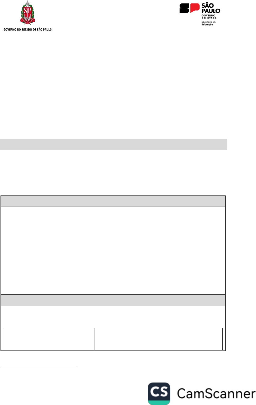 SECRETARIA DE ESTADO DA EDUCAÇÃO DIRETORIA DE ENSINO DA REGIÃO SUL - 2 Rua Barão de Jaceguai, 1967 – Campo Belo – São Paulo – SP - CEP: 04606-004 Telefone: (011) 5042-9500 – e-mail: desu2@educacao.sp.gov.br Plano de Trabalho do professor especializado do Projeto Ensino Colaborativo São Paulo, agosto de 2024 Equipe de Educação Especial1 Tema: Documento orientador para o professor do Projeto Ensino Colaborativo Elementos Constitutivos do Plano de Trabalho Na Tabela 01, disponibilizamos os elementos constitutivos do Plano de Trabalho. Tabela 01 – Elementos constitutivos do Plano de Trabalho 1. Identificação da Unidade Escolar 2. Unidade Escolar: 3. Diretor de escola: 4. Vice-diretor: 5. Coordenador de Gestão Pedagógica (CGP): 6. Professor especializado do Projeto Ensino Colaborativo: 7. Níveis/ Modalidade de Ensino: (Ensino Fundamental/ Ensino Médio – Educação de Jovens e Adultos (EJA); Atendimento Educacional Especializado – AEE) 1.1.Quantidade de estudante elegível da Educação Especial Quantidade de estudantes elegíveis da Educação Especial 1 Supervisoras de Educação Especial: Marcia Pupo e Sonia Alves PEC de Educação Especial: Sheila Camargo e Ana Garcia SECRETARIA DE ESTADO DA EDUCAÇÃO DIRETORIA DE ENSINO DA REGIÃO SUL - 2 Rua Barão de Jaceguai, 1967 – Campo Belo – São Paulo – SP - CEP: 04606-004 Telefone: (011) 5042-9500 – e-mail: desu2@educacao.sp.gov.br matriculado na escola (colocar o nome da escola) Quantidade de estudantes elegíveis da Educação Especial matriculado no Atendimento Educacional Especializado (AEE) Fonte: Quadro elaborado a partir das informações da Secretaria Escolar Digital (SED) (SÃO PAULO, 2024)2. 1.2. Definir meta Encaminhamento: As metas são compostas por três partes: Objetivo + Valor + Prazo Exemplo: Desenvolver 100% de práticas pedagógicas inclusivas na Unidade Escolar em 2024. 2. Ação do professor especializado do Projeto Ensino Colaborativo – mês 2024 Encaminhamento: Neste momento, a Equipe Gestora e o professor especializado do Projeto Ensino Colaborativo devem elaborar as ações, com foco no artigo 18, da Resolução Seduc 21, de 21 de junho de 2023 (SÃO PAULO, 2023)3. 2.1 Ação Descrever a ação Encaminhamento: A ação deve ser elaborada com base no artigo 18, da Resolução Seduc 21, de 21 de junho de 2023 (SÃO PAULO, 2023)4 para alcançar a meta. 2 SÃO PAULO. (Estado). Secretaria da Educação. Secretaria Escolar Digital 2024. 2024. 3 SÃO PAULO. (Estado). Secretaria da Educação. Resolução Seduc 21, de 21 de junho de 2023. 2023 4 SÃO PAULO. (Estado). Secretaria da Educação. Resolução Seduc 21, de 21 de junho de 2023. 2023 2024. 2024. SECRETARIA DE ESTADO DA EDUCAÇÃO DIRETORIA DE ENSINO DA REGIÃO SUL - 2 Rua Barão de Jaceguai, 1967 – Campo Belo – São Paulo – SP - CEP: 04606-004 Telefone: (011) 5042-9500 – e-mail: desu2@educacao.sp.gov.br Iniciar a escrita da ação com verbo no infinitivo. Os verbos no infinitivo terminam em “–ar”, “-er”, “-ir”. Ação Responsável Início Término 01 02 Etapas Encaminhamento As etapas devem ser iniciadas com verbo no gerúndio. Os verbos no gerúndio terminam em “-ndo”. Etapa Responsável Início Término 01 02 3. Ação da Equipe Gestora – Acompanhar a implementação da ação Encaminhamento Neste momento, a Equipe Gestora deve acompanhar a implementação da ação pelo professor especializado do Projeto Ensino Colaborativo no ensino regular. 4. Ação da Equipe Gestora e professor especializado do Projeto Ensino Colaborativo – Corrigir os rumos (revisitar o plano mensalmente) para assegurar o desenvolvimento de uma educação inclusiva no ensino regular Encaminhamento: Neste instante, a Equipe Gestora e o professor especializado do Projeto Ensino Colaborativo devem revisitar o plano de ação e estruturá-lo para possibilitar a aprendizagem dos estudantes elegíveis da Educação Especial. 5. Ação da Equipe Gestora e professor especializado do Projeto Ensino Colaborativo – Registrar e disseminar boas práticas Encaminhamento SECRETARIA DE ESTADO DA EDUCAÇÃO DIRETORIA DE ENSINO DA REGIÃO SUL - 2 Rua Barão de Jaceguai, 1967 – Campo Belo – São Paulo – SP - CEP: 04606-004 Telefone: (011) 5042-9500 – e-mail: desu2@educacao.sp.gov.br Nesta ocasião, a Equipe Gestora e o professor especializado do Projeto Ensino Colaborativo organizam as práticas exitosas e as apresentam para comunidade escolar. Para possibilitar o desenvolvimento das ações, o professor especializado do Projeto Ensino Colaborativo precisa preencher diariamente suas atividades nas planilhas, que estão disponibilizadas nas Tabelas 02, 03 e 04, visando à construção de uma educação inclusiva de qualidade. Por fim, ofertamos a Tabela 05 para direcionar a organização dos apoios aos estudantes elegíveis da Educação Especial. SECRETARIA DE ESTADO DA EDUCAÇÃO DIRETORIA DE ENSINO DA REGIÃO SUL - 2 Rua Barão de Jaceguai, 1967 – Campo Belo – São Paulo – SP - CEP: 04606-004 Telefone: (011) 5042-9500 – e-mail: desu2@educacao.sp.gov.br Tabela 02 – Registro de atividades desenvolvidas no Projeto Ensino Colaborativo Registro de atividades desenvolvidas no Projeto Ensino Colaborativo Nome do professor do Projeto Ensino Colaborativo: Data Ano/Série Período (Manhã/Tarde) Componente Curricular Professor regente Atividade desenvolvida (professor regente) SECRETARIA DE ESTADO DA EDUCAÇÃO DIRETORIA DE ENSINO DA REGIÃO SUL - 2 Rua Barão de Jaceguai, 1967 – Campo Belo – São Paulo – SP - CEP: 04606-004 Telefone: (011) 5042-9500 – e-mail: desu2@educacao.sp.gov.br Tabela 03 - Registro de atividades desenvolvidas no Projeto Ensino Colaborativo Registro de atividades desenvolvidas no Projeto Ensino Colaborativo Data Atividade desenvolvida – (professor do projeto ensino colaborativo) SECRETARIA DE ESTADO DA EDUCAÇÃO DIRETORIA DE ENSINO DA REGIÃO SUL - 2 Rua Barão de Jaceguai, 1967 – Campo Belo – São