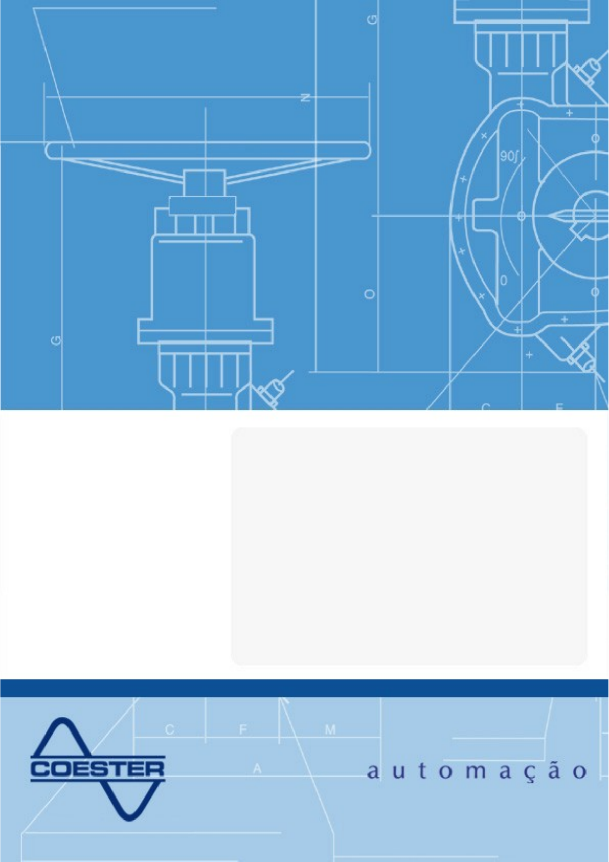 Manual Atuador - Linha CSRM MANUAL MANUAL Atuador - Linha CSR_M Eletrônica Modular Coester Automação Ltda CNPJ: 88.000.955/0001-90 – IE 124/0044523 – Rua Jacy Porto, 1157 – São Leopoldo – RS – Brasil – CEP 93025-120 Fones: +55 51 4009.4200 – Fax: +55 51 4009.4266 - www.coester.com.br – info@coester.com.br Atuador - Linha CSR_M Eletrônica Modular Emissão Original: Julho/2009 Versão: 0 Revisão: 2 Código: MN057 Eletrônica Modular Pag.: 1 mailto:info@coester.com.br http://www.coester.com.br/ Coester Automação Ltda CNPJ: 88.000.955/0001-90 – IE 124/0044523 – Rua Jacy Porto, 1157 – São Leopoldo – RS – Brasil – CEP 93025-120 Fones: +55 51 4009.4200 – Fax: +55 51 4009.4266 - www.coester.com.br – info@coester.com.br Sumário 1 Introdução...........................................................................................................................5 2 Operação do Atuador..........................................................................................................5 3 Operação LOCAL................................................................................................................5 3.1.1 Botoeira de Comando..........................................................................................6 3.1.2 Botoeira de Seleção do Modo de Operação........................................................6 3.1.2.1 Seletor de Modo na posição Remoto...........................................................6 3.1.2.2 Seletor de Modo na posição Local................................................................6 3.1.2.3 Seletor de Modo na posição Desligado........................................................6 3.1.2.4 Botão Parada de Emergência (Parada Local)..................................................6 3.1.3 Sinalizador Aberto, Fechado e Intermediário.......................................................6 3.1.4 Display LCD..........................................................................................................7 3.1.5 Indicador Mecânico de Posição...........................................................................7 3.2 Modos e Estados de Operação...................................................................................7 3.2.1 Modos Desligado, Local e Remoto......................................................................7 3.2.1.1 Modo Local....................................................................................................7 3.2.1.2 Modo Desligado............................................................................................7 3.2.1.3 Modo Remoto................................................................................................7 3.2.2 Estados de Operação (Power Up, Aberto, Fechado, Abrindo, Fechando, Parado)..........................................................................................................................8 3.2.2.1 Estado Power Up..........................................................................................8 3.2.2.2 Estado Aberto................................................................................................8 3.2.2.3 Estado Fechado............................................................................................8 3.2.2.4 Estado Abrindo..............................................................................................8 3.2.2.5 Estado Fechando..........................................................................................9 3.2.2.6 Estado Parado..............................................................................................9 3.3 Indicações do Display LCD.........................................................................................9 3.3.1 Modo Power Up....................................................................................................9 3.3.2 Modo Normal......................................................................................................10 3.3.3 Modo Sequencial................................................................................................10 3.4 Alarmes......................................................................................................................10 4 Descrição do Controlador.................................................................................................12 4.1 Descrição do Sistema................................................................................................13 4.2 Componentes do Sistema.................................................................................13 4.2.1 Painel.............................................................................................................13 4.2.2 Célula de carga..............................................................................................14 4.2.4 I/O Remoto Analógico....................................................................................14 4.2.5 Barreira Ex ''i''.................................................................................................14 4.2.6 Fonte..............................................................................................................14 4.2.7 Placa transformadora trifásica.......................................................................15 4.2.8 Posição...........................................................................................................15 4.2.9 Interface de rede............................................................................................15 Eletrônica Modular Pag.: 2 http://www.coester.com.br/ mailto:info@coester.com.br Coester Automação Ltda CNPJ: 88.000.955/0001-90 – IE 124/0044523 – Rua Jacy Porto, 1157 – São Leopoldo – RS – Brasil – CEP 93025-120 Fones: +55 51 4009.4200 – Fax: +55 51 4009.4266 - www.coester.com.br – info@coester.com.br 4.3 Interface Externa...................................................................
