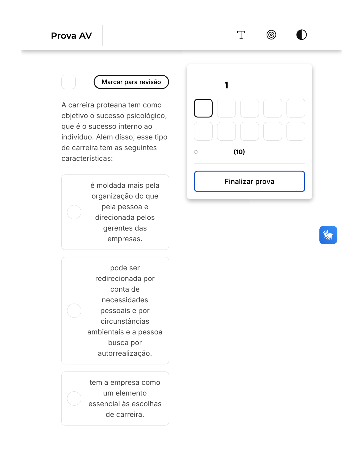 A B C 1 A carreira proteana tem como objetivo o sucesso psicológico, que é o sucesso interno ao indivíduo. Além disso, esse tipo de carreira tem as seguintes características: é moldada mais pela organização do que pela pessoa e direcionada pelos gerentes das empresas. pode ser redirecionada por conta de necessidades pessoais e por circunstâncias ambientais e a pessoa busca por autorrealização. tem a empresa como um elemento essencial às escolhas de carreira. Questão de 10 Em branco 1 2 3 4 5 6 7 8 9 10 Desenvolvimento Pessoal,… Firefox https://estacio.saladeavaliacoes.com.br/prova/687b998bd309f509c74d87e0/ 1 of 13 19/07/2025, 10:12 D E A B C tem como critério de sucesso a remuneração. apresenta a possibilidade de que a competição por vagas de emprego seja constante e leva a pessoa a concorrer todo o tempo por uma remuneração elevada. 2 Escolha a opção que não se configure como uma tendência na forma de trabalhar, nos próximos 10�15 anos: Flexibilidade nos horários de trabalho. Aprendizagem rápida e continuada. Menos horas de trabalho, mas com maior produtividade. Firefox https://estacio.saladeavaliacoes.com.br/prova/687b998bd309f509c74d87e0/ 2 of 13 19/07/2025, 10:12 D E A B O cliente como foco do trabalho e das relações. Desenvolvimento de toda a carreira em uma empresa. 3 Predominante até os anos 1980, a carreira organizacional fez parte de um contexto menos competitivo do que o atual. As empresas investiam fortemente em treinamentos, dependiam muito da produtividade das pessoas e buscavam premiar a permanência dos empregados mantendo sistemas de cargos altamente hierárquicos. Além dessas características, podemos afirmar que a carreira organizacional: é gerenciada mais pela pessoa do que pela organização. tem a estrutura organizacional como prioridade. Firefox https://estacio.saladeavaliacoes.com.br/prova/687b998bd309f509c74d87e0/ 3 of 13 19/07/2025, 10:12 C D E A B C acontece no mercado internacional de trabalho. tem o objetivo de desenvolvimento da sociedade. leva a pessoa a mudar de emprego constantemente. 4 A respeito das suposições enumeradas a seguir, indique qual melhora a qualidade de vida no trabalho: Trabalhar 60 horas por semana quando for necessário. Uma chefia que motiva os colaboradores com gritos. Um pequeno escritório equipado para o trabalho. Firefox https://estacio.saladeavaliacoes.com.br/prova/687b998bd309f509c74d87e0/ 4 of 13 19/07/2025, 10:12 D E A B C D E Um salário um pouco abaixo da média no mercado. Um emprego sem possibilidades de promoção. 5 Indique qual das afirmações é incorreta sobre a construção do senso de propósito: Acontece em longo prazo. Tem um caráter sólido. Deve ser socialmente irrelevante. Tem um sentido individual. Tem um sentido externo. Firefox https://estacio.saladeavaliacoes.com.br/prova/687b998bd309f509c74d87e0/ 5 of 13 19/07/2025, 10:12 6 Os impactos da Quarta Revolução Industrial atravessam a economia, os negócios, a política, a sociedade e o indivíduo ¿ do macro ao micro. No que tange as questões de economia e negócios, as relações de trabalho, profissão e carreira são diretamente influenciados. Abordando as tendências do trabalho, o Fórum Econômico Mundial apresenta uma lista das 10 competências de maior relevância. Sobre estas, complete as lacunas. I. A capacidade de identificar a essência de um problema, dividi-lo em partes e pensar em uma solução não convencional refere-se ao ______________________. II. A busca por atualização contínua, buscando estratégias de aprendizagem em diversos espaços diz respeito a________________________. III. Analisar problemas e/ou situações, questionando e pensando em diferentes alternativas antes de chegar a conclusões refere-se a capacidade de ______________________ IV. Delimitar e avaliar um sistema por meio de critérios Firefox https://estacio.saladeavaliacoes.com.br/prova/687b998bd309f509c74d87e0/ 6 of 13 19/07/2025, 10:12 A B C definidos, e elaborar um processo de melhoria refere-se a capacidade de_____________ Assinale a alternativa que completa as lacunas, sequencialmente. Pensamento analítico e inovação. Aprendizagem ativa e estratégia de aprendizagem. Pensamento crítico e análise. Análise e avaliação de sistemas. Pensamento crítico e análise. Aprendizagem ativa e estratégia de aprendizagem. Análise e avaliação de sistemas. Pensamento analítico e inovação. Raciocínio, resolução de problemas e ideação. Raciocínio, resolução de problemas e ideação. Pensamento crítico e análise. Análise e avaliação de sistemas. Firefox https://estacio.saladeavaliacoes.com.br/prova/687b998bd309f509c74d87e0/ 7 of 13 19/07/2025, 10:12 D E Análise e avaliação de sistemas. Inteligência emocional. Análise e avaliação de sistemas. Pensamento analítico e inovação. Pensamento analítico e inovação. Aprendizagem ativa e estratégia de aprendizagem. Análise e avaliação de sistemas. Pensamento crítico e análise. 7 A Atuação da gerência é central para as organizações encararem os desafios de se apresentam na contemporaneidade. Neste sentido avalie as assertivas: I � A atuação da média gerência requer cada vez mais a formação de equipes multifuncionais e multidisciplinares. II � A estrutura das organizações precisa ser mais verticalizadas mais circular. III � A gestão deve ser mais circular e impactar os modelos Firefox https://estacio.saladeavaliacoes.com.br/prova/687b998bd309f509c74d87e0/ 8 of 13 19/07/2025, 10:12 A B C D E de gestão por competência, e processo de gestão de desempenho. Marque a alternativa correta: Somente I está correta. Somente II está correta. Somente III está correta. I e II estão corretas. I e III estão corretas. 8 O acróstico VUCA �Volatilidade, incerteza, complexidade e ambiguidade) buscou descrever as características transformadoras das sociedades do século XXI. Entretanto, o impacto da pandemia de SARS�Cov 19 levou aos estudiosos a