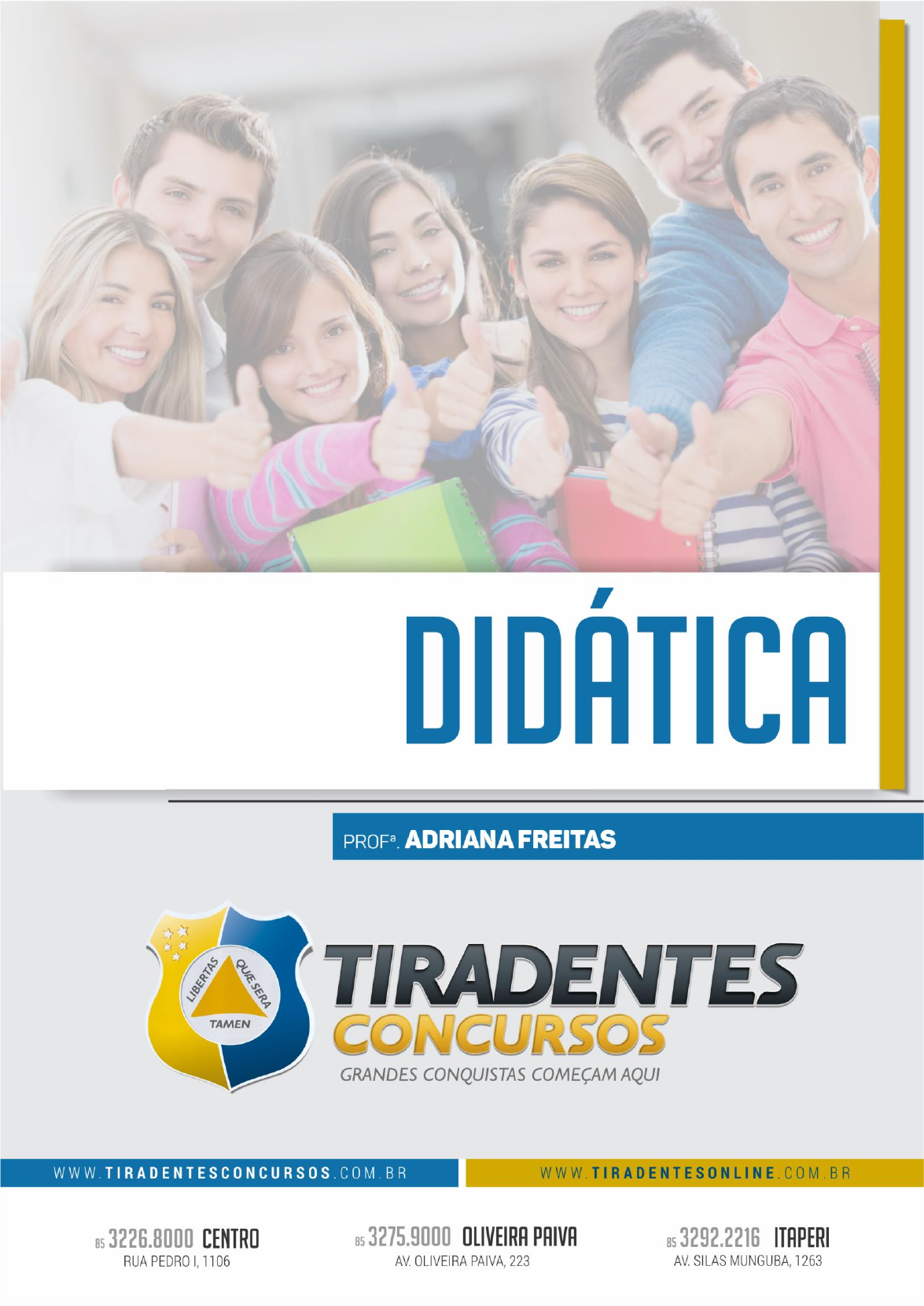 PÁG.1 PÁG.2 1. EDUCAÇÃO BRASILEIRA: TEMAS EDUCACIONAIS E PEDAGÓGICOS: (Breve) história do pensamento pedagógico brasileiro. .................................................. 01 2. A DIDÁTICA E O PROCESSO DE ENSINO E APRENDIZAGEM ............................................ 10 3. PRINCIPAIS TEORIAS DA APRENDIZAGEM. ..................................................................... 19 4. TEORIAS DO CURRÍCULO .................................................................................................. 33 5. ASPECTOS LEGAIS E POLÍTICOS DA ORGANIZAÇÃO DA EDUCAÇÃO BRASILEIRA. ........ 43 6. POLÍTICAS EDUCACIONAIS PARA A EDUCAÇÃO BÁSICA. ................................................ 51 7. LEGISLAÇÃO BÁSICA DA EDUCAÇÃO ............................................................................... 66 DIDÁTICA PROFª. ADRIANA FREITAS PÁG.1 1. EDUCAÇÃO BRASILEIRA: TEMAS EDUCACIO- NAIS E PEDAGÓGICOS: (Breve) história do pen- samento pedagógico brasileiro. A educação brasileira começa a ter autonomia com o desen- volvimento das teorias da Escola Nova, no final do século XIX, pois nosso pensamento pedagógico reproduzia o religioso medi- eval. Graças ao pensamento iluminista trazido da Europa por intelectuais e estudantes de formação laica, positivista, liberal, a teoria da educação brasileira pôde dar alguns passos. A criação da Associação Brasileira de Educação (ABE), em 1924, foi fruto do projeto liberal da educação que tinha, entre outros componentes, um grande otimismo pedagógico: recons- truir a sociedade através da educação. Reformas importantes, realizadas por intelectuais na década de 20, impulsionaram o debate educacional, superando gradativamente a educação jesuí- tica tradicional, conservadora, que dominava o pensamento pe- dagógico brasileiro desde os primórdios. O domínio dos jesuítas havia sofrido um retrocesso durante apenas um curto espaço de tempo, entre 1759 e 1772. O obscurantismo português sobre a colônia era tanto que, em 1720, a metrópole proibiu a imprensa em todo o Brasil, na tentativa de mantê-la isolada de influências externas. Os jesuítas nos deixaram um ensino de caráter livresco e repe- titivo, que estimulava a competição por meio de prêmios e casti- gos. Discriminatórios e preconceituosos, os jesuítas dedicaram-se à formação das elites coloniais e difundiram nas classes populares a religião da obediência, da dependência e do paternalismo, características marcantes de nossa cultura ainda hoje. Uma edu- cação que reproduzia uma sociedade perversa, dividida entre analfabetos e doutores. Um balanço da educação até o final do Império está em dois pareceres de Rui Barbosa (18491923): o primeiro sobre o ensino secundário e superior, e o segundo sobre o ensino primário, apresentados ao Parlamento, respectivamente, em 1882 e 1883. Neles Rui Barbosa prega a liberdade de ensino, e a instrução obrigatória. A reforma sugerida por ele inspirava-se nos sistemas educacionais da Inglaterra, da Alemanha e dos Estados Unidos. O balanço mostrava o nosso atraso educacional, a fragmenta- ção do ensino e o descaso pela educação popular, que predomi- naram até o Império. A República prometia levar a questão edu- cacional a sério. Em 1890, os republicanos criaram o Ministério da Instrução junto com os Correios e Telégrafos. Em 1931, o Ministé- rio da Justiça seria associado à Saúde Pública. A educação foi interesse constante também do movimento anarquista no Brasil no início do século XX. Para os anarquistas, a educação não era o único nem o principal agente desencadeador do processo revolucionário. Entretanto, se não ocorressem mu- danças profundas na mentalidade das pessoas, em grande parte promovidas pela educação, a revolução social desejada jamais teria êxito. Este posicionamento dos anarquistas em relação à educação derivava do princípio da liberdade: os libertários eram contra a opressão e a coerção. O movimento anarquista no Brasil era profundamente influen- ciado pelo europeu através de livros, revistas e jornais. Essa in- fluência é claramente percebida quando se comparam duas inici- ativas educacionais promovidas em São Paulo: a Escola Libertária Germinal, que não foi em frente, e a Escola Moderna, destinada à educação de crianças da classe operária, inspirada na obra de Francisco Ferrer. O ensino libertário ministrado pelas escolas modernas encer- rou-se, pelo menos na capital de São Paulo e em São Caetano, em 1919. Aquele ano foi marcado por fortes tensões entre os anarquistas e as autoridades, especialmente porque circulavam informações de que estava sendo promovida no Rio de Janeiro, com a participação de anarquistas, uma conspiração visando à derrubada do governo. Entretanto, desde 1915 já vinha se confi- gurando um quadro bem pouco favorável à sobrevivência do ensino racionalista tal como fora proposto por Ferrer. O naciona- lismo e a consequente decisão do governo de imprimir novas diretrizes no campo da educação foram outros fatores que con- tribuíram para o encerramento da mais avançada experiência libertária no país. O pensamento pedagógico libertário teve como principal di- fusora a educadora Maria Lacerda de Moura (18871944), comba- tendo principalmente o analfabetismo. Em Lições de Pedagogia (1925), Moura propôs uma educação que incluísse educação física, educação dos sentidos e o estudo do crescimento físico. Amparando-se em Binet, Claparede e Mon- tessori, afirmava que, além das noções de cálculo, leitura, língua, pátria e história, seria preciso estimular associações e despertar a vida interior da criança para que houvesse uma autoeducação. Dizia ela que era preciso declarar guerra ao analfabetismo, mas também à ignorância presumida, ao orgulho tolo, à vaidade vulgar, à pretensão, à ambição, ao egoísmo, à intolerância e aos preconceitos, em suma: gu