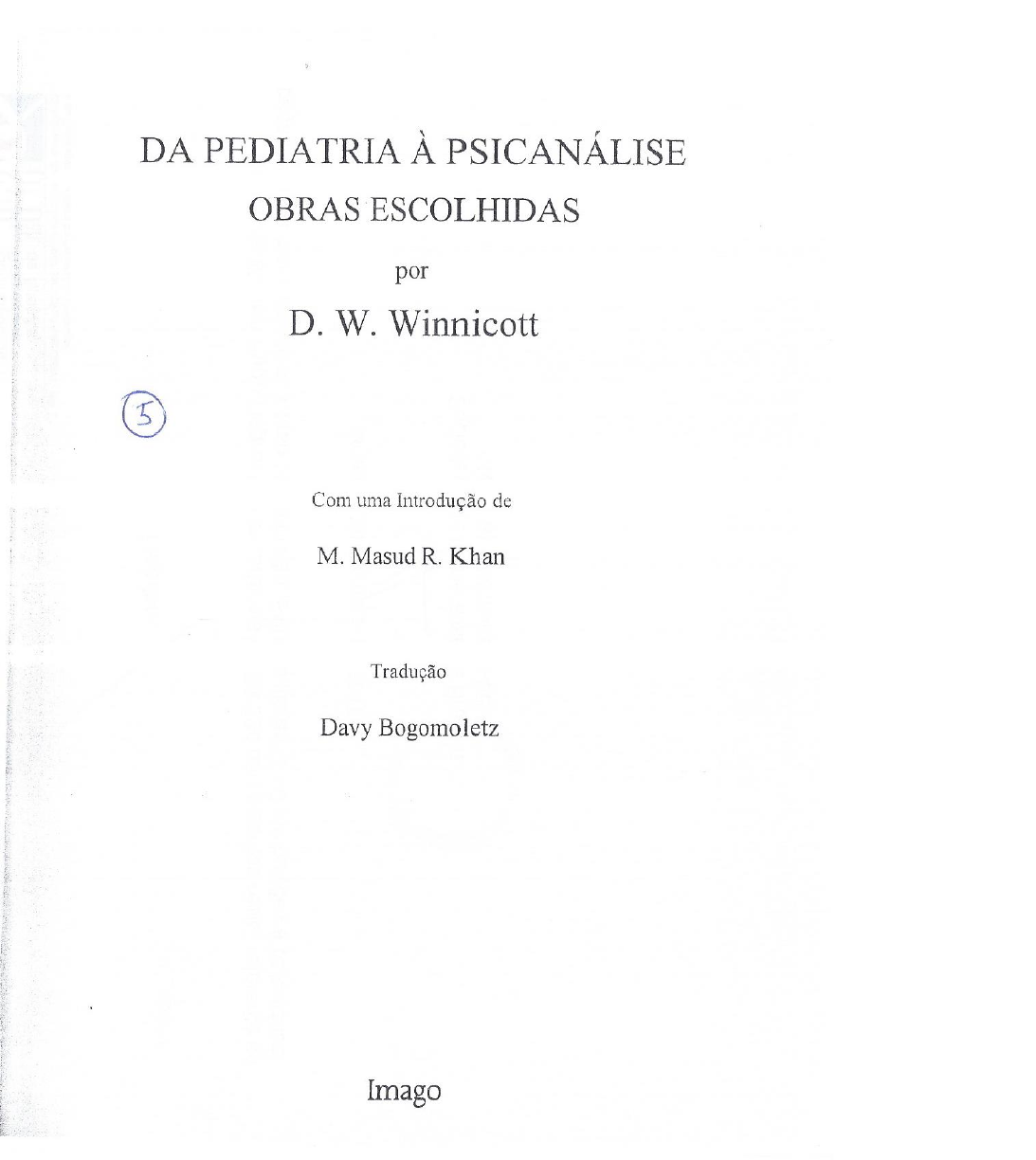 DA PEDIATRIA À PSICANÁLISE OBRAS ESCOLHIDAS por D. W. Winnicott 5 Com uma Introdução de M. Masud R. Khan Tradução Davy Bogomoletz Imago398 D. W. WINNICOTT ocorreram, provocaram rupturas. É esta parte do trabalho que liberta o pa- Capítulo XXIV ciente de sua dependência ao analista. Desta maneira, a transferência negativa da análise 'neurótica' é substi- tuída por uma raiva objetiva contra as falhas do analista, e aqui temos outra vez uma importante diferença entre os fenômenos transferenciais nos dois tipos de trabalho. A Preocupação Materna Primária Não devemos esperar que os nossos êxitos na adaptação sejam reconhe- (1956) cidos, pois estes não são percebidos como tais num nível mais profundo. Embora não tenhamos como trabalhar sem as teorias que construímos em nossas discussões, esse tipo de trabalho inevitavelmente nos colocará na condição de farsantes, caso tentemos entender as necessidades do paciente como uma questão mais do intelecto que do psicossoma. Em meu trabalho clínico comprovei, ao menos para mim mesmo, que um tipo de análise não exclui outro. Encontro-me sempre escorregando de A PRESENTE CONTRIBUIÇÃO encontrou o seu estímulo na discussão publicada um para o outro e vice-versa, segundo a tendência do processo inconsciente em The Psychoanalytic Study of the Child, vol. IX, sob título: 'Problems of do paciente. Quando o trabalho de natureza especial ao qual me referi chega Infantile Neurosis'. As diversas contribuições da Srta. Freud nessa discus- a um fim, tem início naturalmente o trabalho analítico normal, a análise da são perfazem uma importante declaração sobre estado atual da teoria psi- posição depressiva e das defesas neuróticas de um paciente dotado de um canalítica no que tange aos estágios muito iniciais da vida da criança e à ego, um ego intacto, um ego capaz de ter experiências proporcionadas por construção da personalidade. impulsos do id e responsabilizar-se por elas. O que precisamos fazer agora é Gostaria de discutir a questão do relacionamento mãe-bebê em sua eta- estudar detalhadamente critérios pelos quais o analista tenha como saber pa inicial, questão esta de importância máxima nessa fase, e que só gradual- quando mudar a ênfase do trabalho, e como perceber que está surgindo uma mente passa a segundo plano em relação à questão do bebê enquanto um ser necessidade do tipo que a meu ver deve encontrar resposta (ao menos de independente. modo simbólico) através de uma adaptação ativa, enquanto o analista man- Sinto necessidade de em primeiro lugar apoiar o que diz a Srta. Freud no tém sempre em mente o conceito de identificação primária. item Atuais': Os desapontamentos e as frustrações são in- separáveis da relação mãe-criança. (...) Lançar a culpa pela neurose infantil sobre as falhas da mãe na fase oral constitui não mais que uma generalização enganosa e superficial. A análise deveria ir mais longe e mais fundo em sua busca pelas causas da neurose.' Com estas palavras, a Srta. Freud expressa um ponto de vista geralmente aceito pelos psicanalistas. Apesar disto, seria muito proveitoso levarmos em conta o lugar da mãe. Existe algo que chamamos de ambiente não suficientemente bom, que dis- torce o desenvolvimento do bebê, assim como existe o ambiente suficiente- mente bom, que possibilita ao bebê alcançar, a cada etapa, as satisfações, ansiedades e conflitos inatos e pertinentes. A Srta. Freud nos faz lembrar que é lícito pensar sobre os padrões pré- genitais em termos de duas pessoas que, juntas, tentam alcançar o que pode- ria ser chamado, resumidamente, de 'equilíbrio homeostático' (ver Mahler, 1954). O mesmo fenômeno recebe o nome de Diz-se freqüentemente que a mãe de um bebê é biologicamente condiciona-400 D. W. WINNICOTT DA PEDIATRIA À PSICANÁLISE 401 da para a sua tarefa de lidar de modo todo especial com as necessidades do Seja como for, um estudo aprofundado da função materna nas fases mais bebê. Em linguagem mais comum, existe uma identificação consciente primitivas parece-me extremamente necessário, e eu gostaria de reunir aqui as mas também profundamente inconsciente que a mãe tem com o seu bebê. diversas pistas existentes a fim de formular uma proposta para debate. Acredito que esses vários conceitos e noções deveriam ser reunidos num conjunto, e que estudo da mãe deveria ser trazido para fora do campo puramente biológico. O termo simbiose não nos leva mais longe que à com- A preocupação materna paração entre o relacionamento da mãe e bebê com outros exemplos da vida animal e vegetal a interdependência física. As palavras equilíbrio Minha tese é a de que na primeira de todas as fases estaríamos lidando homeostático evitam certos aspectos mais sutis que surgem ao nosso olhar, com um estado muito especial da mãe, um estado psicológico que merece quando observamos esse relacionamento com a atenção que lhe é devida. um nome, tal como Preocupação Materna Primária. No meu entender, não O que nos interessa é a enorme diferença psicológica entre, por um foi dada ainda a devida atenção em nossa literatura, e talvez em parte algu- lado, a identificação da mãe com o bebê, e por outro, a dependência do bebê ma, para uma condição psiquiátrica muito especial da mãe sobre a qual eu poderia dizer o seguinte: em relação à mãe. A dependência não implica em identificação, pois esta última constitui um fenômeno complexo demais para que o localizemos nos Gradualmente, esse estado passa a ser o de uma sensibilidade exacerbada du- primeiros estágios da vida do bebê. rante e principalmente ao final da gravidez. Sua duração é de algumas semanas após o nascimento do bebê. A Srta. Freud deixa claro que já estamos bem longe daquela desajeitada Dificilmente as mães recordam depois que ultrapassaram. fase da teoria psicanalítica em que falávamos da vida do bebê como se esta Eu daria 