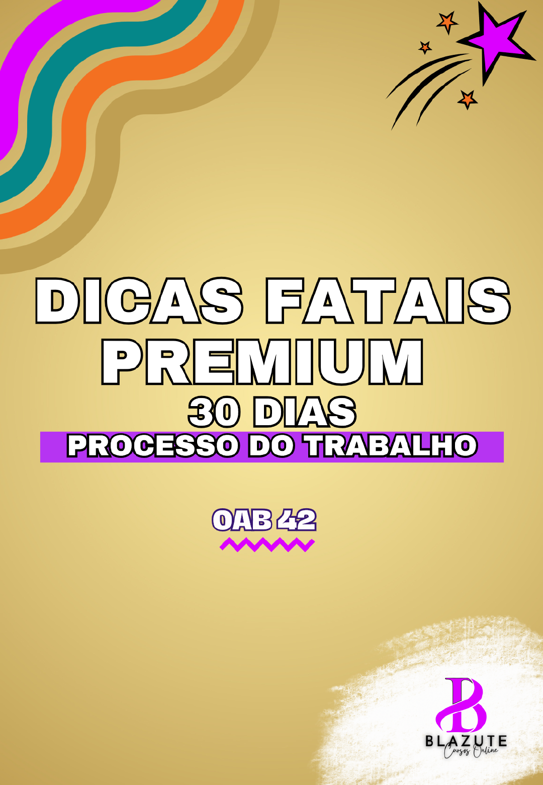 DICAS FATAIS PREMIUM 30 DIAS PROCESSO DO TRABALHO OAB 42 B BLAZUTE Cursos OnlineB BLAZUTE Material elaborado pela prof. Ana Paula Blazute. arquivo é de envio pessoal. Proibido qualquer tipo de repasse. ! DIREITO PROCESSUAL DO TRABALHO Dicas fatais Blazute Cursos Online 1 São ÓRGÃOS DA JUSTIÇA DO TRABALHO: o Tribunal Superior do Trabalho; os Tribunais Regionais do Trabalho; Juízes do Trabalho. 2 Compete à Justiça do Trabalho processar e julgar: As ações oriundas da relação de trabalho, abrangidos os entes de direito público externo e da administração pública direta e indireta da União, dos Estados, do Distrito Federal e dos Municípios as ações que envolvam exercício do direito de greve; as ações sobre representação sindical, entre sindicatos, entre sindicatos e trabalhadores, e entre sindicatos e empregadores; os mandados de segurança, habeas corpus e habeas data quando o ato questionado envolver matéria sujeita à sua jurisdição; os conflitos de competência entre órgãos com jurisdição trabalhista, ressalvado o disposto no art. 102, I, o; as ações de indenização por dano moral ou patrimonial, decorrentes da relação de trabalho; as ações relativas às penalidades administrativas impostas aos empregadores pelos órgãos de fiscalização das relações de trabalho; VIII a execução, de ofício, das contribuições sociais previstas no art. 195, I, a, e II, e seus acréscimos legais, decorrentes das sentenças que proferir; outras controvérsias decorrentes da relação de trabalho, na forma da lei. 3 As ações acidentárias (previdenciárias), decorrentes de relação de trabalho, são de competência da Justiça Comum, quando propostas pelo empregado perante o INSS. Tribunal Superior do Trabalho compõe-se de vinte e sete Ministros, escolhidos 4 dentre brasileiros com mais de trinta e cinco e menos de setenta anos de idade, de NEW! notável saber jurídico e reputação ilibada, nomeados pelo Presidente da República após aprovação pela maioria absoluta do Senado Federal, sendo: (Redação dada pela Emenda Constitucional n. 122, de 2022) @blazutecursosonline 1B BLAZUTE Material elaborado pela prof. Ana Paula Blazute. arquivo é de envio pessoal. Proibido qualquer tipo de repasse. um quinto dentre advogados com mais de dez anos de efetiva atividade profissional e membros do Ministério Público do Trabalho com mais de dez anos de efetivo exercício, observado o disposto no art. 94; os demais dentre juízes dos Tribunais Regionais do Trabalho, oriundos da magistratura da carreira, indicados pelo próprio Tribunal Superior. Os Tribunais Regionais do Trabalho compõem-se de, no mínimo, sete juízes, 5 recrutados, quando possível, na respectiva região e nomeados pelo Presidente da República dentre brasileiros com mais de trinta e menos de setenta anos de idade, sendo: um quinto dentre advogados com mais de dez anos de efetiva atividade profissional e membros do Ministério Público do Trabalho com mais de dez anos de efetivo exercício, observado o disposto no art. 94; os demais, mediante promoção de juízes do trabalho por antiguidade e merecimento, alternadamente. STF, Súmula 23. A Justiça do Trabalho é competente para processar e julgar ação 6 possessória ajuizada em decorrência do exercício do direito de greve pelos trabalhadores da iniciativa privada. Juiz de Vara do Trabalho e Juiz de Vara do Trabalho do mesmo 7 julgamento no TRT tribunal (ou juiz de direito investido em jurisdição trabalhista) Conflito de competência TRT TRT TRT Juiz de Vara do julgamento no TST Traablaho vinculada a outro TRT Juiz de Vara do Trabalho X Juiz de Vara do Traablho de tribunais diferentes (ou juiz de direito investido em jurisdição trabalhista) Registra-se que não existe conflito de competência entre TRT e Vara do trabalho a ele vinculada. Isso porque, nesse caso, há hierarquia entre os órgãos, devendo a vara acatar a decisão do TRT (TST, Súmula 420). @blazutecursosonline suporteblazute@gmail.com 2B BLAZUTE Material elaborado pela prof. Ana Paula Blazute. arquivo é de envio pessoal. Proibido qualquer tipo de repasse. Súmula Vinculante 22. A Justiça do Trabalho é competente para processar e julgar as 8 ações de indenização por danos morais e patrimoniais decorrentes de acidente de trabalho propostas por empregado contra empregador, inclusive aquelas que ainda não possuíam sentença de mérito em primeiro grau quando da promulgação da Emenda Constitucional 45/04. 9 STJ, Súmula 363. Compete à Justiça estadual processar e julgar a ação de cobrança ajuizada por profissional liberal contra cliente. 10 COMPETÊNCIA TERRITORIAL: Regra: local da prestação do serviço. Empregado agente ou viajante comercial local em que a empresa tenha agência ou filial e o empregado a ela esteja subordinado. Na falta desta localidade: domicílio do empregado ou local mais próximo. Empregador que promove a prestação de serviços fora do lugar da celebração do contrato: a legislação garante ao empregado a opção de optar entre o local da celebração do contrato ou o local de prestação dos serviços. 11 Os empregados e os empregadores poderão RECLAMAR PESSOALMENTE perante a Justiça do Trabalho e acompanhar as suas reclamações até o final (jus postulandi). Nos dissídios individuais os empregados e empregadores poderão fazer-se representar por intermédio do sindicato, advogado, solicitador, ou provisionado, inscrito na Ordem dos Advogados do Brasil. Nos dissídios coletivos é facultada aos interessados a assistência por advogado. 12 Ainda que se trate de relação de emprego, há casos em que o jus postulandi não poderá ser aplicado (TST, Súmula 425; CLT, art. 855-B). jus postulandi NÃO PODE AMAR A EX. A Ação rescisória Também não cabe o jus postulandi nos M Mandado de segurança Processos de jurisdição voluntária para A Ação cautelar homologação de acordos extrajudiciais. R Recursos ao TST A EX Acordo Extraju