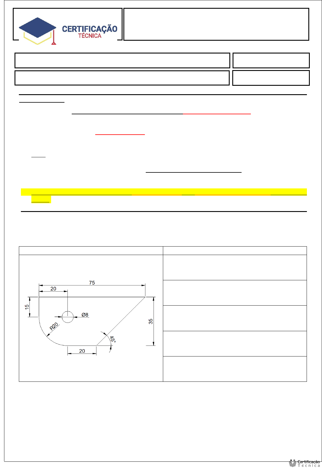 Processos de Fabricação Data: / / Aluno (a): Avaliação Prática Final INSTRUÇÕES: POR FAVOR, LEIA AS INSTRUÇÕES: · Preencha os dados no Cabeçalho para sua identificação; · Esta Avaliação contém 02 (duas) questões, totalizando 10 (dez) pontos; · Leia com atenção os enunciados e faça o que se pede; · As respostas devem ser digitadas abaixo de cada pergunta; · NÃO serão aceitas respostas e textos retirados da íntegra Internet, assim como imagens (desde que seja pedida). A interpretação e execução fazem parte do processo. · Ao terminar grave o arquivo com o nome A.P. Disciplina – Nome do Aluno; · Só serão aceitas as extensões .docx (M.S. Word) ou .PDF; · Envie o arquivo pelo sistema no local indicado; · Atividades enviadas “em branco”, plagiadas de sites ou repetidas de outros alunos, terão notas ZERO. · Em caso de dúvidas consulte o seu Tutor. 1) A partir do croqui exibido abaixo, crie uma sequência de no mínimo 5 procedimentos básicos para a confecção de uma peça em aço SAE 1020. Especifique os passos para execução do corte, do furo oblongo e do chanfro, indicando as ferramentas e máquinas aplicadas. Croqui da peça Procedimentos 1. Corte da chapa: 2. Furação oblonga: 3. Chanfros: 4. Acabamento: 5. Limpeza: RESPOSTAS : 1. Corte da chapa: Ferramenta: Serra de fita ou serra circular. Procedimento: · Prender a chapa na mesa da serra com grampos ou morsa. · Ajustar a altura da lâmina de acordo com a espessura da chapa. · Posicionar a lâmina no local desejado para o corte. · Ligar a serra e iniciar o corte, guiando a chapa ao longo da lâmina. · Desligar a serra após o corte completo. 2. Furação oblonga: Ferramenta: Furadeira de coluna com broca bailarina. Procedimento: · Marcar o centro do furo oblongo na chapa. · Fixar a chapa na mesa da furadeira com grampos ou morsa. · Ajustar a velocidade da furadeira de acordo com o diâmetro da broca. · Posicionar a broca no centro da marcação. · Ligar a furadeira e iniciar a furação, aplicando pressão constante sobre a máquina. · Desligar a furadeira após a furação completa. 3. Chanfros: Ferramenta: Lima triangular ou lima meia-cana. Procedimento: · Posicionar a lima no ângulo desejado para o chanfro. · Movimentar a lima em linha reta ao longo da borda da peça, aplicando pressão constante. · Repetir o processo para todas as bordas que precisam de chanfro. 4. Acabamento: Ferramenta: Lixa para metal. Procedimento: · Lixar a superfície da peça para remover rebarbas e imperfeições. · Utilizar diferentes gramaturas de lixa para obter o acabamento desejado. 5. Limpeza: Procedimento: · Limpar a peça com um pano úmido para remover resíduos de metal e poeira. · Secar a peça com um pano seco. 2) Os processos de fabricação por extrusão e por trefilação se assemelham em parte. Liste as características de cada um e apresente produtos confeccionados a partir de cada um deles. RESPOSTA: Extrusão é um processo de conformação no qual o material é forçado através de uma matriz, de forma similar ao aperto de um tubo de pasta de dentes. Praticamente qualquer forma de seção transversal vazada ou cheia pode ser produzida por extrusão. Como a geometria da matriz permanece inalterada, os produtos extrudados têm seção transversal constante. Dependo da ductilidade do material a extrudar, o processo pode ser feito a frio ou a quente. Cada tarugo1 é extrudado individualmente, caracterizando a extrusão como um processo semicontinuo. O produto é essencialmente uma peça semi-acabada. A extrusão pode combinada com operações de forjamento, sendo neste caso denominada extrusão fria. Os produtos mais comuns são: quadros de janelas e portas, trilhos para portas deslizantes, tubos de várias seções transversais e formas arquitetônicas. Os produtos extrudados podem ser cortados nos tamanhos desejados para gerarem peças, como maçanetas, trancas e engrenagens, como mostrado na figura abaixo. Em operação combinada com forjamento, pode se gerar componentes para automóveis, bicicletas, motocicletas, maquinário pesado e equipamento de transporte. Os materiais mais usados na extrusão são: alumínio, cobre, aço de baixo carbono. magnésio e chumbo. trefilação é uma operação em que a matéria-prima é puxada contra uma matriz (chamada fieira ou trefila) em forma de funil por meio de uma força de tração aplicada do lado de saida da matriz. O escoamento plástico é produzido principalmente pelas forças compressivas provenientes da reação da matriz sobre o material. Normalmente realiza-se a operação a frio. A trefilação é uma operação em que a matéria-prima é puxada contra uma matriz (chamada fieira ou trefila) em forma de funil por meio de uma força de tração aplicada do lado de saída da matriz. O escoamento plástico é produzido principalmente pelas forças compressivas provenientes da reação da matriz sobre o material. Normalmente realiza-se a operação a frio. Vantagens sobre outros processos: - O material pode ser estirado e reduzido em secção transversal mais do que com qualquer outro processo; - A precisão dimensional que pode ser obtida é maior do que em qualquer outro processo exceto a laminação a frio, que não é aplicável às bitolas comuns de arames; - A superfície produzida é uniformemente limpa e polida; - O processo influi nas propriedades mecânicas do material, permitindo, em combinação com um tratamento térmico adequado, a obtenção de uma gama variada de propriedades com a mesma composição química. Processos de Fabricação image1.png image3.jpeg image2.png
