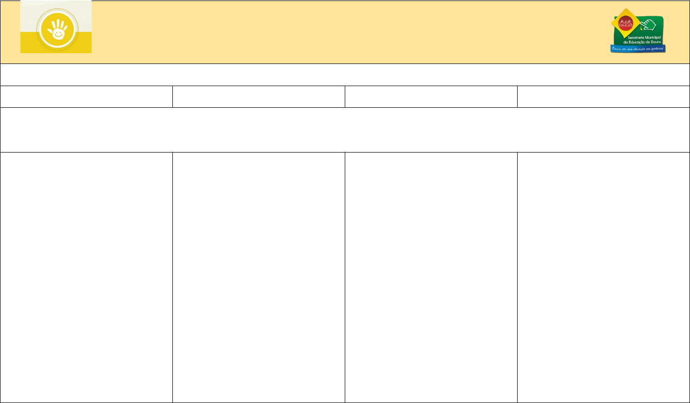 QUESTÕES ORIENTADORAS DA AVALIAÇÃO – EDUCAÇÃO INFANTIL CULTURA CORPORAL EIXO CONTEÚDO OBJETIVOS PERGUNTAS INFANTIL II BRINCADEIRAS DE SITUAÇÕES OPOSITIVAS Ações corporais opositivas como correr, fugir, esquivar-se, driblar, etc. Planejamento e execução de movimentos e ações conscientes das situações motoras de oposição. Coordenação espacial e temporal. Capacidades motoras de velocidade, força, agilidade, etc. Regras do jogo (EI02CG01) Apropriar-se de gestos e movimentos de sua cultura no cuidado de si e nos jogos e brincadeiras. (EI02CG02) Deslocar seu corpo no espaço, orientando-se por noções como em frente, atrás, no alto, embaixo, dentro, fora etc., ao se envolver em brincadeiras e atividades de diferentes naturezas. (EI02CG03) Explorar formas de deslocamento no espaço (pular, saltar, dançar), combinando movimentos e seguindo orientações. (EI02CC06BRU) Buscar soluções para situações corporais de perseguição e fuga pelo espaço do jogo (EI02CC07BRU) Criar ações corporais opositivas O professor deverá encorajar, nesses jogos, a descoberta das ações corporais opositivas e ampliar o repertório infantil, a interação com seus parceiros e a construção de regras nas relações sociais. Utilizar-se de situações lúdicas (jogos e brincadeiras) nas propostas que exercitem o domínio motor: correr, subir, descer, girar, saltar, etc. e que permitam às crianças relacionamento com os conteúdos Exemplos de manifestações das brincadeiras infantis que possuem a relação de “ações corporais: -Corre cotia; Observação dos momentos das ações propostas, registros por imagens e ou vídeo das situações. Considerar o ponto de partida e a evolução dos movimentos infantis, como também repetir várias vezes os movimentos para ampliação e evolução no jogo e em seu espaço. (EI02CC08BRU) Aceitar a oposição corporal do outro buscando criar ações corporais que superem a oposição do outro e/ou criem uma oposição para o outro. (EI02CC09BRU) Dominar maximamente as suas próprias ações corporais. (EI02CC10BRU) Aceitar e compreender as regras do jogo como um meio para todos brincarem bem; (EI02CC11BRU) Compreender e agir com as regras do jogo como uma relação entre motivos e meios para atingir os objetivos; (EI02CC12BRU) Perceber a ação do outro e agir deliberadamente a partir dela; (EI02CC13BRU) Dominar as ações corporais de perseguição e fuga. Como a criança reage ao ser desafiada a correr e esquivar-se durante uma brincadeira? Ela demonstra entender a oposição no movimento dos colegas? Durante as brincadeiras, a criança consegue combinar ações como fugir e driblar? A criança demonstra percepção de noções espaciais e temporais, como antecipar um movimento de oposição? Ela reconhece e aceita as regras do jogo proposto? Quais estratégias a criança usa para superar a oposição? Durante a proposta de atividade de "pega-pega",( por exemplo) como a criança reage ao ser desafiada a desviar e mudar de direção rapidamente? A criança compreende a dinâmica da brincadeira, como alternar entre perseguir e fugir, mantendo-se envolvida na ação? Ela demonstra criatividade ao propor maneiras de escapar ou criar desafios para os colegas? A criança respeita e aplica as regras da brincadeira durante a interação com os colegas? BRINCADEIRAS DE DESTREZA E DESAFIOS CORPORAIS Habilidades locomotoras: ações corporais realizadas pelo corpo em deslocamento pelo espaço (andar, correr, saltar, deslocamento em quatro apoio e suas variações). Habilidades manipulativas: ações corporais realizadas pelas extremidades do corpo em relação a um objeto. (pegar, largar, lançar, encaixar, empilhar, agarrar, espalmar, arremessar, chutar, cabecear, conduzir). Habilidades de estabilização: ações corporais direcionadas ao domínio do corpo em equilíbrio. (girar, rolar, flexionar, puxar, empurrar, transferir o peso do corpo). Auto desafio com níveis de dificuldades gradativos. Ex: Cambalhota. (EI02CG01) Apropriar-se de gestos e movimentos de sua cultura no cuidado de si e nos jogos e brincadeiras. (EI02CG03) Explorar formas de deslocamento no espaço (pular, saltar, dançar), combinando movimentos e seguindo orientações. (EI02CC09BRU) Dominar maximamente as suas próprias ações corporais. (EI02CC15BRU) Aceitar desafiar-se corporalmente. (EI02CC16BRU) Experimentar e ajudar a criar desafios diferentes para um mesmo movimento, ou seja, realizar um mesmo movimento de diferentes formas, amplitudes articulares, planos, força, segmentos corporais, etc A criança explora diferentes formas de deslocamento no espaço, como pular e saltar? Durante uma atividade de equilíbrio (ex.: caminhar sobre uma linha), a criança demonstra capacidade de se auto-desafiar e persistir na atividade? A criança manipula objetos de formas variadas, como arremessar ou empilhar, e reconhece os desafios relacionados? Ela propõe variações nos movimentos realizados, como aumentar a força ou mudar o ritmo? A criança utiliza noções espaciais como "dentro", "fora", "em cima" e "embaixo" durante as brincadeiras propostas? Como ela reage quando desafiada a realizar movimentos em diferentes velocidades (rápido/lento) ou ritmos contínuo/descontínuo)? Durante interações em grupo, a criança respeita as regras combinadas e colabora para o andamento da brincadeira? A criança demonstra desenvolvimento em suas ações motoras, como maior precisão ao pular ou força ao empurrar objetos? Como a criança lida com desafios que envolvem equilíbrio, como caminhar sobre uma linha ou um tronco baixo? Durante brincadeiras de arremesso ou chute, ela ajusta sua força e precisão para alcançar o objetivo? Ao realizar movimentos como saltar ou girar, a criança demonstra controle progressivo de seu corpo? Ela aceita tentar novamente em situações em que não consegue realizar o movimento na primeira tentativa? BRINCADEIRAS DE IMITAÇÃO E CRIAÇÃO DE FORMAS ARTÍSTICA