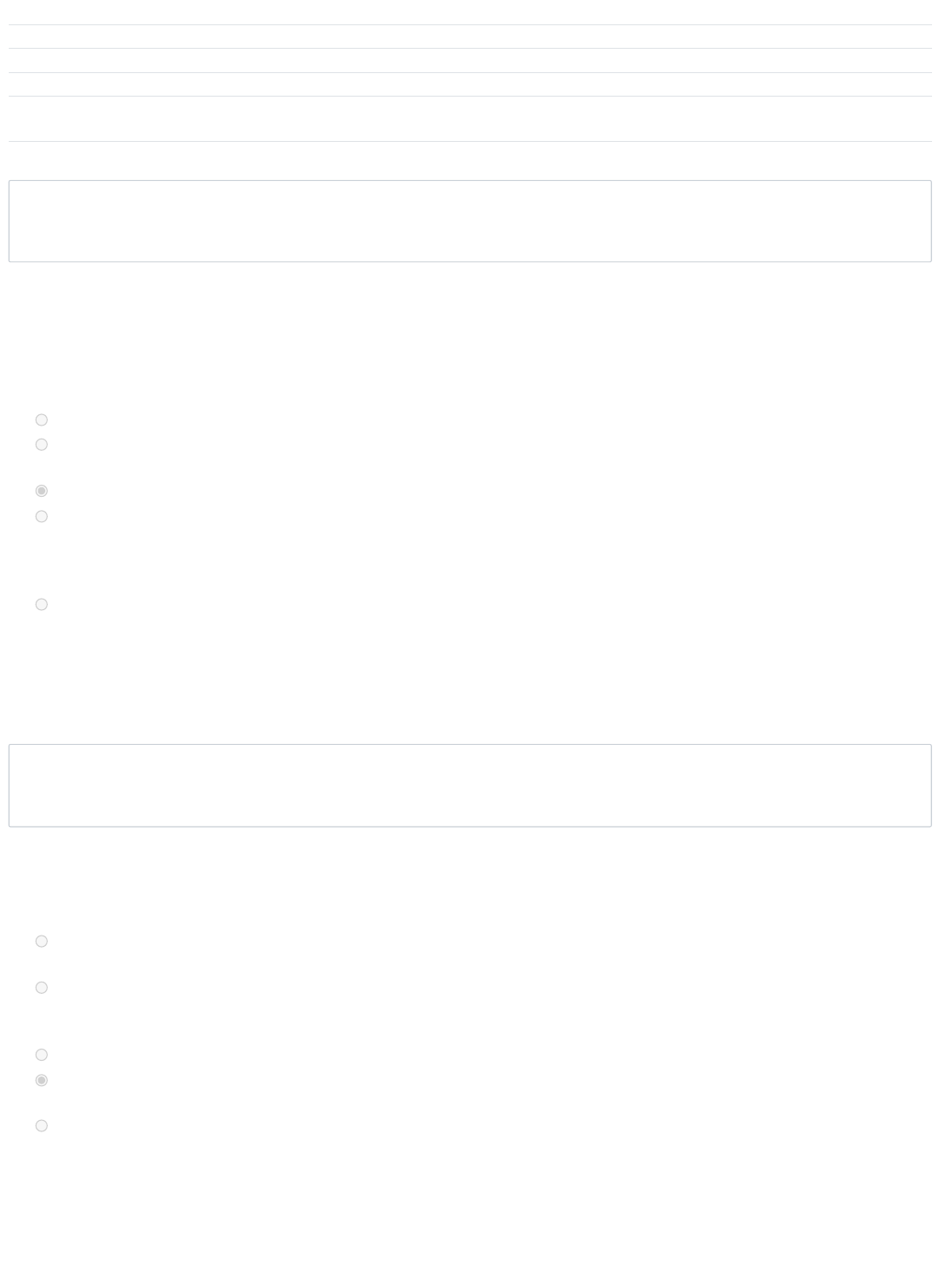 Iniciado em sábado, 7 dez. 2024, 14:32 Estado Finalizada Concluída em sábado, 7 dez. 2024, 14:56 Tempo empregado 23 minutos 54 segundos Avaliar 8,00 de um máximo de 10,00(80%) Questão 1 Completo Atingiu 1,00 de 1,00 Questão 2 Completo Atingiu 1,00 de 1,00 Ao estudar os princípios do processo decisório, seguindo seus preceitos básicos e aprendendo sua metodologia, você visualizará todas as etapas que envolvem esse processo com clareza e terá a oportunidade de usufruir e de se beneficiar de cada conceito dessa importante área da ciência da administração. Dito isso, pergunta-se: O que significa decidir? Escolha uma opção: a. “Tomar decisões é o processo de escolher uma dentre um conjunto de alternativas.” (CARAVANTES, 2005, p. 446) b. “Uma decisão pode ser descrita, de forma simplista, como uma escolha entre alternativas ou possibilidades com o objetivo de resolver um problema ou aproveitar uma oportunidade.” (SOBRAL, 2008, p. 98) c. Todas as alternativas estão corretas. d. “A tomada de decisão ocorre em reação a um problema. Isto é, existe uma discrepância entre o estado atual das coisas e o estado desejável, que exige uma consideração sobre cursos de ação alternativos. [...] O conhecimento sobre a existência de um problema e sobre a necessidade de uma decisão depende da percepção da pessoa.” (ROBBINS, 2005, p. 111) e. “[...] Embora tudo aquilo que um administrador faz envolva a tomada de decisões, isso não significa que todas sejam complexas e demoradas. Naturalmente, as decisões estratégicas têm mais visibilidade, mas os administradores tomam muitas pequenas decisões todos os dias. Aliás, quase sempre, as decisões gerenciais são de rotina. No entanto, é o conjunto delas que permite à organização resolver problemas, aproveitar oportunidades e, com isso, alcançar seus objetivos.” (SOBRAL, 2008, p. 100) Entre as alternativas apresentadas a seguir, escolha a correta: Escolha uma opção: a. As decisões não programadas são bastante estruturadas. Permitem aos administradores o estabelecimento de procedimentos sistêmicos para reduzir o tempo decisório. b. Podemos dizer que as decisões podem ser classificadas em programadas e não programadas. As primeiras exigem a participação da alta administração, ao passo que as segundas podem ser realizadas com o apoio de manuais normativos. c. As decisões devem ser tomadas nos níveis táticos e estratégicos de uma empresa. d. As decisões não programadas serão solucionadas a partir da habilidade dos gerentes para tomar decisões e de sua memória carregada de experiências, uma vez que não existe uma solução rotineira. e. As decisões rotineiras são ideais para a cúpula da empresa, pois exigem menos tempo dos tomadores de decisão, e como tempo é dinheiro... 07/12/2024, 14:56 Questionário Online: Revisão da tentativa https://ava.aquivocepode.com.br/avaunip/mod/quiz/review.php?attempt=2441335&cmid=24615 1/5 Questão 3 Completo Atingiu 1,00 de 1,00 Questão 4 Completo Atingiu 0,00 de 1,00 Questão 5 Completo Atingiu 1,00 de 1,00 Ao final de setembro de 2008, o mundo toma conhecimento de uma nova crise, com características nunca antes vistas no cenário econômico. Uma instituição financeira decide suspender, após estudos do cenário vigente, as linhas de crédito e o financiamento para seus clientes. Em consequência disso, parte de seu corpo de colaboradores é dispensada. A tomada dessas duas decisões pode ser classificada, respectivamente, como: Escolha uma opção: a. Operacional; estratégica. b. Estratégica; operacional. c. Estratégica; tática. d. Tática; estratégica. e. Tática; operacional. Decisões programadas e não programadas são as classificações dadas ao tipo de decisões que os administradores estão sempre se deparando. Em vista disso, assinale a alternativa correta. Escolha uma opção: a. Podemos afirmar que decisões programadas são: problemas bem compreendidos, altamente estruturados, rotineiros e complexos. Para sua solução, dispomos de políticas estratégicas e alta negociação. b. Podemos afirmar que decisões programadas são: problemas que não são bem compreendidos, são “pobres” de estruturação, tendem a ser singulares e não conseguimos resolvê-los através de procedimentos sistêmicos ou rotineiros. c. Podemos afirmar que decisões programadas são: problemas bem compreendidos, altamente estruturados, rotineiros e repetitivos. Para sua solução, dispomos de procedimentos e regras sistemáticas. d. Podemos afirmar que decisões programadas são: problemas não compreendidos, desestruturados, rotineiros e complexos. Para sua solução, dispomos de procedimentos e regras altamente complexas. e. Podemos afirmar que decisões programadas são: problemas estratégicos, estruturados e complexos. Para sua solução, dispomos de padrões e políticas estratégicas. Para resolução eficaz de problemas, a qualidade da informação é fundamental. A seleção mal elaborada pode causar danos incalculáveis para as organizações. Assinale os passos fundamentais para a valorização da informação: Escolha uma opção: a. Influência, poder e guardar bem a informação. b. Cargo, poder, influência e usar as informações. c. Conhecer, selecionar e usar as informações. d. Influência, poder e disponibilizar a informação. e. Cargo, poder e buscar a informação. 07/12/2024, 14:56 Questionário Online: Revisão da tentativa https://ava.aquivocepode.com.br/avaunip/mod/quiz/review.php?attempt=2441335&cmid=24615 2/5 Questão 6 Completo Atingiu 0,00 de 1,00 Questão 7 Completo Atingiu 1,00 de 1,00 Na maioria das empresas são encontrados os seguintes níveis hierárquicos: estratégico, tático e operacional. Com base nessa estrutura, definem-se os tipos de decisões a serem tomadas e os diferentes tipos de informações a serem ponderadas. Assinale a alternativa que define o tipo de decisão e informação do nível estratégic