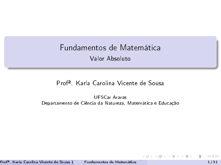 Profª. Karla Carolina Vicente de Sousa (UFSCar Araras Departamento de Ciência da Natureza, Matemática e Educação)Fundamentos de Matemática 31 / 31