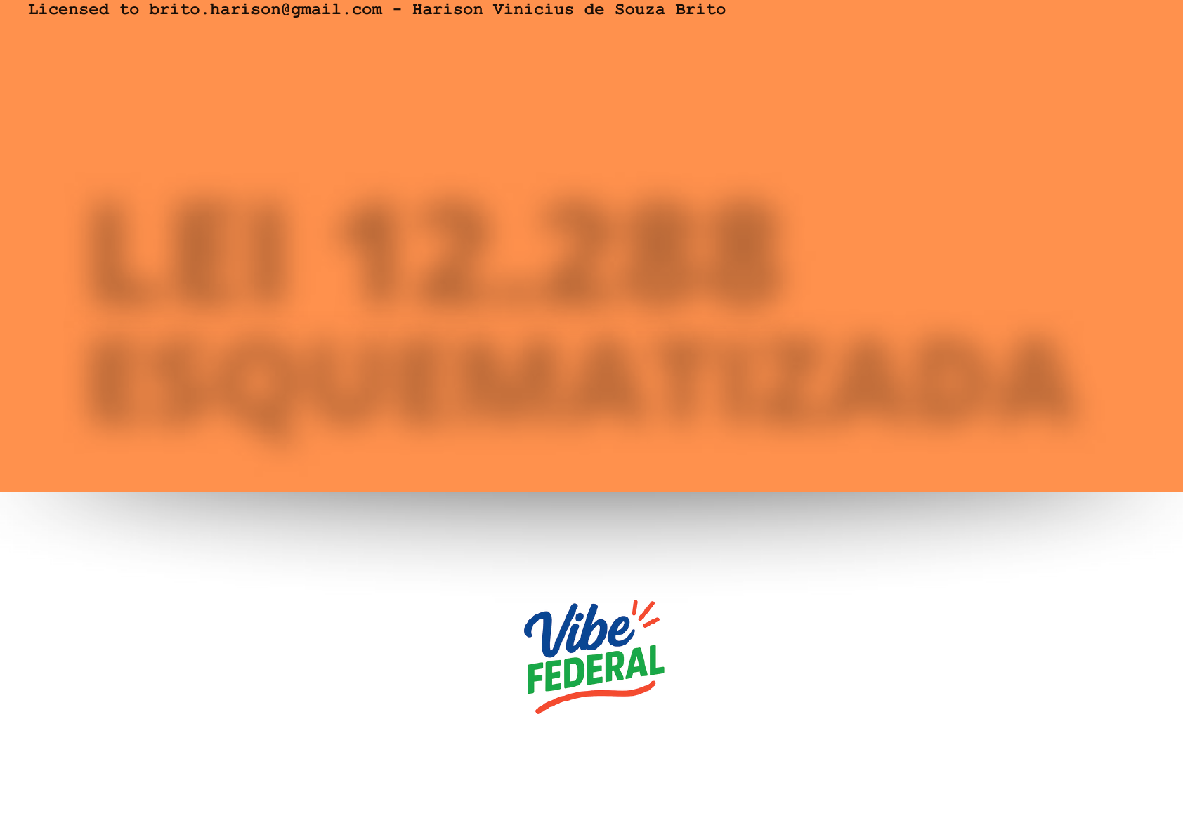 LEI 12.288LEI 12.288 ESQUEMATIZADAESQUEMATIZADA Licensed to brito.harison@gmail.com - Harison Vinicius de Souza Brito O Estatuto da Igualdade Racial, destina-se a garantir à população negra: Igualdade de oportunidades Defesa dos direitos étnicos (individuais, coletivos e difusos) Combate à discriminação e à intolerância étnica Objetivo Conceitos-chave Dever do Estado e da Sociedade Lei 12.288/2010Lei 12.288/2010 Estatuto da Igualdade Racial - Discriminação racial ou étnico-racial: Qualquer distinção, exclusão, restrição ou preferência baseada em raça, cor, descendência ou origem nacional/étnica, que vise anular ou restringir direitos e liberdades fundamentais em qualquer esfera (pública ou privada). Situação injustificada de diferença de acesso e aproveitamento de bens, serviços e oportunidades, devido à raça, cor, descendência ou origem nacional/étnica. - Desigualdade racial: Assimetria social que acentua a distância entre mulheres negras e outros grupos sociais. Pessoas que se autodeclaram pretas ou pardas (segundo o IBGE), ou que usam autodefinição análoga. Ações e programas do Estado para cumprir suas atribuições institucionais. Medidas especiais do Estado e da iniciativa privada para corrigir desigualdades raciais e promover igualdade de oportunidades. - Desigualdade de gênero e raça: - População negra: - Políticas públicas:: - Ações afirmativas: Garantir igualdade de oportunidades a todos os brasileiros, independentemente da etnia ou cor da pele, assegurando o direito à participação nas esferas política, econômica, empresarial, educacional, cultural e esportiva, com respeito à dignidade e aos valores religiosos e culturais de cada um. Licensed to brito.harison@gmail.com - Harison Vinicius de Souza Brito O Estatuto, além de se basear nos princípios e direitos constitucionais, adota como diretriz: Inclusão das vítimas de desigualdade étnico-racial Valorização da igualdade étnica Fortalecimento da identidade nacional brasileira Diretrizes Político-Jurídicas 🧱 SINAPIR: Sistema criado para coordenar e executar as ações do Estatuto, com atuação conjunta do poder público e sociedade civil. Medidas Prioritárias Objetivo central: Garantir a participação da população negra, em condições de igualdade de oportunidades, na vida econômica, social, política e cultural do país. Medidas estratégicas: I – Inclusão nas políticas públicas de desenvolvimento econômico e social II – Adoção de ações afirmativas III – Reestruturação institucional do Estado para combater desigualdades IV – Ajustes normativos contra discriminação (individual, institucional e estrutural) V – Remoção de barreiras históricas à diversidade nas esferas pública e privada VI – Apoio a iniciativas da sociedade civil, com incentivos e prioridade nos recursos públicos VII – Programas de ação afirmativa nas áreas de: 🎓 Educação | 🎭 Cultura | ⚽ Esporte | 🏥 Saúde 👮 Segurança | 💼 Trabalho | 🏠 Moradia | 📺 Comunicação | 💰 Financiamentos 🌱 Acesso à terra | ⚖ Justiça e outras Ações Afirmativas Os programas de ação afirmativa são políticas públicas reparadoras, criadas para corrigir distorções históricas, desigualdades sociais e práticas discriminatórias ocorridas no processo de formação da sociedade brasileira. Lei 12.288/2010 Diretrizes eDiretrizes e MedidasMedidas Licensed to brito.harison@gmail.com - Harison Vinicius de Souza Brito Política Nacional de SaúdeGarantia à Saúde Objetivos da Política Temática e Benefícios Específicos Direito à SaúdeDireito à Saúde O direito à saúde da população negra será garantido por meio de políticas universais, sociais e econômicas que visem à redução de riscos de doenças e agravos O SUS deve assegurar acesso universal e igualitário, sob responsabilidade de todos os entes públicos (administração direta e indireta) Nos planos privados, deve haver tratamento sem discriminação As ações específicas voltadas à população negra integram a Política Nacional de Saúde Integral, com diretrizes como: Participação de lideranças dos movimentos sociais nas instâncias do SUS Produção de conhecimento científico e tecnológico Processos de informação, comunicação e educação voltados à redução de vulnerabilidades Promoção da saúde integral com foco na redução de desigualdades e combate à discriminação no SUS Melhoria da qualidade das informações do SUS com dados desagregados por cor, etnia e gênero Fomento a estudos e pesquisas sobre racismo e saúde da população negra Inclusão da temática na formação de profissionais de saúde e nas formações políticas de lideranças sociais Moradores de comunidades quilombolas serão beneficiados com incentivos específicos, voltados à saúde integral, saneamento, meio ambiente, segurança alimentar e condições de vida Lei 12.288/2010 Licensed to brito.harison@gmail.com - Harison Vinicius de Souza Brito Ensino Superior O Poder Executivo federal deve incentivar as IES (Instituições de Ensino Superior) a: I – Apoiar grupos de pesquisa sobre temas da população negra, com ética na pesquisa II – Incluir a pluralidade étnica nas formações docentes III – Criar programas de extensão com acesso a tecnologias por jovens negros, com proporcionalidade de gênero IV – Estabelecer cooperação técnica com escolas de todos os níveis, promovendo equidade, tolerância e respeito às diferenças Ensino Fundamental e Médio Obrigatoriedade: Estudo da história geral da África e da população negra no Brasil, em todas as escolas públicas e privadas (em conformidade com a LDB). Regras complementares: Conteúdo deve estar presente em todo o currículo escolar, destacando a contribuição da população negra no desenvolvimento do país. O Executivo deve formar professores e produzir material didático específico. Nas datas cívicas, deve haver deb