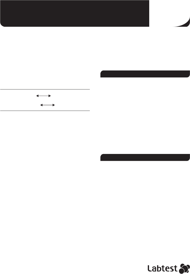 Finalidade . Sistema colorimétrico para a determinação quantitativa da concentração de cloretos em amostras de soro, plasma (Heparina), urina e líquor através de reação de ponto final. Uso profissional [Somente para uso diagnóstico in vitro.] Princípio . Os íons cloreto presentes na amostra reagem com 1,2 tiocianato de mercúrio formando cloreto mercúrico e íons tiocianato. Os íons tiocianato quando combinados com os íons férrico formam o tiocianato férrico, conforme a equação abaixo: _ _ Cl + Hg(SCN) HgCl + 2 (SCN)2 2 _ (SCN) + Fe Fe (SCN)3+ 3 O tiocianato férrico possui coloração amarela e a intensidade da cor formada, medida entre 450 e 505 nm, é proporcional à concentração de cloretos na amostra. Características do sistema . O método Cloretos da Labtest 1,2,8,9 é um procedimento simples e rápido para a determinação colorimétrica de cloretos nos líquidos biológicos. O sistema é linear até 130 mEq/L. Os dados de repetitividade e reprodutibilidade demonstram que o método fornece resultados que atendem as especificações desejáveis de erro máximo, baseadas nas especificações CLIA. O método não sofre interferência da bilirrubina em concentrações de até 38 mg/dL, hemoglobina até 180 mg/dL e triglicérides até 1000 mg/dL, obtendo-se excelente correlação com as determinações por Eletrodo Íon Seletivo (ISE). O método é facilmente aplicável em analisadores automáticos capazes de medir com exatidão uma reação de ponto final entre 450 e 505 nm. O sistema Cloretos Liquiform também pode ser utilizado em aplicações manuais utilizando fotômetros ou instrumentos semiautomáticos. Metodologia . Tiocianato de mercúrio.2 Reagentes 1. ( - Reagente 1 - Armazenar entre 2 - 30 ºC. Manusear com cautela, reagente tóxico. Não pipetar com a boca. Contém Tiocianato de mercúrio 2,0 mmol/L, Cloreto de mercúrio >0,8 mmol/L, Nitrato férrico >20 mmol/L, Ácido nítrico 28 mmol/L e estabilizador. 2.deve manter 4,6,7,8 um programa de controle interno da qualidade que defina claramente os regulamentos aplicáveis, objetivos, procedimentos, critérios para especificações da qualidade e limites de tolerância, ações corretivas e registro das atividades. Materiais de controle devem ser utilizados para monitorar a imprecisão da medição e desvios da calibração. 1,9Interferências 02 Português - Ref.: 115 Procedimento Branco Teste 1 mL 1 mL1 mL Padrão 0,01 mL 0,01 mLAmostra Padrão Reagente 1 Efeitos da diluição da matriz . Três amostras com concentrações iguais a 130, 118 e 105 mEq/L foram utilizadas para avaliar a resposta do sistema na diluição da matriz com água deionizada. Usando fator de diluição de 2 e 4 foram encontradas recuperações entre 101 e 105%. Significado clínico . Os cloretos são os ânions mais abundantes 5 do líquido extracelular e, juntamente com o sódio, desempenham um importante papel na manutenção da distribuição de água no organismo, da pressão osmótica do plasma e na neutralidade elétrica. O adulto ingere normalmente cerca de 150 mmol de íons cloreto por dia. Esta quantidade é quase totalmente absorvida pelo sistema digestivo. O excesso de cloretos é excretado na urina e suor. O suor excessivo estimula a secreção de aldosterona que atua sobre as glândulas sudoríparas para reabsorver mais sódio e cloretos. A hipocloremia (redução dos níveis de cloretos plasmáticos) é observada em algumas situações, tais como: - Déficit digestório, como falta de ingestão de sal, diarréia intensa, aspiração naso-gástrica ou vômitos intensos; - Nefrites com perda de sal, provavelmente por deficiência na reabsorção tubular (Pielonefrite crônica); - Abuso de diuréticos; - Enfermidade de Addison, onde os pacientes em crise Addissoniana apresentam níveis de cloreto séricos diminuídos; - Acidose metabólica causada pela excessiva produção ou diminuída excreção de ácidos orgânicos, como os casos de cetoacidose diabética ou insuficiência renal. Nestes casos, o cloreto é parcialmente substituído pelo excesso de ânions, como o b-hidroxibutirato, acetoacetato, lactato e fosfato; - Alcalose metabólica em decorrência de déficit de cloreto em ausência de déficit de sódio; - Excesso de mineralocorticóides (Aldosteronismo); - Intoxicação pelo bromo; - Condições associadas com a expansão do volume do líquido extracelular. Já a hipercloremia (aumento dos níveis de cloretos plasmáticos) está geralmente associada com a hipernatremia (desequilíbrio da concentração de sódio no sangue) e também: - Acidose metabólica, incluindo aquelas secundárias à perda de grande quantidade de bicarbonato, como nas diarréias prolongadas e nas ureteroenterostomias; - Fibrose cística. Em indivíduos portadores desta patologia, a concentração de cloretos no suor encontra-se elevada, sendo este um fenômeno útil para o diagnóstico da doença. - Gamopatias mono e policlonais; - Hiperparatireoidismo; - Nefropatias; - Diabetes mellitus; - Intoxicação por salicilato; A excreção urinária de cloreto encontra-se aumentada diante de diureses maciças por várias causas, como observado na depleção de potássio e insuficiência adrenocortical. Ao contrário, a excreção urinária de cloreto diminui quando há perda aumentada por outras vias, bem como na hiperfunção adrenocortical e na reação de stress pós-operatório. Observações 1. O laboratório clínico tem como objetivo fornecer resultados exatos e precisos. A utilização de água de qualidade inadequada é uma causa potencial de erros analíticos. Sugere-se que as especificações para o coeficiente de variação e erro total sejam baseadas nas especificações CLIA. Sugere-se utilizar os produtos da linha Qualitrol - Labtest para controle interno da qualidade em ensaios de química clínica. Intervalo de referência . Estes valores devem ser usados apenas 1 como orientação. Recomenda-se que cada laboratório estabele
