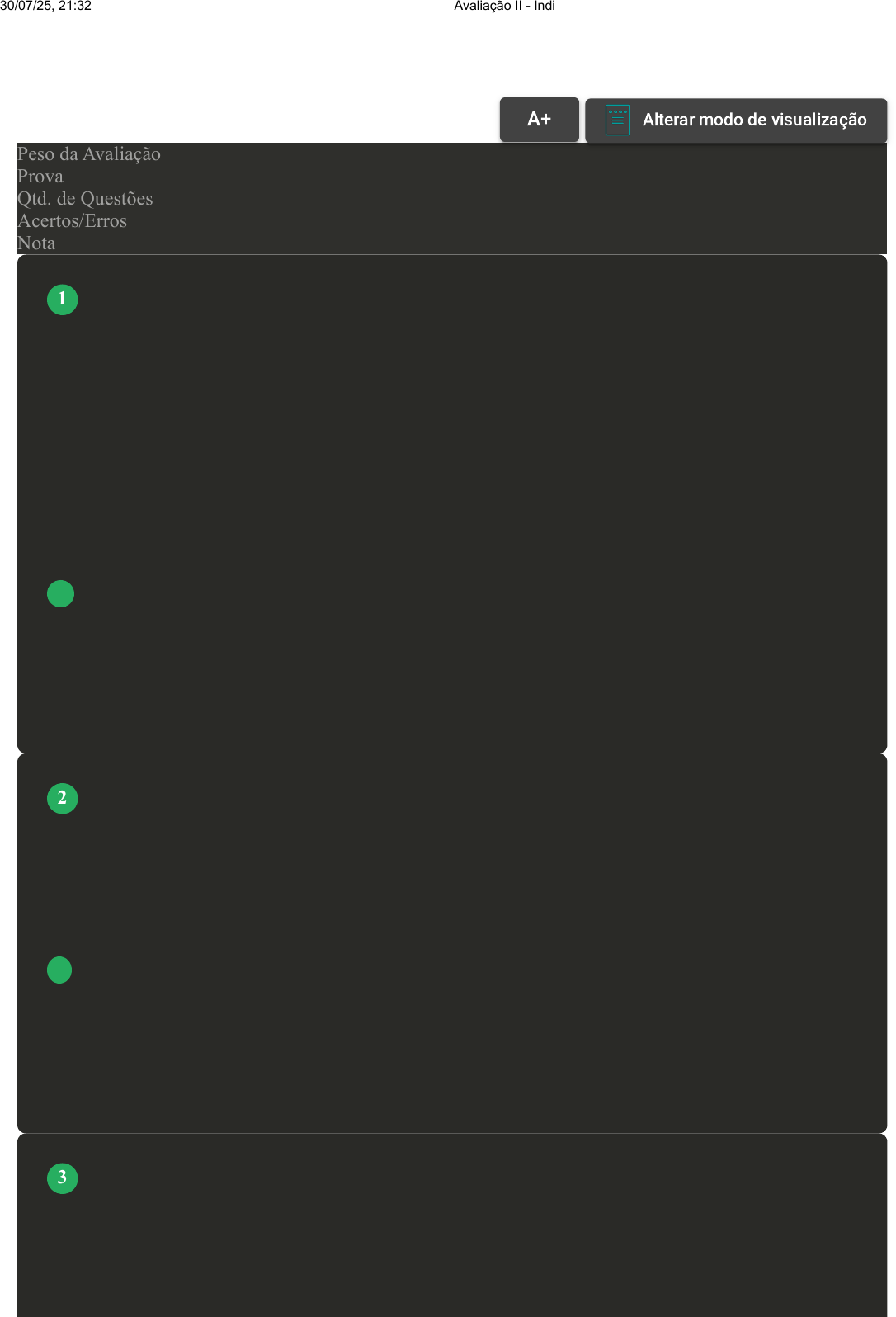 Prova Impressa GABARITO | Avaliação II - Individual (Cod.:669207) Peso da Avaliação 1,50 Prova 30103715 Qtd. de Questões 10 Acertos/Erros 10/0 Nota 10,00 As ligações de hidrogênio entre moléculas de água fornecem as forças coesivas que fazem da água um líquido à temperatura ambiente e um sólido cristalino com arranjo altamente ordenado de moléculas em temperaturas abaixo de zero. Sobre as moléculas de água e as ligações de hidrogênio, analise as sentenças a seguir: I- As ligações de hidrogênio são observadas unicamente entre as moléculas de água. II- As moléculas de água são classificadas como polares. III- As ligações de hidrogênio são mais fortes que as interações de Van der Waals. Assinale a alternativa CORRETA: A As sentenças I e II estão corretas. B As sentenças II e III estão corretas. C As sentenças I e III estão corretas. D Somente a sentença II está correta. A maioria das biomoléculas pode ser vista como derivada dos hidrocarbonetos, os quais são compostos formados por um esqueleto de átomos de carbono ligados covalentemente entre si e aos quais estão ligados apenas átomos de hidrogênio. Assim, considerando a estrutura química das biomoléculas, assinale a alternativa INCORRETA: A As forças das ligações químicas covalentes dependem da eletronegatividade e do tamanho dos átomos que compartilham elétrons. B É muito comum que nas biomoléculas os átomos de hidrogênio sejam substituídos pelos átomos de silício. C Os grupos funcionais têm grande influência nas propriedades químicas das moléculas orgânicas. D Os polissacarídeos, as proteínas e os ácidos nucleicos são exemplos de macromoléculas. "Queremos sugerir uma estrutura para o sal do ácido desoxirribonucleico (DNA). Essa estrutura possui novas características que despertam um interesse biológico considerável" (WATSON e CRICK, 1953). Assim começa a publicação de duas páginas, contendo menos de 1.000 palavras e seis citações bibliográficas, na qual Watson e Crick apresentam um desenho simples da famosa dupla hélice do ácido desoxirribonucleico (DNA). Considerando os ácidos nucleicos, assinale a alternativa INCORRETA: VOLTAR A+ Alterar modo de visualização 1 2 3 30/07/25, 21:32 Avaliação II - Individual about:blank 1/4 FONTE: WATSON, J.D.; CRICK, H.C. Molecular Structure of Nucleic Acids: A Structure for Deoxyribose Nucleic Acid. Nature, volume 171, p. 737-738, 1953. A O processo de transcrição é caracterizado pela formação de um RNA mensageiro a partir de um molde de DNA. B O gene é caracterizado por um segmento de uma molécula de DNA que contém a informação necessária para a síntese de um produto biologicamente funcional. C Nas células eucariontes, tanto o DNA quanto o RNA são confinados exclusivamente no núcleo celular. D O DNA tem como funções o armazenamento e a transferência da informação biológica. Uma reação química pode ser entendida como a quebra de ligações químicas entre átomos e a posterior recombinação desses átomos para a formação de novas ligações químicas. Sobre a reatividade química, assinale a alternativa CORRETA: A A ligação C-H é a mais fraca de todas. B A ligação C=O é mais fácil de ser quebrada do que a ligação C=C. C A ligação C-O é mais fácil de ser quebrada do que a ligação C=O. D A energia de dissociação indica a energia necessária para a formação da ligação química. As biomoléculas são moléculas presentes nas células dos seres vivos e que participam da estrutura e dos processos bioquímicos dos organismos. É importante saber que as biomoléculas são constituídas, essencialmente, por cadeias carbônicas, sendo, portanto, objeto de estudos da química orgânica. Com base no exposto, analise as afirmativas a seguir: I- As biomoléculas são moléculas planares, ou seja, são bidimensionais. II- A grande variedade de biomoléculas existentes é consequência da grande possibilidade de combinações entre os átomos de carbono e de outros elementos químicos (como oxigênio, nitrogênio e hidrogênio). III- As biomoléculas podem possuir grupos funcionais, que são agrupamentos específicos de átomos. IV- Geralmente, cadeias carbônicas que apresentam apenas ligações simples, que possuem rotação livre entre essas ligações. Assinale a alternativa CORRETA: A As afirmativas I, II e IV está correta. B As afirmativas I e IV estão corretas. 4 5 30/07/25, 21:32 Avaliação II - Individual about:blank 2/4 C As afirmativas II, III e IV estão corretas. D As afirmativas I e III estão corretas. Proteínas são polímeros de aminoácidos, com cada resíduo de aminoácido unido ao seu vizinho por um tipo específico de ligação covalente (o termo "resíduo" reflete a perda de elementos de água quando um aminoácido é unido a outro). Sobre os aminoácidos, analise as sentenças a seguir: I- Os aminoácidos são caracterizados por terem um grupo carboxila e um grupo amino ligados ao mesmo átomo de carbono. II- Os aminoácidos podem ser agrupados de acordo com as propriedades dos grupos substituintes R. III- Além das proteínas, os aminoácidos são parte essencial estruturante dos ácidos nucleicos. Assinale a alternativa CORRETA: A As sentenças I e III estão corretas. B Somente a sentença I está correta. C As sentenças II e III estão corretas. D As sentenças I e II estão corretas. Os carboidratos, também conhecidos por glicídios ou hidratos de carbono, são substâncias extremamente comuns na dieta da espécie humana. Um dos tipos de carboidratos trata-se dos polissacarídeos. Sobre estes compostos, analise as afirmativas a seguir: I- Diversas moléculas de monossacarídeos ligadas entre si originam os polissacarídeos. II- A glicose é um exemplo de polissacarídeo. III- O polissacarídeo glicogênio é um importante composto de reserva energética. IV- Os polissacarídeos são caracterizados por apresentarem massa molar pequena. Assinale a 