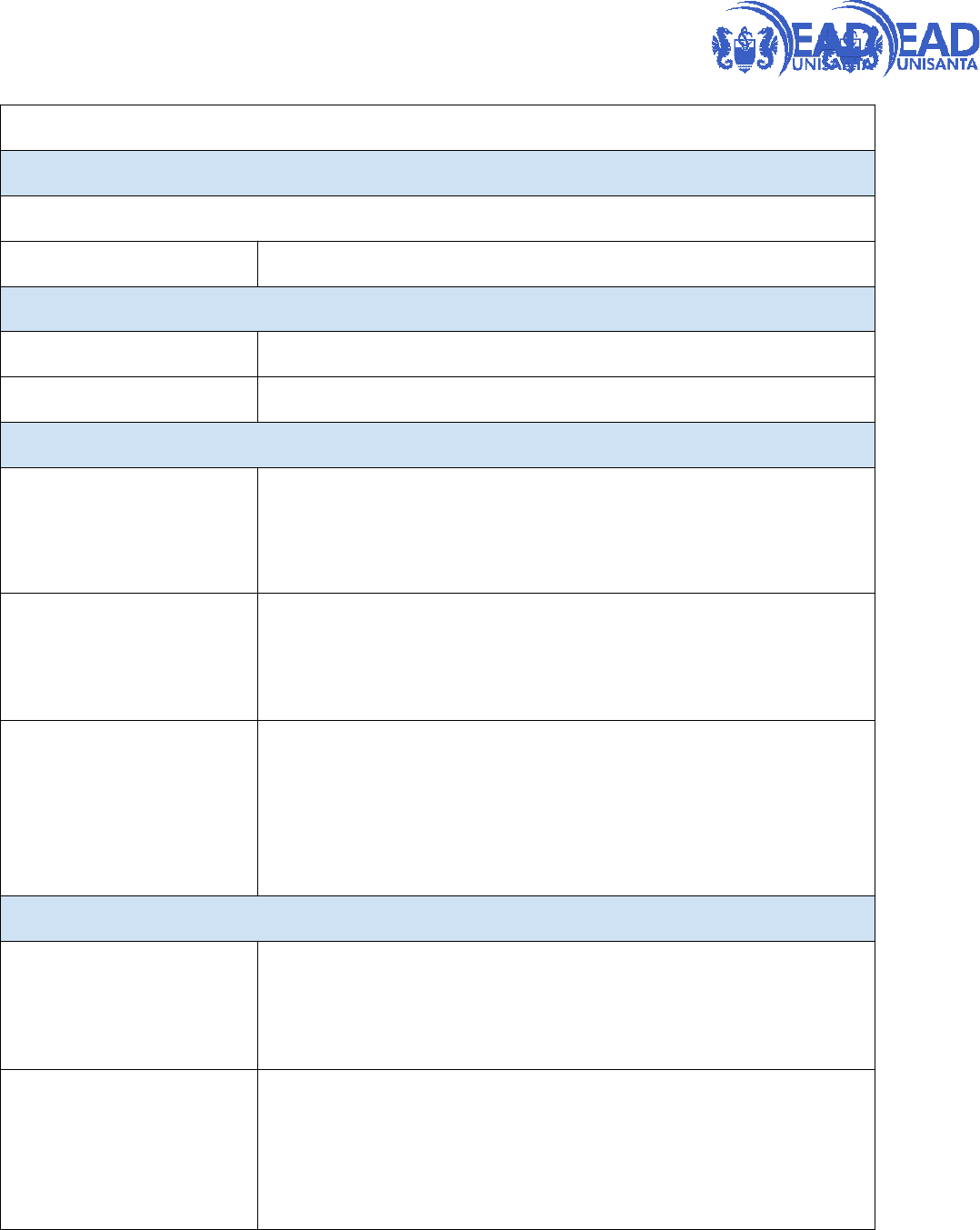 INSTITUTO SUPERIOR DE EDUCAÇÃO SANTA CECÍLIA C.N.P.J. 58.251.711/0001-19 – Santos/SP Relatório de Atividades Complementares MODELO DE RELATÓRIO E ATIVIDADES COMPLEMENTARES – BRINQUEDOTECA E JOGOS PEDAGÓGICOS DADOS PESSOAIS Nome: RA: Licenciatura em: SOBRE O BRINQUEDO/JOGO CRIADO Nome do brinquedo/jogo: Materiais utilizados: PROCESSO DE ELABORAÇÃO DO RECURSO Qual tipo de recurso pedagógico você criou? (Jogo, brinquedo, ferramenta pedagógica, etc.) Descreva o processo de criação passo a passo. Quais são os principais objetivos pedagógicos do recurso criado? PLANO DE AULA PARA USO DO RECURSO Qual é o tema da aula em que o recurso será utilizado? O recurso está relacionado a qual conteúdo curricular? Quais atividades serão realizadas antes, durante e depois do uso do recurso pedagógico? Quais foram os maiores desafios que você encontrou durante a criação do recurso e/ou na aplicação dele em sala de aula? Como poderá ser feita a avaliação do aprendizado dos alunos durante o uso do recurso? ANEXO: FOTOS DO BRINQUEDO/JOGO CRIADO Universidade Santa Cecília – Centro de Educação à Distância Rua Cesário Mota, 08 – Bloco F, 8º Andar – Boqueirão – Santos/SP – CEP 11045-040 image1.png